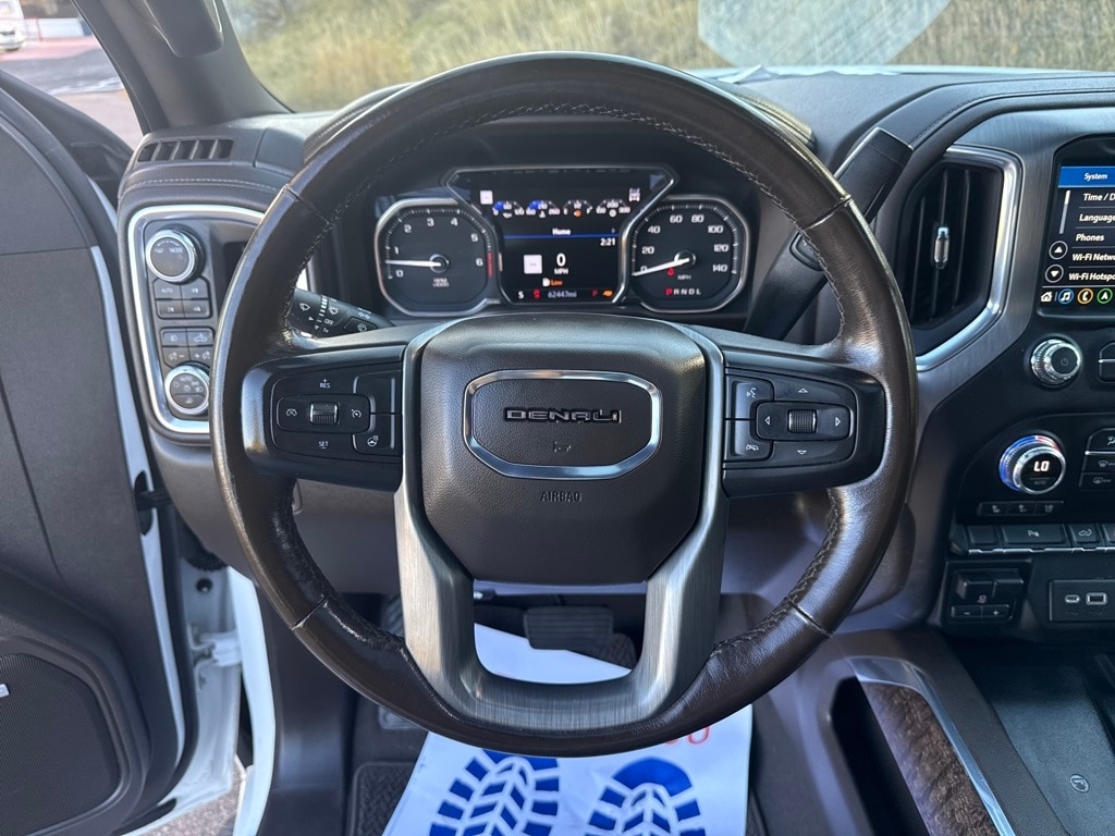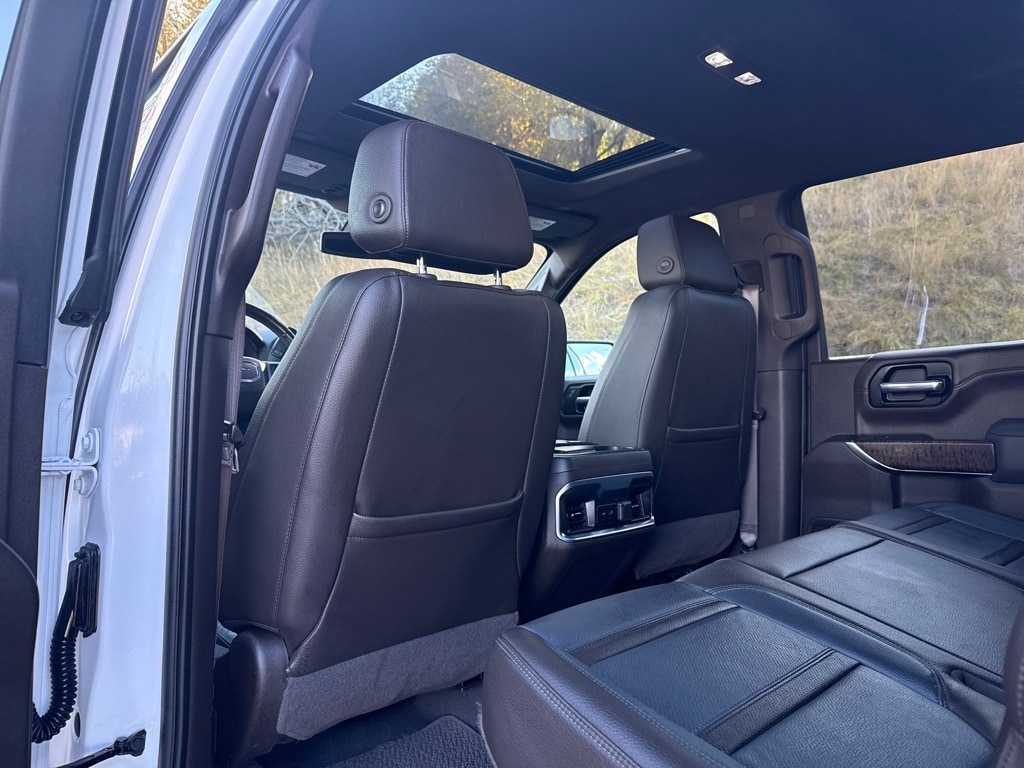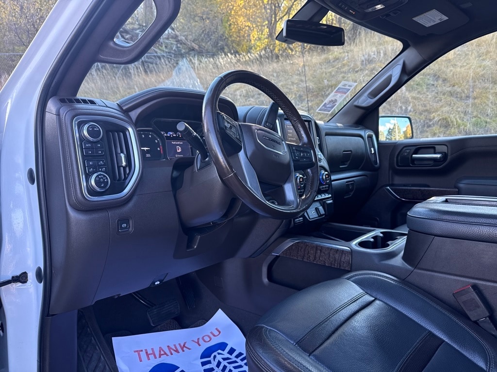 Driver Alert Package I (Lane Change Alert w/Side Blind Zone Alert, Rear Cross Traffic Alert, and Ultrasonic Front & Rear Park Assist), Preferred Equipment Group 5SA (12-Volt Rear Auxiliary Power Outlet, 120-Volt Bed Mounted Power Outlet, 120-Volt Instrument Panel Power Outlet, 170 Amp Alternator, 2 USB Ports, 2 USB Ports (1st Row), Auto-Locking Rear Differential, Auxiliary External Transmission Oil Cooler, Chrome Recovery Hooks, Chrome Wheel To Wheel Assist Steps, Color-Keyed Carpeting Floor Covering, Compass, Deep-Tinted Glass, Electric Rear-Window Defogger, Floor-Mounted Center Console, GMC Connected Access Capable, HD Rear Vision Camera, Heavy-Duty Air Filter, Hill Descent Control, Hitch Guidance w/Hitch View, In-Vehicle Trailering App, Integrated Trailer Brake Controller, Keyless Open & Start, LED Cargo Area Lighting, Manual Tilt-Wheel & Telescoping Steering Column, OnStar & GMC Connected Services Capable, Power Door Locks, Power Front Passenger Windows w/Express Up/Down, Power Front Windows w/Driver Express Up/Down, Power Rear Windows w/Express Down, Power Sliding Rear Window w/Rear Defogger, ProGrade Trailering System, Rear Dual USB Charging-Only Ports, Rear Wheelhouse Liners, Remote Vehicle Starter System, Safety Alert Seat, Signature Denali Grille, Spray-On Pickup Bed Liner w/Denali Logo, Steering Wheel Audio Controls, Theft Deterrent System (Unauthorized Entry), Universal Home Remote, Wi-Fi Hotspot Capable, and Wireless Charging), Trailering Package (Hitch Guidance), 10-Way Power Driver Seat Adjuster w/Lumbar, 10-Way Power Passenger Seat Adjuster w/Lumbar, 3.23 Rear Axle Ratio, 4-Wheel Disc Brakes, 7 Speakers, ABS brakes, Adaptive Ride Control Suspension, Adaptive suspension, Air Conditioning, Alloy wheels, AM/FM radio: SiriusXM with 360L, Apple CarPlay/Android Auto, Auto-dimming door mirrors, Auto-dimming Rear-View mirror, Automatic Stop/Start, Automatic temperature control, Brake assist, Bumpers: body-color, Delay-off headlights, Driver door bin, Driver Memory, Driver vanity mirror, Dual front impact airbags, Dual front side impact airbags, Electronic Stability Control, Forge Perforated Leather Seat Trim, Front anti-roll bar, Front Bucket Seats, Front Center Armrest, Front dual zone A/C, Front fog lights, Front License Plate Kit, Front reading lights, Front wheel independent suspension, Fully automatic headlights, Garage door transmitter, Genuine wood console insert, Genuine wood door panel insert, Heated door mirrors, Heated Driver & Front Outboard Passenger Seating, Heated front seats, Heated steering wheel, Illuminated entry, Low tire pressure warning, Memory seat, Navigation System, Not Equipped w/Front & Rear Park Assist, Occupant sensing airbag, Outside temperature display, Overhead airbag, Overhead console, Panic alarm, Passenger door bin, Passenger vanity mirror, Power door mirrors, Power driver seat, Power passenger seat, Power steering, Power Sunroof, Power windows, Premium audio system: Premium GMC Infotainment System, Premium Bose 7-Speaker Sound System, Radio data system, Radio: Premium GMC Infotainment Sys w/Navigation, Rear reading lights, Rear seat center armrest, Rear step bumper, Rear window defroster, Remote keyless entry, Security system, SiriusXM w/360L, Speed control, Speed-sensing st