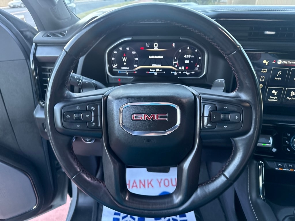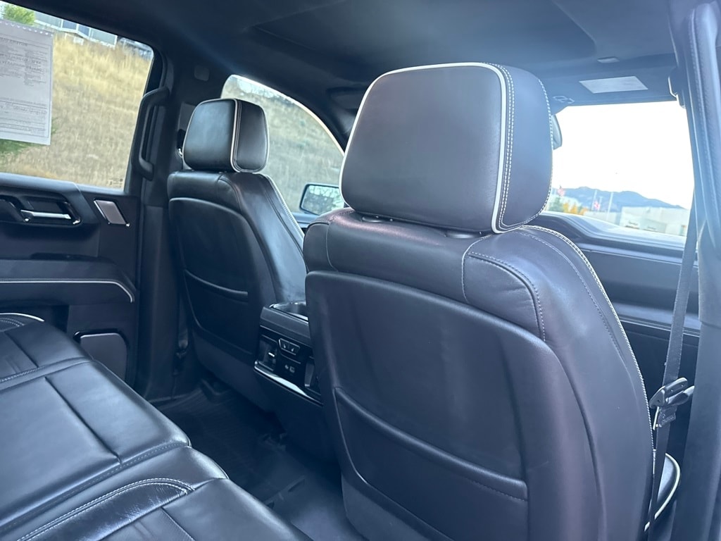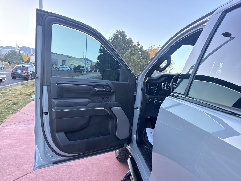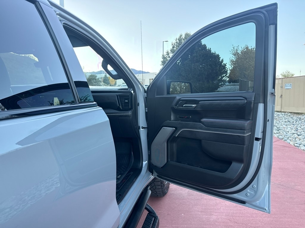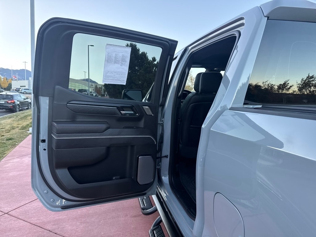AT4X AEV Edition (1st & 2nd Row AEV All-Weather Floor Liners (LPO), AEV Branded Front Head Restraints, AEV Stamped-Steel Rear Bumper, AEV Tailgate Decal w/Exterior Badging, Gloss Black Door Handles, Rocker Protection (LPO), and Wheels: 18" x 8.5" 12-Spoke High Gloss Black Alum), Preferred Equipment Group 4SG (120-Volt Bed Mounted Power Outlet, 120-Volt Interior Power Outlet, 2 Charge/Data USB Ports Inside Center Console, 2 Type-C Charge-Only Rear USB Ports, 2 USB Ports, Bed View Camera, Bose Premium Series w/12-Speaker System, Color-Keyed Carpeting Floor Covering, Deep-Tinted Glass, Driver-Selectable Full-Locking Front Differential, Driver-Selectable Full-Locking Rear Differential, Electric Rear-Window Defogger, Floor-Mounted Center Console, Front Prem Floor Liners w/Removable Carpet Insert, Front Rain-Sensing Wipers, Gloss Black Header w/Drk Nickel Grille Insert Bars, GMC Connected Access Capable, HD Surround Vision, Heated 2nd Row Outboard Seats, Heated Driver & Front Outboard Passenger Seating, Heavy-Duty Air Filter, Hill Descent Control, Hitch View, In-Vehicle Trailering System App, Integrated Trailer Brake Controller, Keyless Open & Start, LED Cargo Area Lighting, Multicolor 15" Diagonal Head-Up Display, MultiPro Tailgate Audio System by Kicker (LPO), OnStar & GMC Connected Services Capable, Perimeter Lighting, Power Door Locks, Power Front Passenger Windows w/Express Up/Down, Power Front Windows w/Driver Express Up/Down, Power Rake & Telescoping Steering Column, Power Rear Windows w/Express Down, Power Sliding Rear Window w/Rear Defogger, Power Sunroof, Push Button Start, Rear Cross Traffic Braking, Rear Pedestrian Detection, Rear Prem Floor Liners w/Removable Carpet Insert, Rear Wheelhouse Liners, Remote Vehicle Starter System, SiriusXM w/360L, Spray-On Pickup Bedliner w/AT4X Logo, Steering Wheel Audio Controls, Theft Deterrent System (Unauthorized Entry), Trailer Camera Provisions, Trailer Side Blind Zone Alert, Trailer Tire Pressure Monitor System, Ultrasonic Front & Rear Park Assist, Universal Home Remote, Ventilated Driver & Front Passenger Seats, Wi-Fi Hotspot Capable, and Wireless Charging), Trailering Package (Hitch Guidance), 10-Speed Automatic, 4WD, Obsidian Rush Leather, 12 Speakers, 16-Way Power Driver Seat Adjuster w/Lumbar, 16-Way Power Passenger Seat Adjuster w/Lumbar, 170 Amp Alternator, 220 Amp Alternator, 3.23 Rear Axle Ratio, 4-Wheel Disc Brakes, ABS brakes, Air Conditioning, Alloy wheels, AM/FM radio: SiriusXM with 360L, Apple CarPlay/Android Auto, Auto High-beam Headlights, Auto-dimming door mirrors, Auto-dimming Rear-View mirror, Automatic Emergency Braking, Automatic temperature control, Auxiliary External Transmission Oil Cooler, Block heater, Brake assist, Buckle to Drive, Compass, Delay-off headlights, Driver door bin, Driver Memory, Driver vanity mirror, Dual Active Exhaust, Dual front impact airbags, Dual front side impact airbags, Electronic Stability Control, External Engine Oil Cooling, Follo
