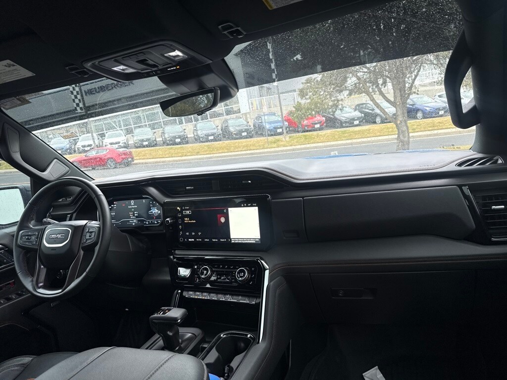 AT4 Preferred Package (Power Sliding Rear Window w/Rear Defogger and Universal Home Remote), AT4 Premium Package (Off-Road High Clearance Step (LPO)), Preferred Equipment Group 4SB (120-Volt Bed Mounted Power Outlet, 120-Volt Interior Power Outlet, 2 Charge/Data USB Ports Inside Center Console, 2 Type-C Charge-Only Rear USB Ports, 2 USB Ports, 220 Amp Alternator, Auto-Locking Rear Differential, Black Chrome Header & Grille Insert Bars, Color-Keyed Carpeting Floor Covering, Deep-Tinted Glass, Electric Rear-Window Defogger, Floor-Mounted Center Console, Front Prem Floor Liners w/Removable Carpet Insert, Front Rain-Sensing Wipers, GMC Connected Access Capable, HD Surround Vision, Heated 2nd Row Outboard Seats, Heated Driver & Front Outboard Passenger Seating, Heavy-Duty Air Filter, Hill Descent Control, Hitch View, In-Vehicle Trailering System App, Integrated Trailer Brake Controller, Keyless Open & Start, LED Cargo Area Lighting, OnStar & GMC Connected Services Capable, Perimeter Lighting, Power Door Locks, Power Front Passenger Windows w/Express Up/Down, Power Front Windows w/Driver Express Up/Down, Power Rake & Telescoping Steering Column, Power Rear Windows w/Express Down, Premium Bose 7-Speaker Sound System, Push Button Start, Rear Cross Traffic Braking, Rear Pedestrian Detection, Rear Prem Floor Liners w/Removable Carpet Insert, Rear Wheelhouse Liners, Red Recovery Hooks, Remote Vehicle Starter System, SiriusXM w/360L, Spray-On Pickup Bedliner w/AT4 Logo, Steering Wheel Audio Controls, Theft Deterrent System (Unauthorized Entry), Trailer Camera Provisions, Trailer Side Blind Zone Alert, Ultrasonic Front & Rear Park Assist, Ventilated Driver & Front Passenger Seats, Wi-Fi Hotspot Capable, and Wireless Charging), Technology Package (Bed View Camera, Multicolor 15" Diagonal Head-Up Display, and Rear Camera Mirror), Trailering Package (Hitch Guidance), 10-Speed Automatic, 4WD, Jet Black With Kalahari Accents Leather, 10-Way Power Driver Seat Adjuster w/Lumbar, 10-Way Power Passenger Seat Adjuster w/Lumbar, 170 Amp Alternator, 18" x 8.5" Machined Aluminum Wheels, 3.23 Rear Axle Ratio, 4-Wheel Disc Brakes, 7 Speakers, ABS brakes, Air Conditioning, All-Weather Floor Liners w/AT4 Logo (LPO), Alloy wheels, AM/FM radio: SiriusXM with 360L, Apple CarPlay/Android Auto, Auto High-beam Headlights, Auto-dimming door mirrors, Auto-dimming Rear-View mirror, Automatic Emergency Braking, Automatic temperature control, Auxiliary External Transmission Oil Cooler, Block heater, Brake assist, Buckle to Drive, Bumpers: body-color, Compass, Delay-off headlights, Driver door bin, Driver Memory, Driver vanity mirror, Dual Active Exhaust, Dual front impact airbags, Dual front side impact airbags, Electronic Stability Control, External Engine Oil Cooling, Following Distance Indicator, Forward Collision Alert, Front anti-roll bar, Front Bucket Seats, Front Center Armrest, Front dual zone A/C, Front fog lights, Front License Plate Kit, Front Pedestrian Braking, Front reading lights, Front wheel independent suspension, Fully automatic headlights, Heated door mirrors, Heated front seats, Heated rear seats, Heated steering wheel, Illuminated entry