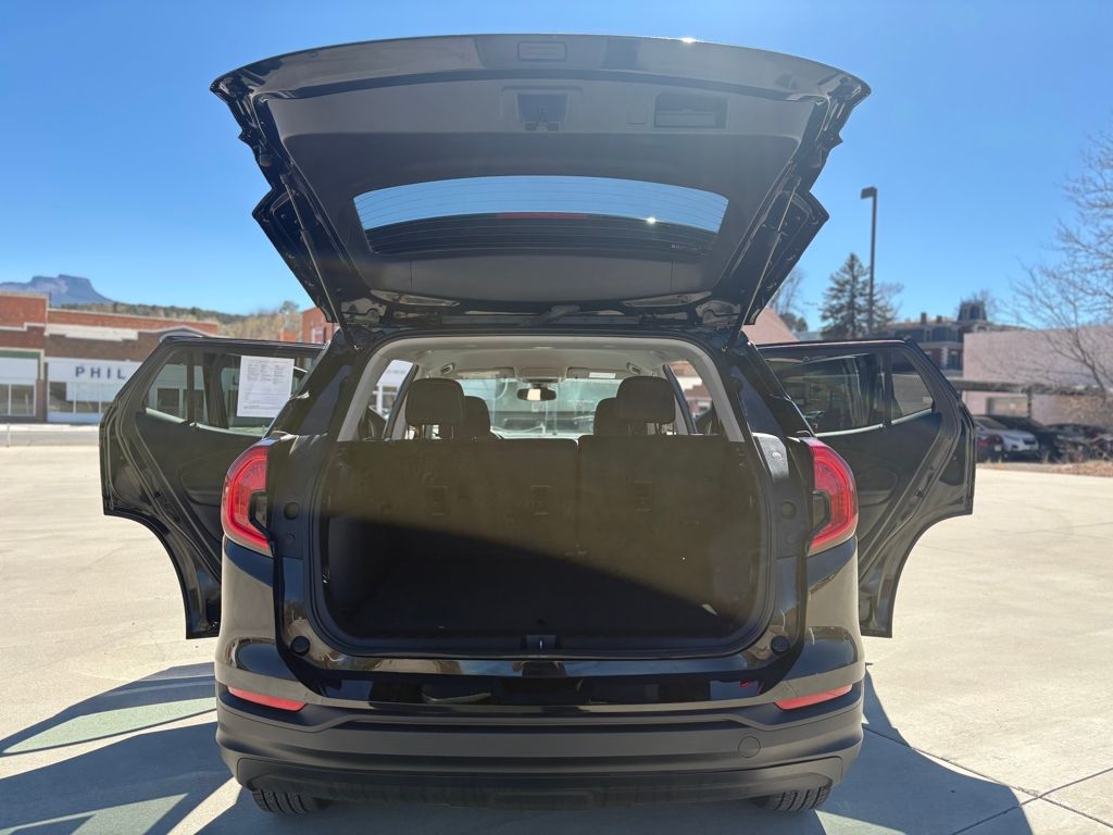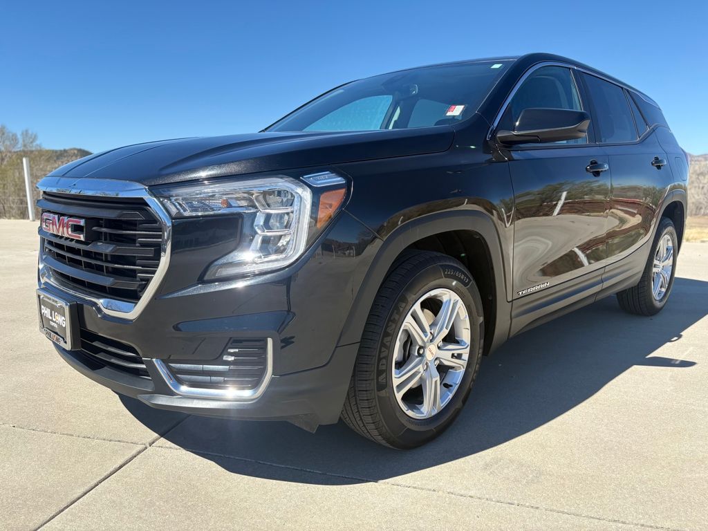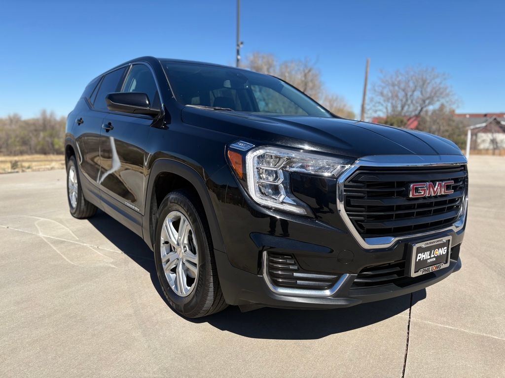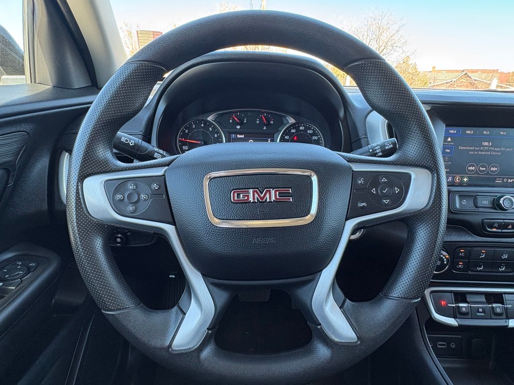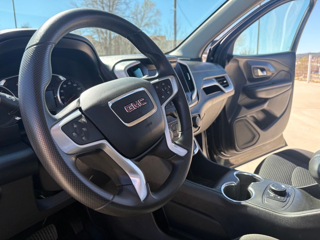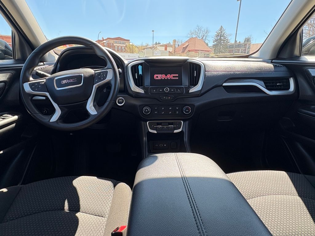 AUDIO SYSTEM, 7 DIAGONAL GMC INFOTAINMENT SYSTEM includes multi-touch display, AM/FM stereo, includes Bluetooth® streaming audio for music and most phones; featuring Android Auto® and Apple CarPlay® capability for compatible phones (STD), ENGINE, 1.5L TURBO DOHC 4-CYLINDER, SIDI, VVT (175 hp [131.3 kW] @ 5800 rpm, 203 lb-ft of torque [275.0 N-m] @ 2000 - 4000 rpm) (STD), TRANSMISSION, 9-SPEED AUTOMATIC 9T45, ELECTRONICALLY-CONTROLLED WITH OVERDRIVE (STD). GMC SLE with Ebony Twilight Metallic exterior and Jet Black interior features a 4 Cylinder Engine with 175 HP at 5800 RPM*.