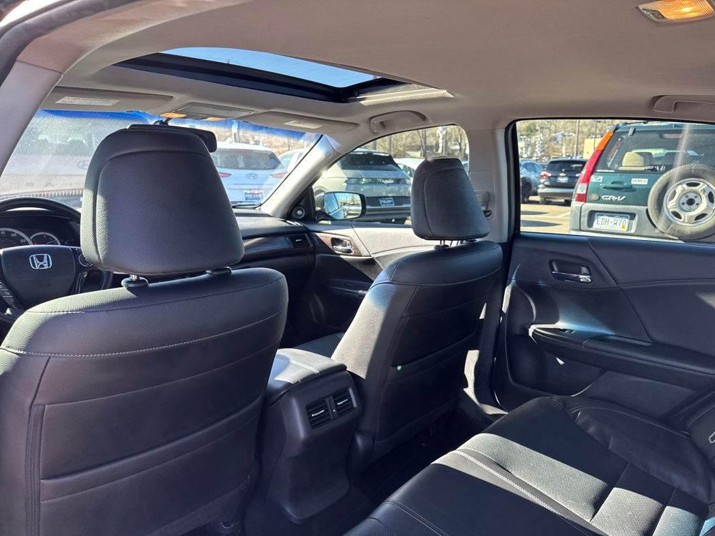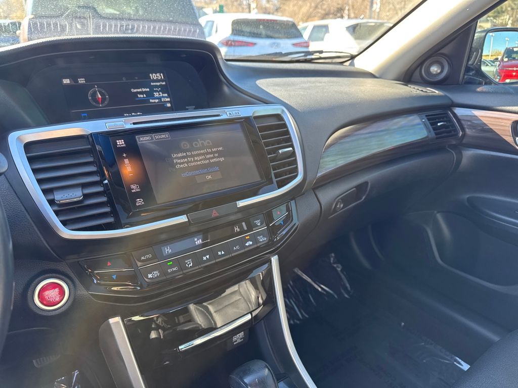 Black Leather, 17" Alloy Wheels, 4-Wheel Disc Brakes, 7 Speakers, ABS brakes, Air Conditioning, Alloy wheels, AM/FM radio: SiriusXM, Apple CarPlay/Android Auto, Auto-dimming Rear-View mirror, Automatic temperature control, Brake assist, Bumpers: body-color, CD player, Compass, Delay-off headlights, Driver door bin, Driver vanity mirror, Dual front impact airbags, Dual front side impact airbags, Electronic Stability Control, Emergency communication system: HondaLink, Exterior Parking Camera Rear, Four wheel independent suspension, Front anti-roll bar, Front Bucket Seats, Front Center Armrest, Front dual zone A/C, Front fog lights, Front reading lights, Fully automatic headlights, Garage door transmitter: HomeLink, Heated door mirrors, Heated Front Bucket Seats, Heated front seats, Illuminated entry, Leather-Trimmed Seats, Low tire pressure warning, Memory seat, Occupant sensing airbag, Outside temperature display, Overhead airbag, Overhead console, Panic alarm, Passenger door bin, Passenger vanity mirror, Power door mirrors, Power driver seat, Power moonroof, Power passenger seat, Power steering, Power windows, Radio data system, Radio: 360-Watt AM/FM/HD Premium Audio System, Rear anti-roll bar, Rear seat center armrest, Rear window defroster, Remote keyless entry, Security system, Speed control, Speed-sensing steering, Speed-Sensitive Wipers, Split folding rear seat, Steering wheel mounted audio controls, Tachometer, Telescoping steering wheel, Tilt steering wheel, Traction control, Trip computer, Turn signal indicator mirrors, and Variably intermittent wipers.