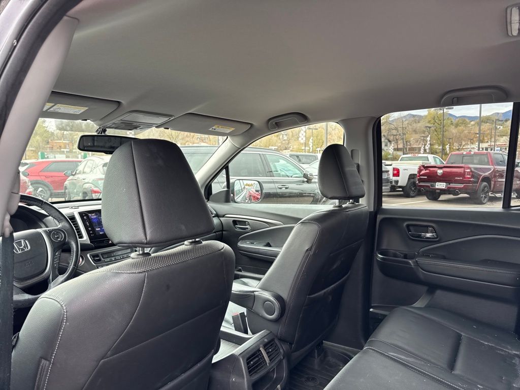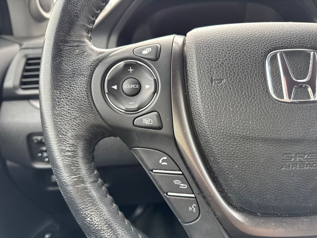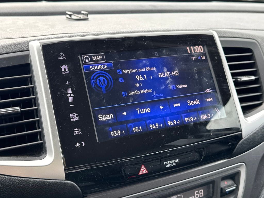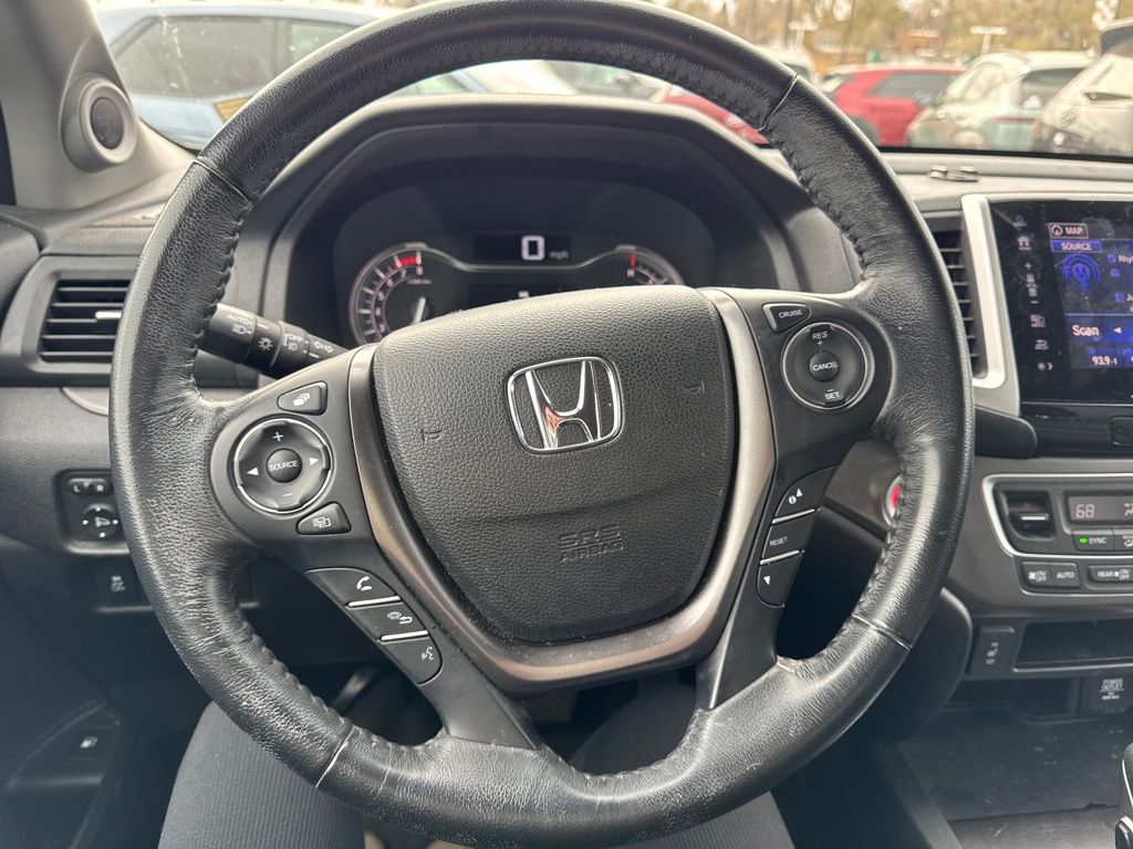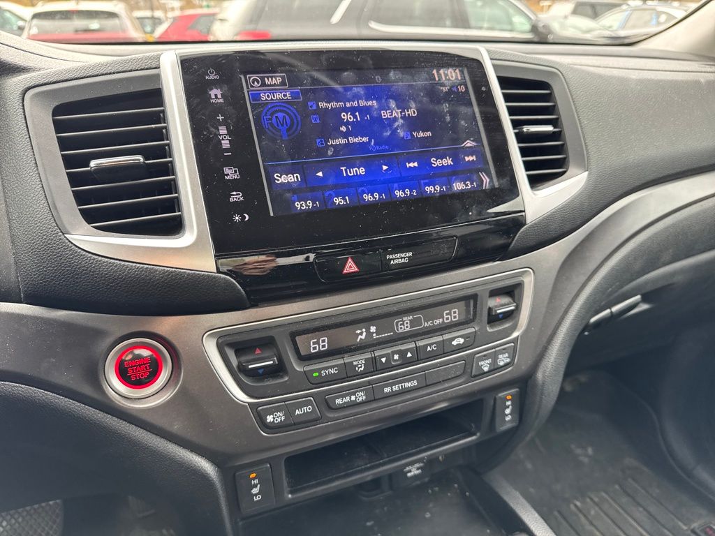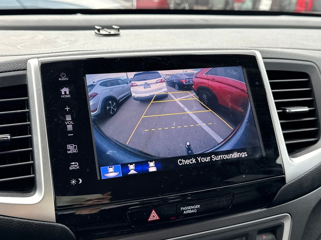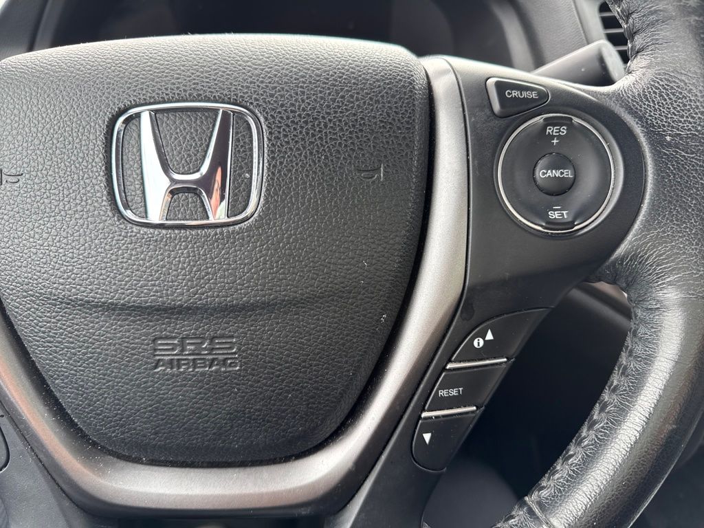 Leather, 4-Wheel Disc Brakes, 4.25 Axle Ratio, 7 Speakers, ABS brakes, Air Conditioning, Alloy wheels, AM/FM radio: SiriusXM, Apple CarPlay/Android Auto, Auto-dimming Rear-View mirror, Automatic temperature control, Bluetooth® Hands-Free Link, Brake assist, Bumpers: body-color, Compass, Delay-off headlights, Driver door bin, Driver vanity mirror, Driver's Seat Mounted Armrest, Dual front impact airbags, Dual front side impact airbags, Electronic Stability Control, Exterior Parking Camera Rear, Four wheel independent suspension, Front anti-roll bar, Front Bucket Seats, Front dual zone A/C, Front fog lights, Front reading lights, Fully automatic headlights, Garage door transmitter: HomeLink, Heated door mirrors, Heated Front Bucket Seats, Heated front seats, Honda Satellite-Linked Navigation System, Illuminated entry, Leather Seat Trim, Low tire pressure warning, Navigation system: Honda Satellite-Linked Navigation System, Occupant sensing airbag, Outside temperature display, Overhead airbag, Overhead console, Panic alarm, Passenger door bin, Passenger seat mounted armrest, Passenger vanity mirror, Power door mirrors, Power driver seat, Power passenger seat, Power steering, Power windows, Radio data system, Radio: AM/FM/MP3 w/Navigation System, Rear air conditioning, Rear anti-roll bar, Rear reading lights, Rear seat center armrest, Rear step bumper, Rear window defroster, Remote keyless entry, Security system, SiriusXM Radio, Speed control, Speed-sensing steering, Split folding rear seat, Steering wheel mounted audio controls, Tachometer, Telescoping steering wheel, Tilt steering wheel, Traction control, Trip computer, Variably intermittent wipers, and Wheels: 18" Exclusive Machine-Finished Alloy.