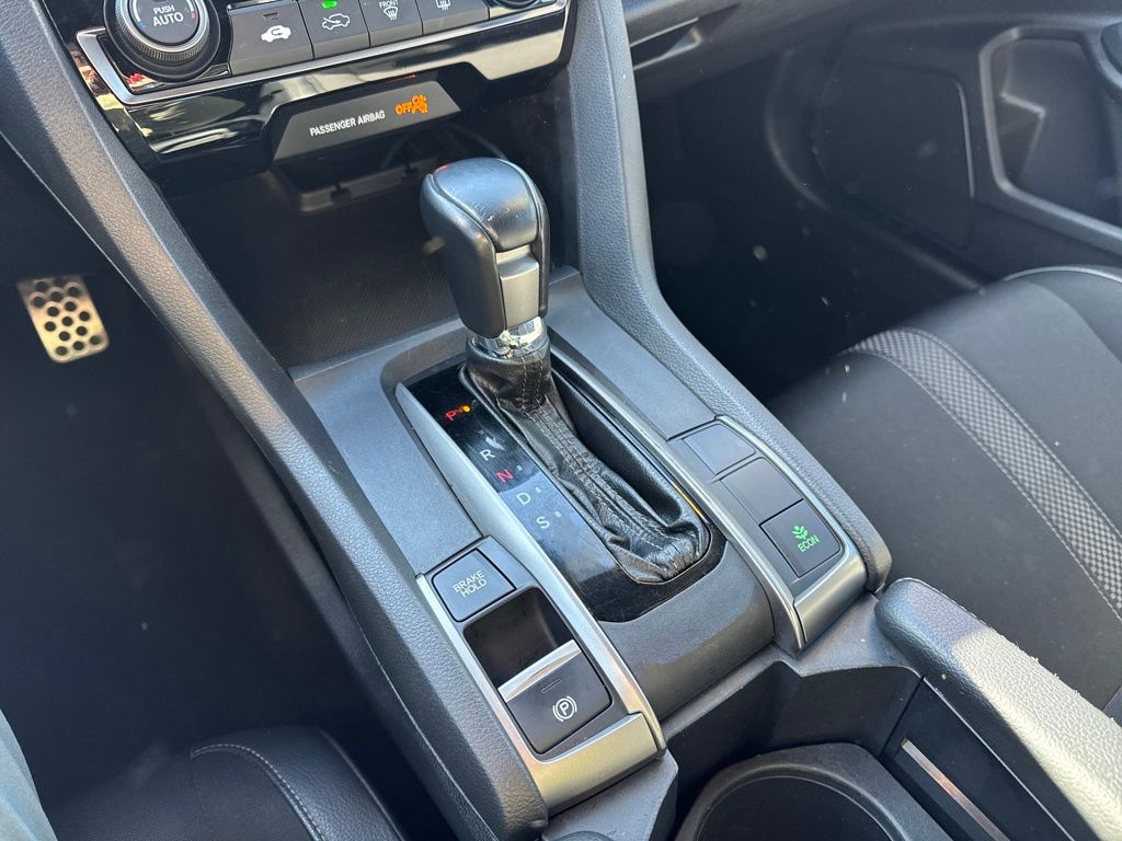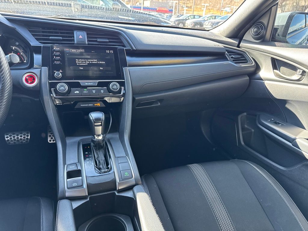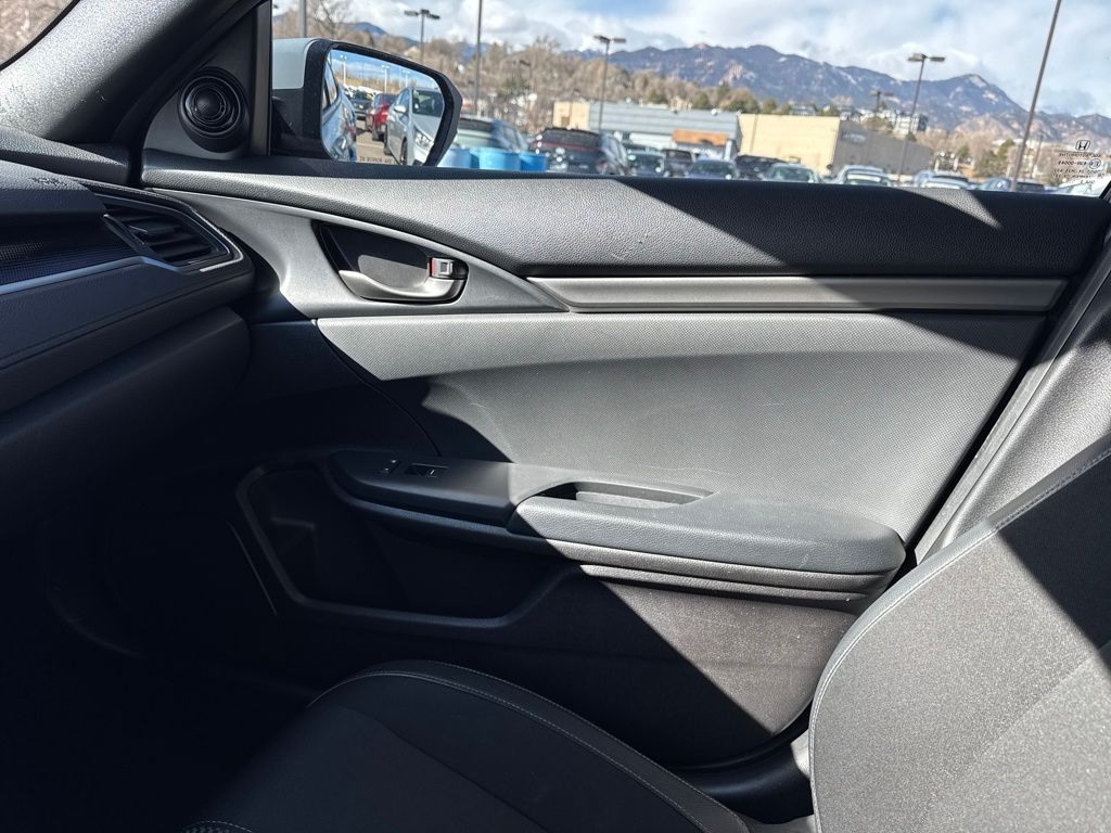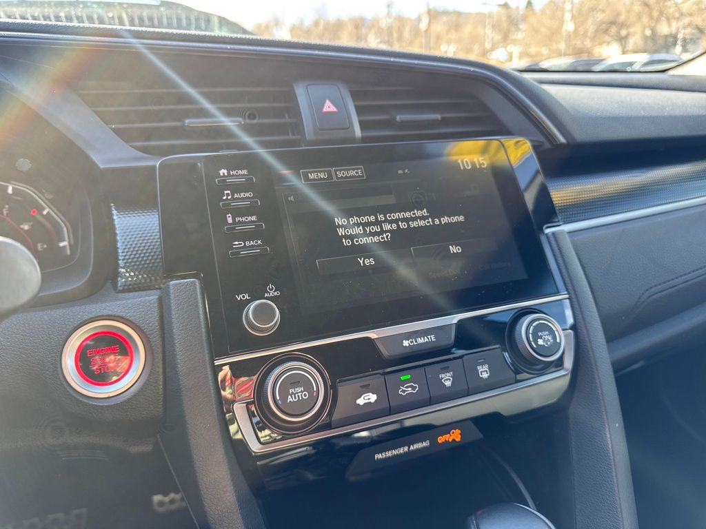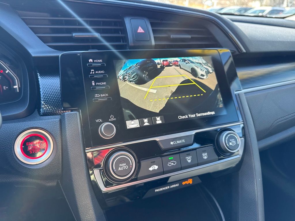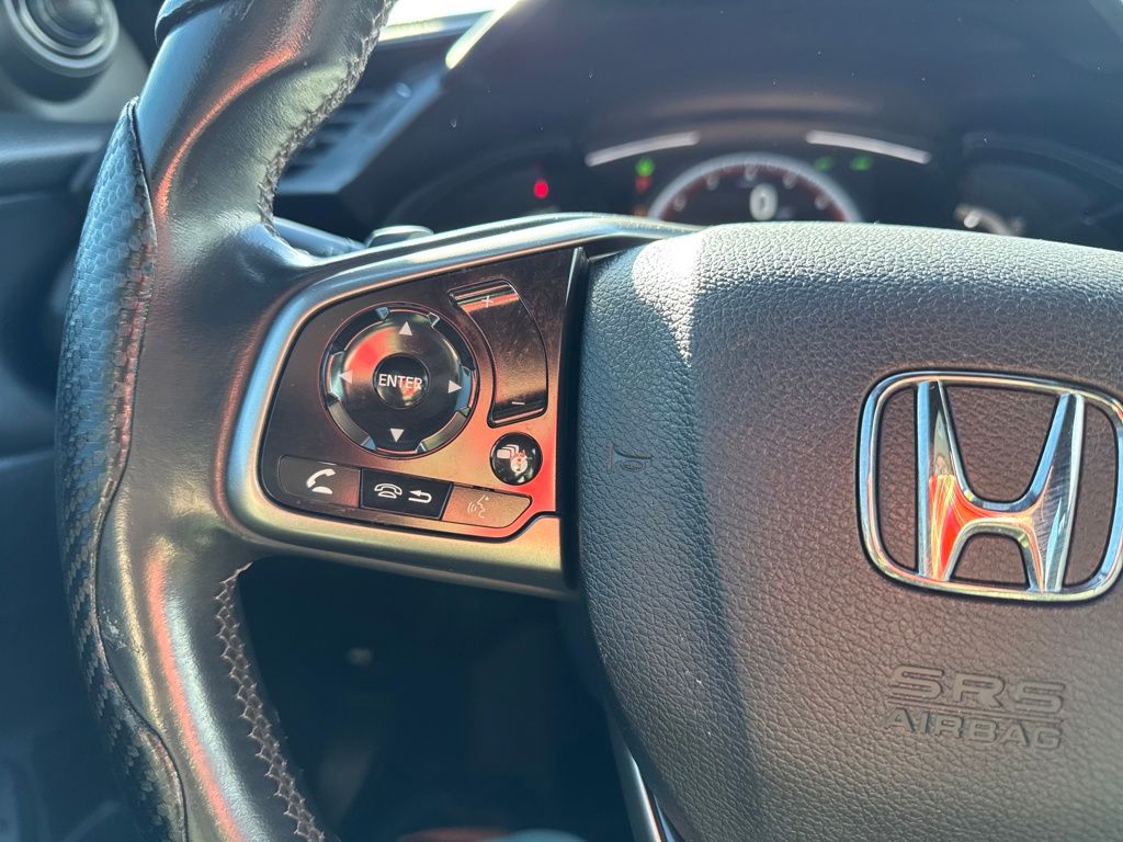 Black Cloth, 18" Alloy Wheels, 4 Speakers, 4-Wheel Disc Brakes, ABS brakes, Adaptive Cruise Control: Adaptive Cruise Control (ACC) with Low-Speed Follow, Air Conditioning, Alloy wheels, AM/FM radio, Apple CarPlay/Android Auto, Auto High-beam Headlights, Automatic temperature control, Brake assist, Bumpers: body-color, Delay-off headlights, Driver door bin, Driver vanity mirror, Dual front impact airbags, Dual front side impact airbags, Electronic Stability Control, Emergency communication system: HondaLink, Exterior Parking Camera Rear, Fabric Seating Surfaces, Forward collision: Collision Mitigation Braking System (CMBS) + FCW mitigation, Four wheel independent suspension, Front anti-roll bar, Front Bucket Seats, Front Center Armrest, Front fog lights, Front reading lights, Fully automatic headlights, Illuminated entry, Lane departure: Lane Keeping Assist System (LKAS) active, Leather Shift Knob, Low tire pressure warning, Occupant sensing airbag, Outside temperature display, Overhead airbag, Panic alarm, Passenger door bin, Passenger vanity mirror, Power door mirrors, Power steering, Power windows, Radio data system, Radio: 160-Watt Audio System, Rear anti-roll bar, Rear seat center armrest, Rear window defroster, Rear window wiper, Reclining Front Bucket Seats, Remote keyless entry, Security system, Speed control, Speed-sensing steering, Split folding rear seat, Spoiler, Steering wheel mounted audio controls, Tachometer, Telescoping steering wheel, Tilt steering wheel, Traction control, and Trip computer.