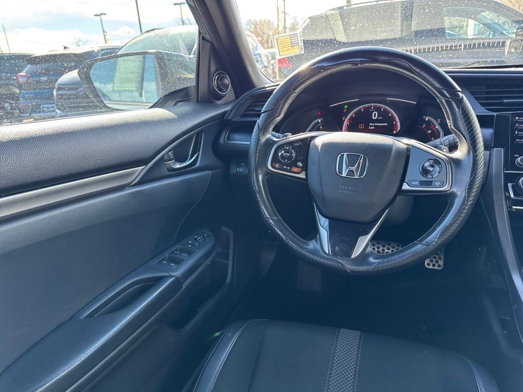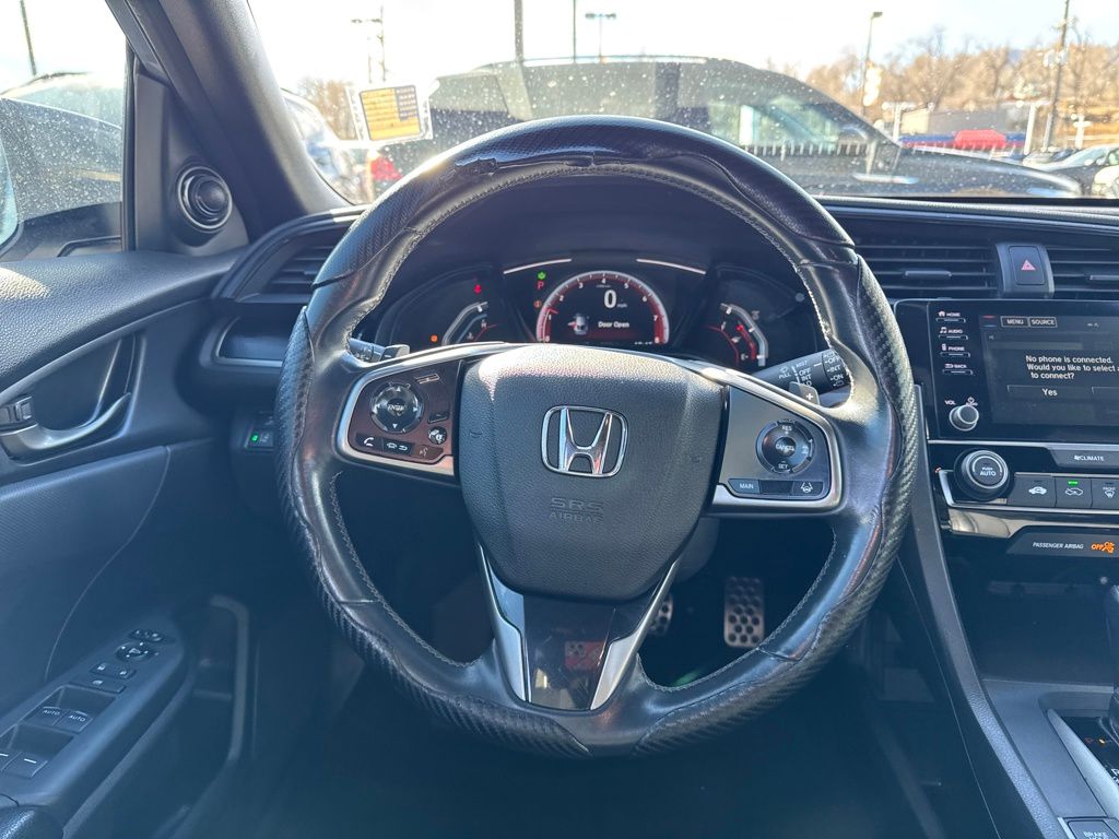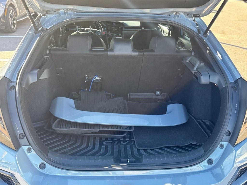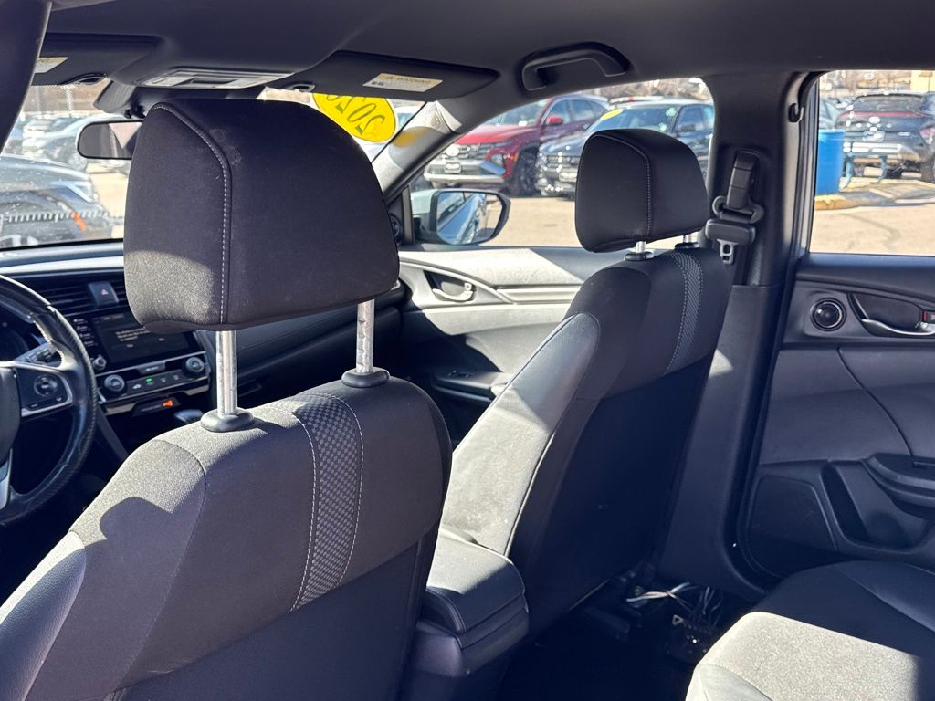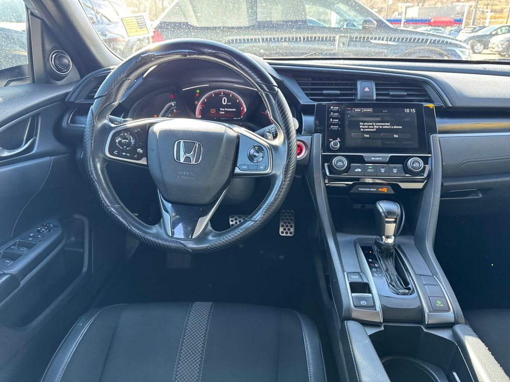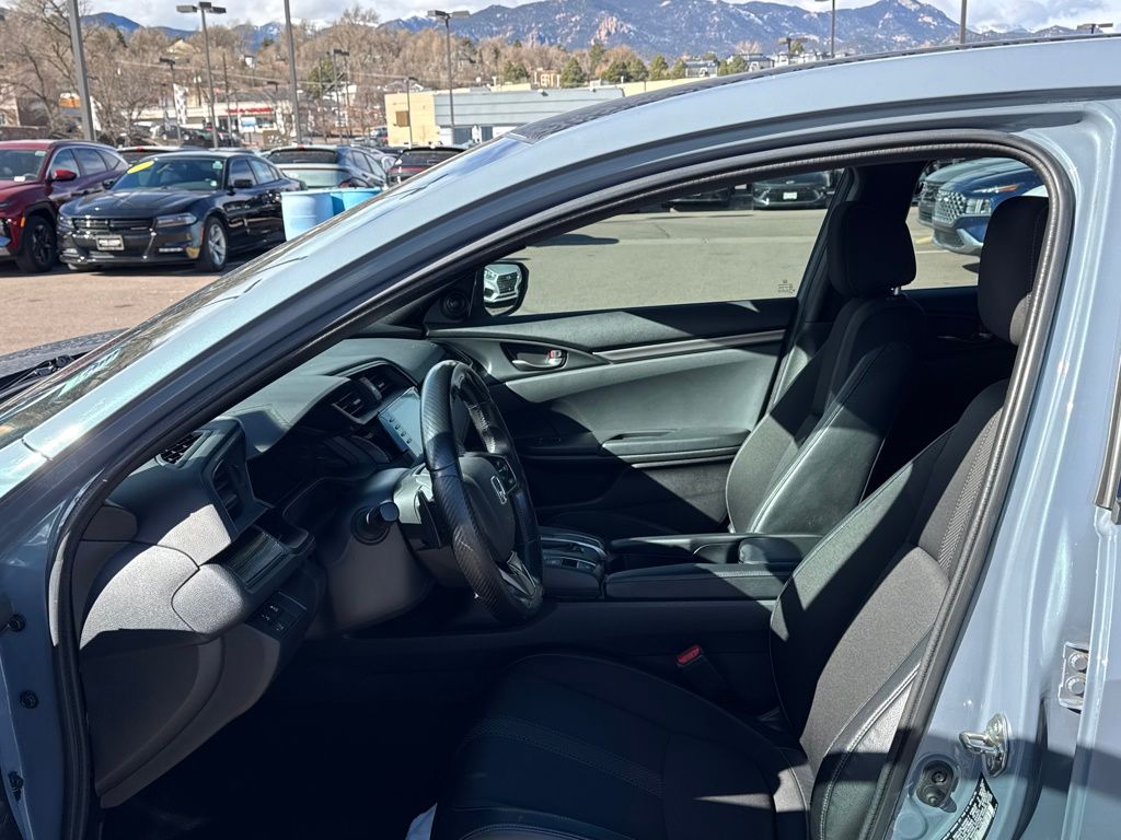 Black Cloth, 18" Alloy Wheels, 4 Speakers, 4-Wheel Disc Brakes, ABS brakes, Adaptive Cruise Control: Adaptive Cruise Control (ACC) with Low-Speed Follow, Air Conditioning, Alloy wheels, AM/FM radio, Apple CarPlay/Android Auto, Auto High-beam Headlights, Automatic temperature control, Brake assist, Bumpers: body-color, Delay-off headlights, Driver door bin, Driver vanity mirror, Dual front impact airbags, Dual front side impact airbags, Electronic Stability Control, Emergency communication system: HondaLink, Exterior Parking Camera Rear, Fabric Seating Surfaces, Forward collision: Collision Mitigation Braking System (CMBS) + FCW mitigation, Four wheel independent suspension, Front anti-roll bar, Front Bucket Seats, Front Center Armrest, Front fog lights, Front reading lights, Fully automatic headlights, Illuminated entry, Lane departure: Lane Keeping Assist System (LKAS) active, Leather Shift Knob, Low tire pressure warning, Occupant sensing airbag, Outside temperature display, Overhead airbag, Panic alarm, Passenger door bin, Passenger vanity mirror, Power door mirrors, Power steering, Power windows, Radio data system, Radio: 160-Watt Audio System, Rear anti-roll bar, Rear seat center armrest, Rear window defroster, Rear window wiper, Reclining Front Bucket Seats, Remote keyless entry, Security system, Speed control, Speed-sensing steering, Split folding rear seat, Spoiler, Steering wheel mounted audio controls, Tachometer, Telescoping steering wheel, Tilt steering wheel, Traction control, and Trip computer.