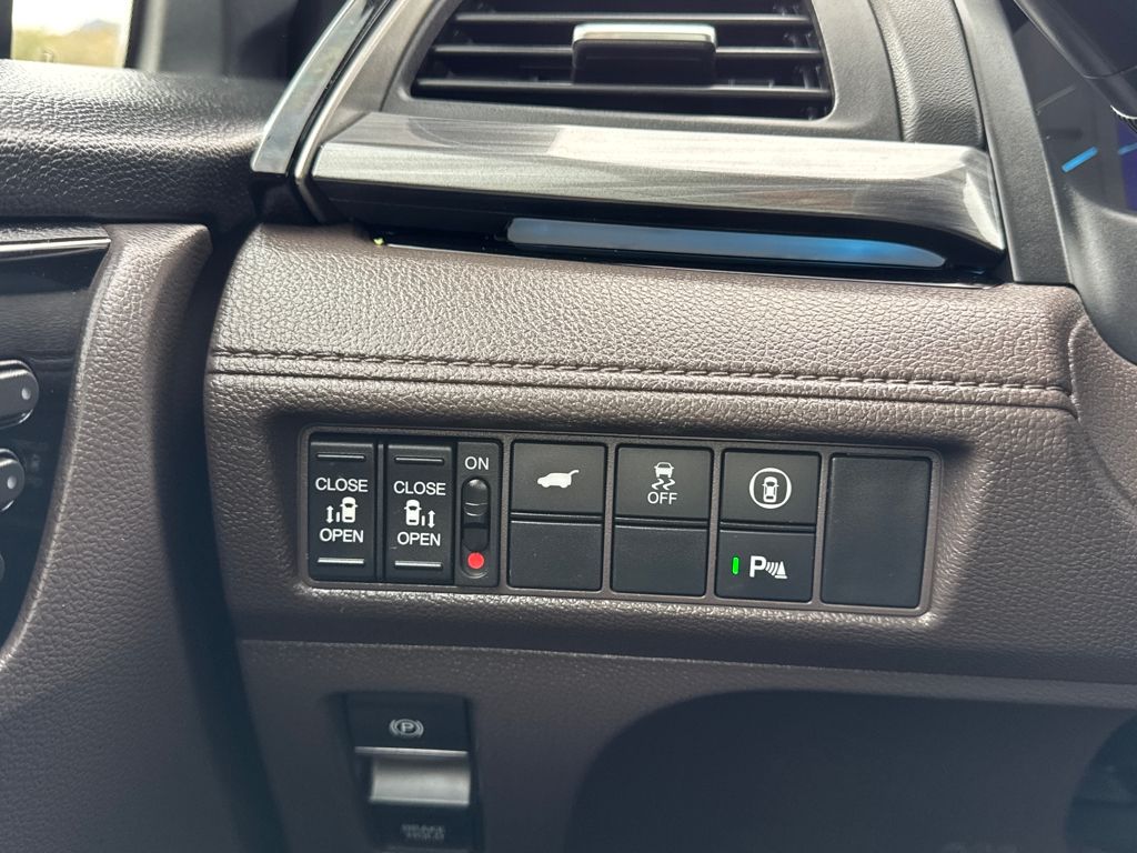 11 Speakers, 3.61 Axle Ratio, 3rd row seats: split-bench, 4-Wheel Disc Brakes, A/V remote: CabinControl, ABS brakes, Adaptive Cruise Control: Adaptive Cruise Control (ACC) with Low-Speed Follow, Air Conditioning, Alloy wheels, AM/FM radio: SiriusXM, Anti-whiplash front head restraints, Apple CarPlay/Android Auto, Auto High-beam Headlights, Auto-dimming door mirrors, Auto-dimming Rear-View mirror, Automatic temperature control, Blind Spot Information (BSI) System warning, Brake assist, Bumpers: body-color, CD player, Compass, Delay-off headlights, Driver door bin, Driver vanity mirror, Driver's Seat Mounted Armrest, Dual front impact airbags, Dual front side impact airbags, DVD-Audio, Electronic Stability Control, Emergency communication system: HondaLink, Exterior Parking Camera Rear, Forward collision: Collision Mitigation Braking System (CMBS) + FCW mitigation, Four wheel independent suspension, Front anti-roll bar, Front Bucket Seats, Front dual zone A/C, Front fog lights, Front reading lights, Fully automatic headlights, Garage door transmitter: HomeLink, Headphones, Heated & Ventilated Front Bucket Seats, Heated door mirrors, Heated front seats, Heated steering wheel, Illuminated entry, Knee airbag, Lane departure: Lane Keeping Assist System (LKAS) active, Leather Seat Trim, Leather steering wheel, Low tire pressure warning, Memory seat, Navigation system: Honda Satellite-Linked Navigation System, Occupant sensing airbag, Outside temperature display, Overhead airbag, Overhead console, Panic alarm, Passenger door bin, Passenger seat mounted armrest, Passenger vanity mirror, Power door mirrors, Power driver seat, Power Liftgate, Power moonroof, Power passenger seat, Power steering, Power windows, Radio data system, Radio: 550-Watt AM/FM/HD Premium Audio System, Rain sensing wipers, Rear air conditioning, Rear anti-roll bar, Rear audio controls, Rear reading lights, Rear seat center armrest, Rear window defroster, Rear window wiper, Reclining 3rd row seat, Remote keyless entry, Security system, Speed control, Speed-sensing steering, Speed-Sensitive Wipers, Split folding rear seat, Spoiler, Steering wheel mounted audio controls, Tachometer, Telescoping steering wheel, Tilt steering wheel, Traction control, Trip computer, Turn signal indicator mirrors, Variably intermittent wipers, Ventilated front seats, and Wheels: 19" Unique Machine-Finished Alloy.