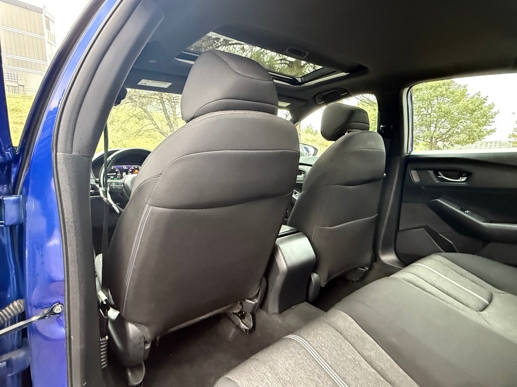 2.0L 16V DOHC, 4-Wheel Disc Brakes, 8 Speakers, ABS brakes, Adaptive Cruise Control: Adaptive Cruise Control (ACC) with Low-Speed Follow, Air Conditioning, Alloy wheels, AM/FM radio, Apple CarPlay/Android Auto, Auto High-beam Headlights, Automatic temperature control, Brake assist, Bumpers: body-color, Compass, Delay-off headlights, Driver door bin, Driver vanity mirror, Dual front impact airbags, Dual front side impact airbags, Electronic Stability Control, Emergency communication system: HondaLink, Exterior Parking Camera Rear, Fabric Seat Trim, Four wheel independent suspension, Front anti-roll bar, Front Bucket Seats, Front Center Armrest, Front dual zone A/C, Front reading lights, Fully automatic headlights, Illuminated entry, Knee airbag, Lane departure: Lane Keeping Assist System (LKAS) active, Leather Shift Knob, Leather steering wheel, Low tire pressure warning, Occupant sensing airbag, Outside temperature display, Overhead airbag, Overhead console, Panic alarm, Passenger door bin, Passenger vanity mirror, Power door mirrors, Power driver seat, Power moonroof, Power steering, Power windows, Radio data system, Radio: 180-Watt Audio System, Rear anti-roll bar, Rear reading lights, Rear seat center armrest, Rear side impact airbag, Rear window defroster, Remote keyless entry, Security system, Speed control, Speed-sensing steering, Speed-Sensitive Wipers, Split folding rear seat, Spoiler, Steering wheel mounted audio controls, Telescoping steering wheel, Tilt steering wheel, Traction control, Trip computer, Variably intermittent wipers, and Wheels: 19" x 8.5J Berlina Black.