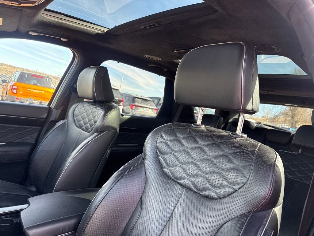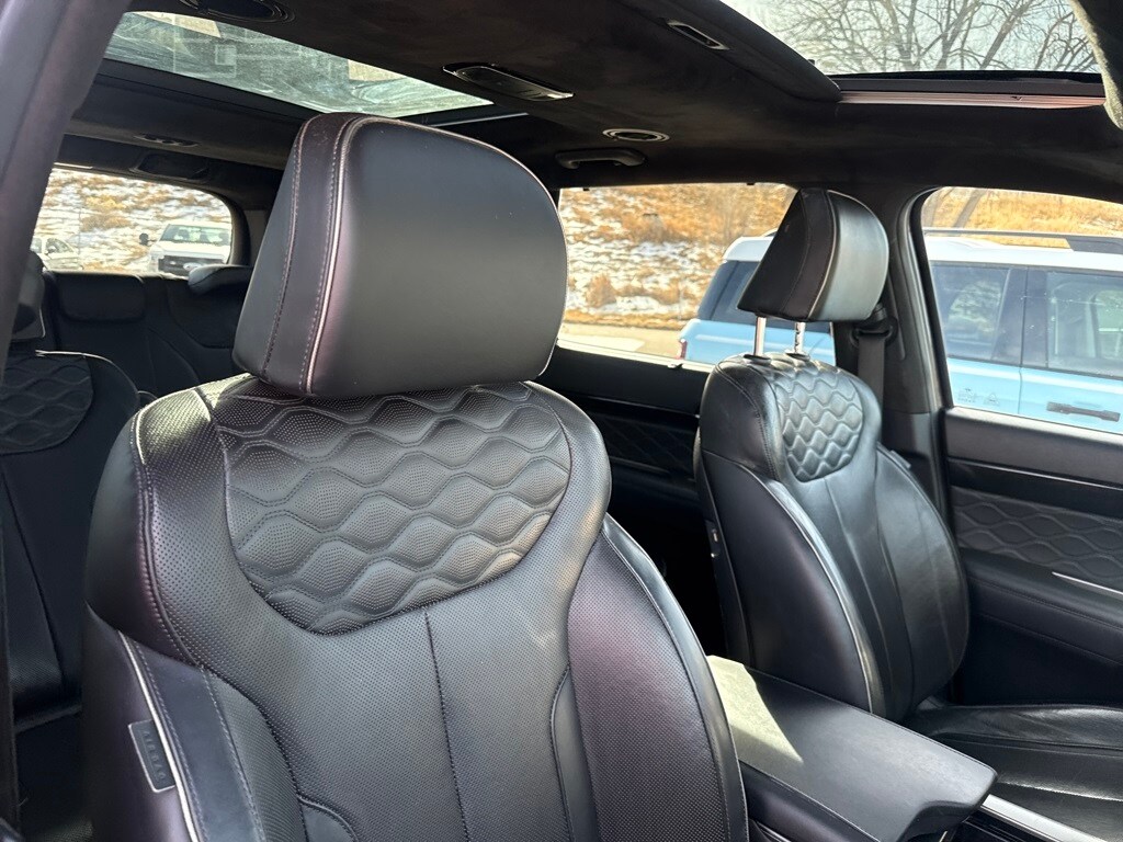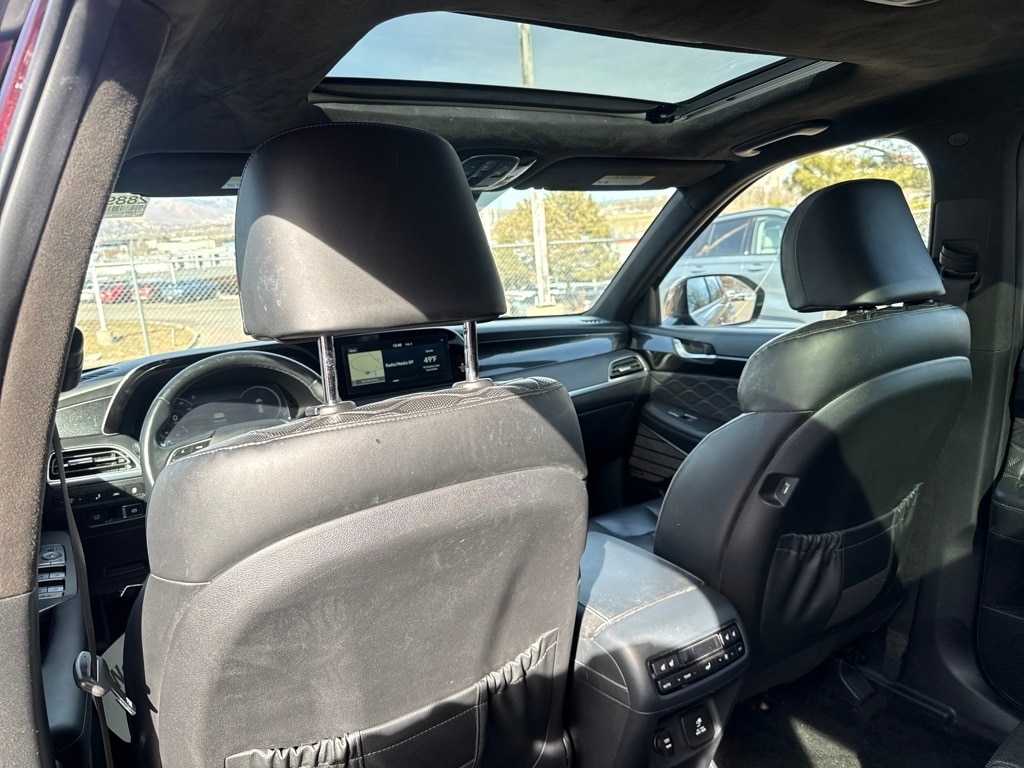 Option Group 01, 12 Speakers, 3.648 Axle Ratio, 3rd row seats: split-bench, 4-Wheel Disc Brakes, ABS brakes, Air Conditioning, Alloy wheels, AM/FM radio: SiriusXM, Apple CarPlay & Android Auto, Auto High-beam Headlights, Auto-dimming Rear-View mirror, Auto-leveling suspension, Automatic temperature control, Brake assist, Bumper Applique, Bumpers: body-color, Carpeted Floor Mats, Compass, Delay-off headlights, Driver door bin, Driver vanity mirror, Dual front impact airbags, Dual front side impact airbags, Electronic Stability Control, Emergency communication system, Four wheel independent suspension, Front anti-roll bar, Front Bucket Seats, Front Center Armrest, Front dual zone A/C, Front reading lights, Fully automatic headlights, Garage door transmitter: HomeLink, harman/kardon® Speakers, Heads-Up Display, Heated & Ventilated Front Bucket Seats, Heated door mirrors, Heated front seats, Heated rear seats, Heated steering wheel, Illuminated entry, Knee airbag, Low tire pressure warning, Memory seat, Navigation System, Occupant sensing airbag, Outside temperature display, Overhead airbag, Overhead console, Panic alarm, Passenger door bin, Passenger vanity mirror, Power door mirrors, Power driver seat, Power Liftgate, Power moonroof, Power passenger seat, Power steering, Power windows, Premium Nappa Leather Seat Trim, Radio data system, Radio: AM/FM/MP3 Premium Audio System, Rain sensing wipers, Rear air conditioning, Rear anti-roll bar, Rear window defroster, Rear window wiper, Reclining 3rd row seat, Remote keyless entry, Security system, Speed control, Speed-sensing steering, Split folding rear seat, Spoiler, Steering wheel mounted audio controls, Tachometer, Telescoping steering wheel, Tilt steering wheel, Traction control, Trip computer, Turn signal indicator mirrors, Variably intermittent wipers, Ventilated front seats, Ventilated rear seats, and Wheels: 20" x 7.5J 14-Spoke Premium Finish Alloy.
