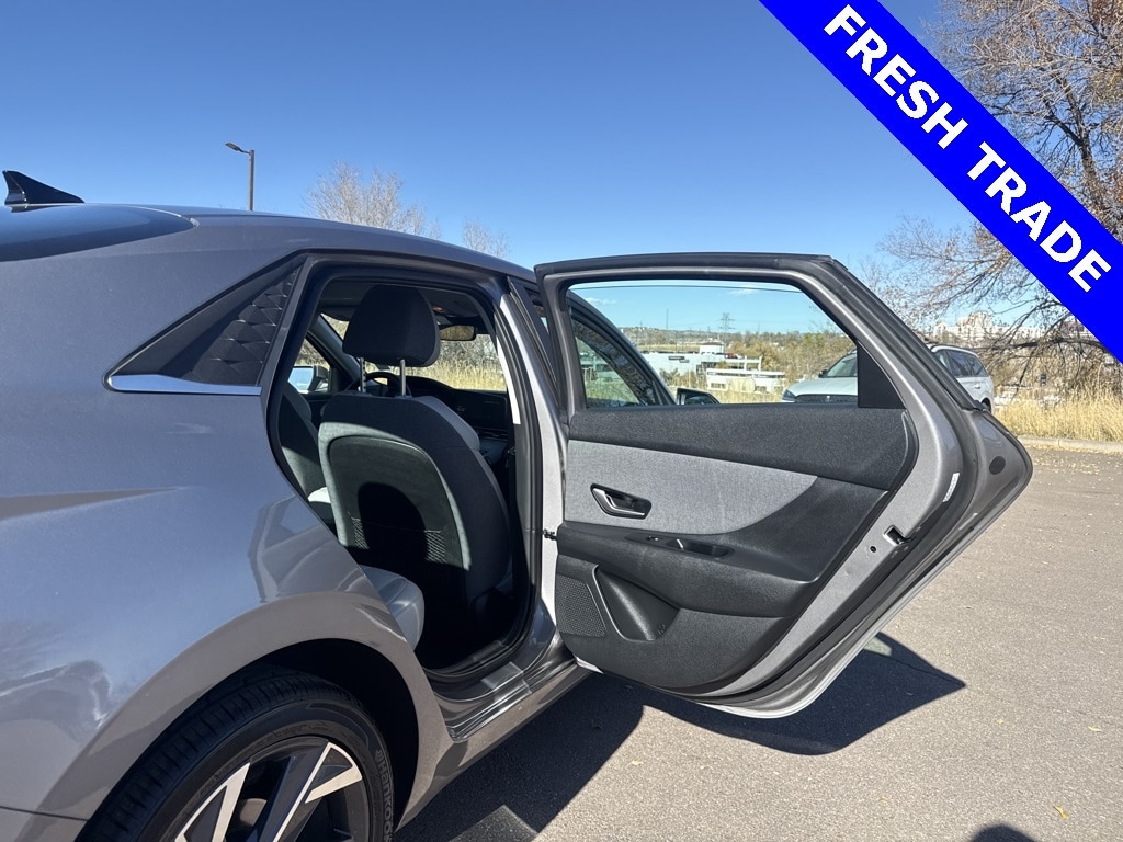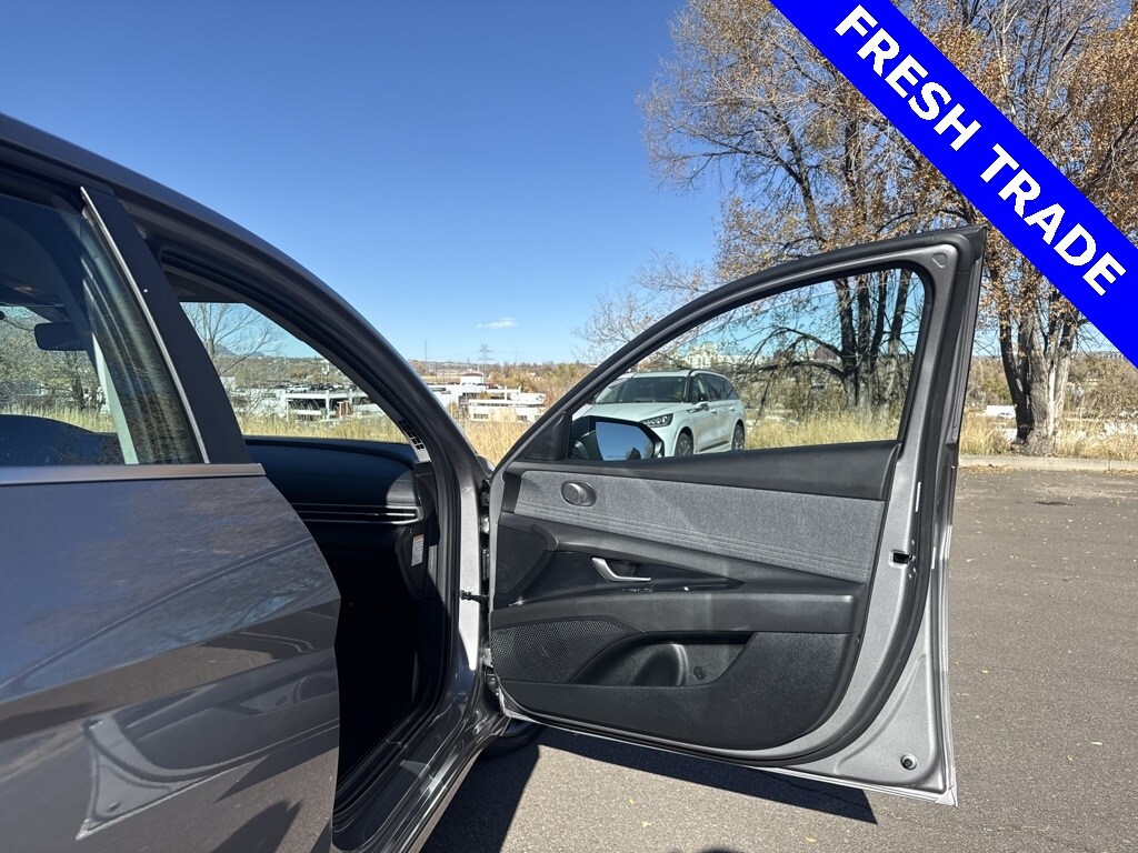 Option Group 01, I4, 17" x 7.0J Alloy Wheels, 4-Wheel Disc Brakes, 8 Speakers, ABS brakes, Air Conditioning, Alloy wheels, AM/FM radio: SiriusXM, Apple CarPlay & Android Auto, Auto High-beam Headlights, Auto-dimming Rear-View mirror, Automatic temperature control, Brake assist, Bumpers: body-color, Cargo Net, Cargo Side Bins, Carpeted Floor Mats, Delay-off headlights, Driver door bin, Driver vanity mirror, Dual front impact airbags, Dual front side impact airbags, Electronic Stability Control, Emergency communication system: Bluelink+, Exterior Parking Camera Rear, First Aid Kit, Front anti-roll bar, Front Bucket Seats, Front Center Armrest, Front dual zone A/C, Front reading lights, Front wheel independent suspension, Fully automatic headlights, H-Tex Leatherette Seat Trim, Heated & Ventilated Front Bucket Seats, Heated door mirrors, Heated front seats, Illuminated entry, Leather Shift Knob, Leather steering wheel, Low tire pressure warning, Memory seat, Navigation System, Occupant sensing airbag, Outside temperature display, Overhead airbag, Overhead console, Panic alarm, Passenger door bin, Passenger vanity mirror, Power door mirrors, Power driver seat, Power moonroof, Power steering, Power windows, Radio: AM/FM/HD/SiriusXM Display Audio, Rear seat center armrest, Rear side impact airbag, Rear window defroster, Remote keyless entry, Reversible Cargo Tray, Roadside Assistance Kit, Security system, Speed control, Speed-sensing steering, Split folding rear seat, Steering wheel mounted audio controls, Tachometer, Telescoping steering wheel, Tilt steering wheel, Traction control, Trip computer, Turn signal indicator mirrors, Variably intermittent wipers, and Ventilated front seats.