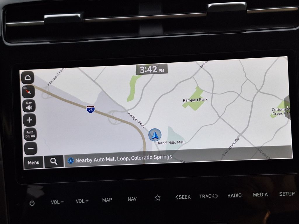 Convenience Package (10.25" Digital Instrument Cluster, 10.25" Navigation System (AVNT), Ambient Interior Lighting, Auto-Dimming Interior Mirror, Dual Automatic Temperature Control, Dynamic Voice Recognition, H-Tex Seat Trim, Leather-Wrapped Shift Knob, Leather-Wrapped Steering Wheel, LED Interior Lights (Room, Map), LED Taillights, Option Group 02, Power Sunroof, Radio: AM/FM/HD Audio System (P2), Side Mirrors w/Turn Signal Indicators, Ultrasonic Rear Occupant Alert, and Wheels: 19" x 7.5J" Machine-Face Finish Alloy), AWD, 3.648 Axle Ratio, 4-Wheel Disc Brakes, 6 Speakers, ABS brakes, Air Conditioning, Alloy wheels, AM/FM radio: SiriusXM, Apple CarPlay & Android Auto, Auto High-beam Headlights, Automatic temperature control, Brake assist, Bumpers: body-color, Cargo Cover, Cargo Net, Carpeted Floor Mats, Delay-off headlights, Driver door bin, Driver vanity mirror, Dual front impact airbags, Dual front side impact airbags, Electronic Stability Control, Emergency communication system: Blue Link Connected Car Service (3-year complimentary subscription), Exterior Parking Camera Rear, Four wheel independent suspension, Front and Rear Mudguards, Front anti-roll bar, Front Bucket Seats, Front Center Armrest, Front dual zone A/C, Front reading lights, Fully automatic headlights, Heated door mirrors, Heated Front Bucket Seats, Heated front seats, Illuminated entry, Low tire pressure warning, Occupant sensing airbag, Outside temperature display, Overhead airbag, Overhead console, Panic alarm, Passenger door bin, Passenger vanity mirror, Power door mirrors, Power driver seat, Power Liftgate, Power steering, Power windows, Radio data system, Radio: AM/FM/HD Audio System, Rear anti-roll bar, Rear seat center armrest, Rear side impact airbag, Rear window defroster, Rear window wiper, Remote keyless entry, Roadside Assistance Kit, Roof Rack Cross Rails, Roof rack: rails only, Security system, Speed control, Split folding rear seat, Spoiler, Stain & Odor Resistant Cloth Seat Trim, Steering wheel mounted audio controls, Tachometer, Telescoping steering wheel, Tilt steering wheel, Traction control, Trip computer, Variably intermittent wipers, and Wheels: 17" x 7.0J" Alloy. The strength of Hyundai of Chapel Hills competitive advantage is the result of its ongoing commitment to Philip Long's vision ~ Commitment to the community, quality customer service and exceptional value. Over the years, the Phil Long Group has been a part of the community since 1945! Not only do we support the troops but many more organizations across the state.