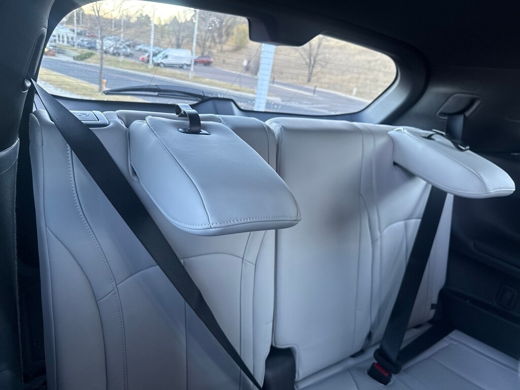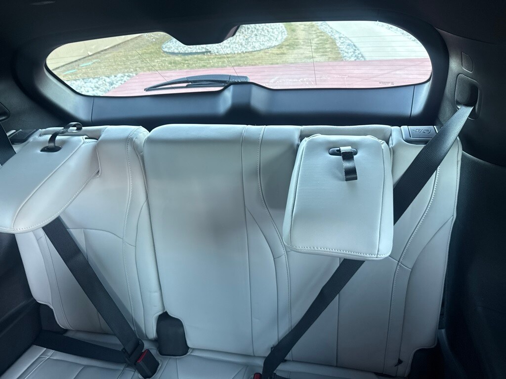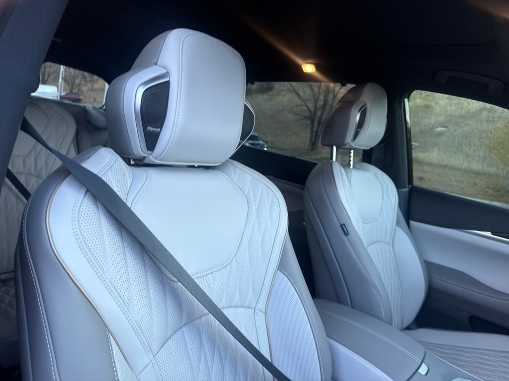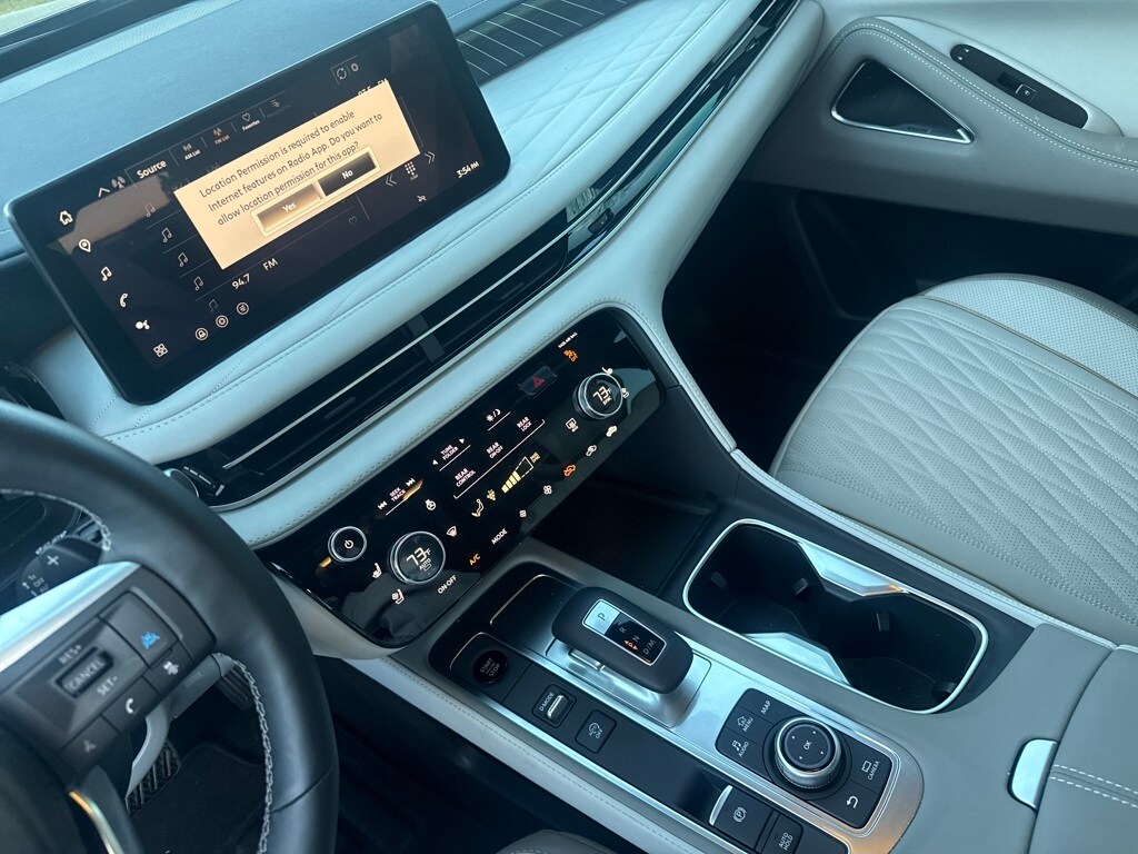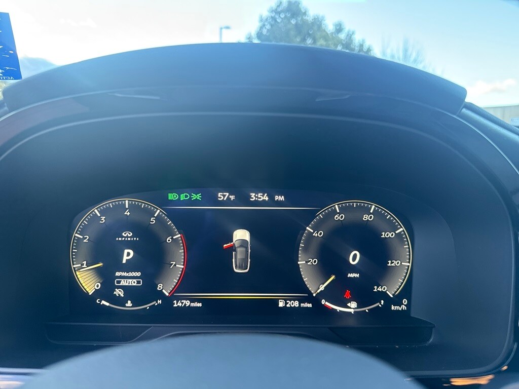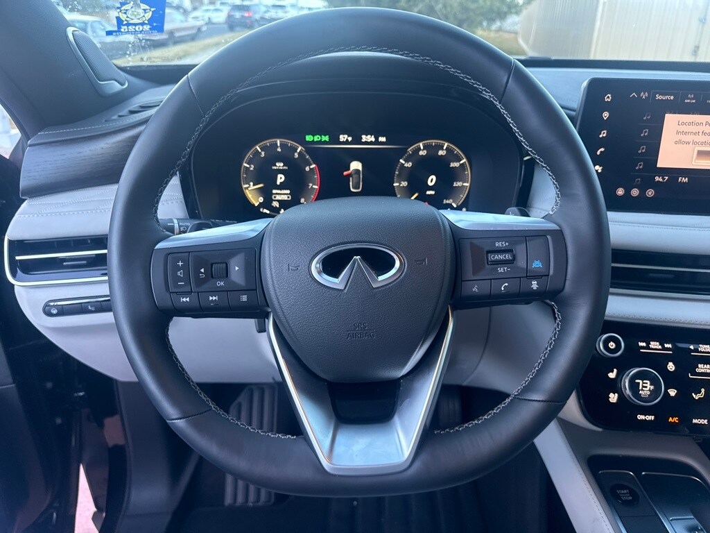 Dark Cargo Package (Black Rear Bumper Film, Cargo Blocks, Cargo Mat, Cargo Net, and Medic Kit), 20 Speakers, 3rd row seats: bench, 4-Wheel Disc Brakes, ABS brakes, Air Conditioning, Alloy wheels, AM/FM radio: SiriusXM with 360L, Anti-whiplash front head restraints, Apple CarPlay/Android Auto, Auto High-beam Headlights, Auto tilt-away steering wheel, Auto-dimming door mirrors, Auto-dimming Rear-View mirror, Automatic temperature control, Black Roof Rail Crossbars, Bose Performance Series 17-Speaker Sound System, Brake assist, Bumpers: body-color, Carpeted Floor Mats w/Captains Chairs on 3rd Row Tray, Climate Controlled Massaging Front Bucket Seats, Dark Illuminated Kick Plates, Delay-off headlights, Driver door bin, Driver vanity mirror, Dual front impact airbags, Dual front side impact airbags, Electronic Stability Control, Emergency communication system: INFINITI InTouch, Four wheel independent suspension, Front anti-roll bar, Front Bucket Seats, Front Center Armrest, Front dual zone A/C, Front reading lights, Fully automatic headlights, Garage door transmitter: HomeLink, Genuine wood door panel insert, Heads-Up Display, Heated door mirrors, Heated front seats, Heated rear seats, Heated steering wheel, Illuminated entry, INFINITI Radiant Dark Illum Cargo Scuff Plates, Knee airbag, Leather Shift Knob, Leather steering wheel, Literature Kit, Low tire pressure warning, Memory seat, Navigation system: Google Built-in, Occupant sensing airbag, Outside temperature display, Overhead airbag, Overhead console, Panic alarm, Passenger door bin, Passenger vanity mirror, Power door mirrors, Power driver seat, Power Liftgate, Power moonroof: Panoramic, Power passenger seat, Power steering, Power windows, Premium Paint, Radio data system, Radio: Klipsch Reference Premiere Audio System, Rain sensing wipers, Rear air conditioning, Rear anti-roll bar, Rear reading lights, Rear side impact airbag, Rear window defroster, Rear window wiper, Reclining 3rd row seat, Remote keyless entry, Security system, Semi Aniline Leather-Appointed Seating Surfaces, Speed control, Speed-sensing steering, Speed-Sensitive Wipers, Splash Guards, Split folding rear seat, Spoiler, Steering wheel memory, Steering wheel mounted audio controls, Tachometer, Telescoping steering wheel, Tilt steering wheel, Traction control, Trip computer, Turn signal indicator mirrors, Variably intermittent wipers, Ventilated front seats, and Wheels: 20" x 8J Luxury Machined Aluminum Alloy.