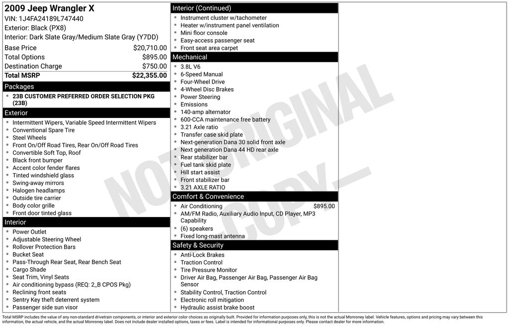 Overall, the 2009 Jeep Wrangler X combines off-road capability, safety features, and comfort, making it an excellent choice for anyone looking for a reliable and adventurous vehicle. Whether youâre tackling tough trails or cruising through the city, this Jeep is equipped to handle it all. Explore the great outdoors with confidence and style in the 2009 Jeep Wrangler X!