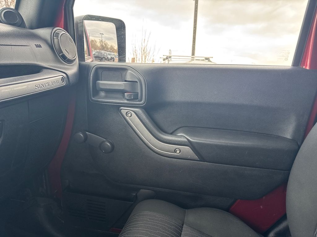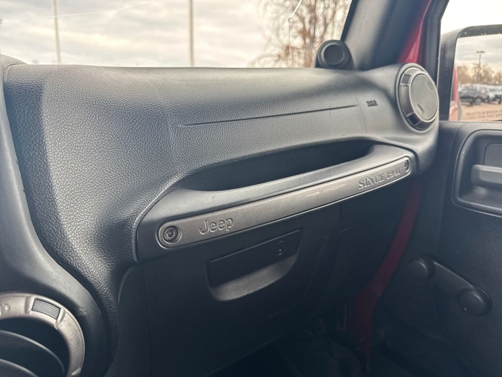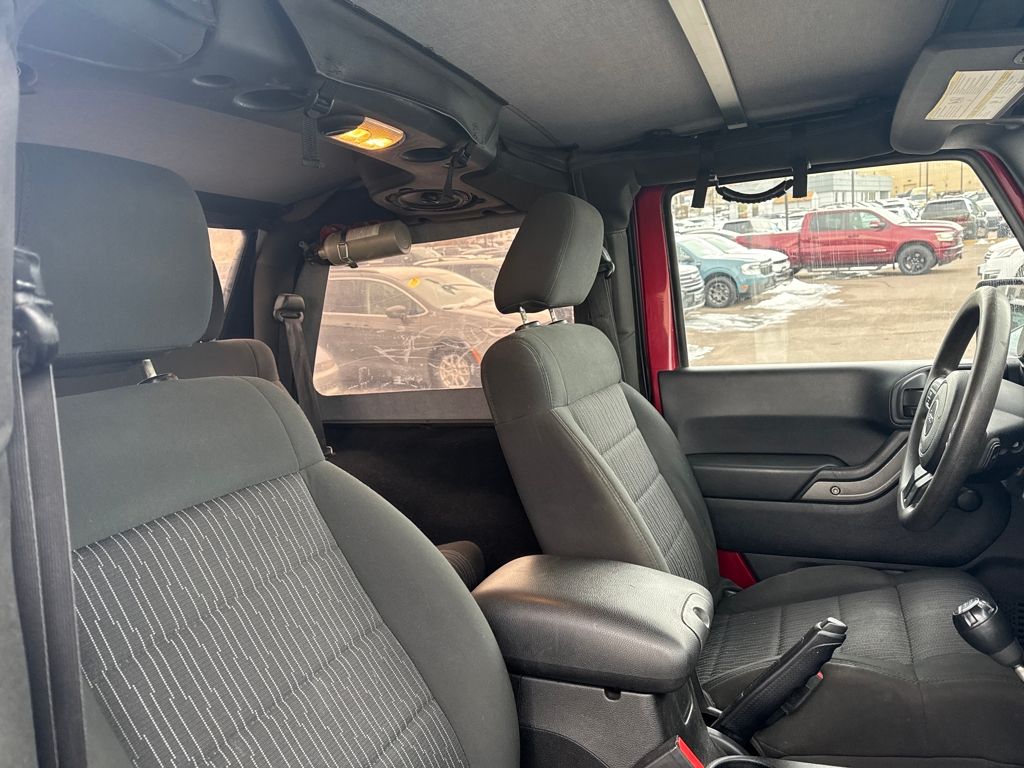 Quick Order Package 23B, 16" x 7.0" Luxury Styled Steel Wheels, 4-Wheel Disc Brakes, 6 Speakers, ABS brakes, Air Conditioning, AM/FM radio, Black Easy Folding Soft Top, Brake assist, CD player, Cloth Bucket Seats, Compass, Driver door bin, Driver vanity mirror, Dual front impact airbags, Electronic Stability Control, Front anti-roll bar, Front Bucket Seats, Front Center Armrest w/Storage, Front fog lights, Integrated roll-over protection, Low tire pressure warning, Normal Duty Suspension, Occupant sensing airbag, Outside temperature display, Passenger door bin, Passenger vanity mirror, Power steering, Radio: Media Center 130 CD/MP3, Rear anti-roll bar, SIRIUS Satellite Radio, Speed control, Steering wheel mounted audio controls, Tachometer, Tilt steering wheel, Traction control, Trip computer, and Variably intermittent wipers.