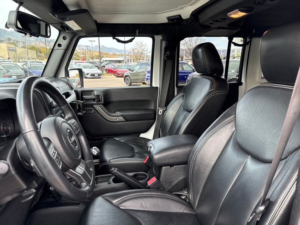 Connectivity Group (Remote USB Port, Tire Pressure Monitoring Display, Uconnect Voice Command w/Bluetooth, and Vehicle Information Center), LED Lighting Group (LED Fog Lamps and LED Reflector Headlamps), Quick Order Package 23W Willys Wheeler (1-Yr SiriusXM Radio Service, 4-Wheel Drive Swing Gate Decal, Anti-Spin Differential Rear Axle, Auto-Dimming Mirror w/Reading Lamp, Black Jeep Grille Badge, Deep Tint Sunscreen Windows, Front 1-Touch Down Power Windows, Jeep Trail Rated Kit, MOPAR Slush Mats, Performance Suspension, Power Convenience Group, Power Heated Mirrors, Power Locks, Rear Passenger Assist Handles Kit, Remote Keyless Entry, Security Alarm, SIRIUS Satellite Radio, Wheels: 17" x 7.5" High Gloss Black Willys, Willys Hood Decal, and Willys Wheeler Grille), Willys Wheeler Package, 16" x 7.0" Luxury Styled Steel Wheels, 4-Wheel Disc Brakes, 8 Speakers, ABS brakes, Air Conditioning, AM/FM radio, Black 3-Piece Hard Top, Brake assist, CD player, Cloth Seats w/Adjustable Head Restraints, Compass, Delete Sunrider Soft Top, Driver door bin, Driver vanity mirror, Dual front impact airbags, Electronic Stability Control, Freedom Panel Storage Bag, Front anti-roll bar, Front Bucket Seats, Front Center Armrest w/Storage, Front fog lights, Integrated roll-over protection, Low tire pressure warning, Normal Duty Suspension, Occupant sensing airbag, Outside temperature display, Passenger door bin, Passenger vanity mirror, Power steering, Radio: 130, Rear anti-roll bar, Rear Window Defroster, Rear Window Wiper/Washer, Speed control, Split folding rear seat, Steering wheel mounted audio controls, Tachometer, Tilt steering wheel, Traction control, Trip computer, and Variably intermittent wipers.