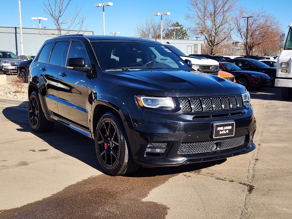 HIGH PERFORMANCE AUDIO 19 Speakers High Performance Audio, 825 Watt Amplifier, DUAL-PANE PANORAMIC SUNROOF Premium Headliner Module, TRAILER TOW GROUP IV Class IV Receiver Hitch, Compact Spare Tire, Light weight forged aluminum spare, 20 x 6.5 Aluminum Spare Wheel, 7 & 4 Pin Wiring Harness, WHEELS: 20 X 10.0 BLACK SATIN ALUMINUM, TRANSMISSION: 8-SPEED AUTOMATIC (8HP70) (STD), ENGINE: 6.4L V8 SRT HEMI MDS (STD). Jeep SRT with Diamond Black Crystal Pearlcoat exterior and Black interior features a 8 Cylinder Engine with 475 HP at 6000 RPM*. Approx. Original Base Sticker Price: $68,900*.