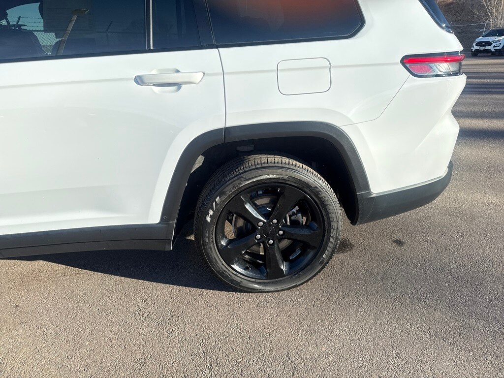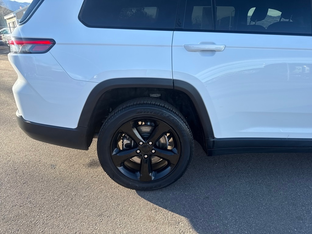 Altitude Appearance Package, Quick Order Package 22B Altitude (115V Auxiliary Power Outlet, 3rd Row Charge-Only USB Ports, Black Headliner, Bridgestone Brand Tires, Delete Laredo Badge, Gloss Black Exterior Accents, Heated Front Seats, Heated Steering Wheel, Leather Trimmed Bucket Seats, Leather Wrapped Steering Wheel, Molded In Color Black/Gloss Black Roof Rails, Power Liftgate, Rain Sensitive Windshield Wipers, Remote Start System, Selectable Tire Fill Alert, Wheels: 20" x 8.5" Gloss Black Painted Aluminum, and Wireless Charging Pad), 3.45 Rear Axle Ratio, 3rd row seats: split-bench, 4-Wheel Disc Brakes, 6 Speakers, ABS brakes, Air Conditioning, Alloy wheels, AM/FM radio, Anti-whiplash front head restraints, Apple CarPlay/Android Auto, Automatic temperature control, Brake assist, Bumpers: body-color, Cloth Seats, Compass, Delay-off headlights, Driver door bin, Driver vanity mirror, Dual front impact airbags, Dual front side impact airbags, Electronic Stability Control, Emergency communication system, Four wheel independent suspension, Front anti-roll bar, Front Bucket Seats, Front Center Armrest w/Storage, Front dual zone A/C, Front reading lights, Fully automatic headlights, Heated door mirrors, Illuminated entry, Knee airbag, Low tire pressure warning, Manual Fold Seatbacks, Normal Duty Suspension, Occupant sensing airbag, Outside temperature display, Overhead airbag, Overhead console, Panic alarm, ParkView Rear Back-Up Camera, Passenger door bin, Passenger vanity mirror, Power door mirrors, Power driver seat, Power steering, Power windows, Radio data system, Radio: Uconnect 5 w/8.4" Display, Rear air conditioning, Rear anti-roll bar, Rear reading lights, Rear window defroster, Rear window wiper, Reclining 3rd row seat, Remote keyless entry, Roof rack: rails only, Security system, Speed control, Speed-Sensitive Wipers, Split folding rear seat, Spoiler, Steering wheel mounted audio controls, Tachometer, Telescoping steering wheel, Tilt steering wheel, Traction control, Trip computer, Turn signal indicator mirrors, Variably intermittent wipers, and Wheels: 18" x 8.0" Fully Painted Aluminum.