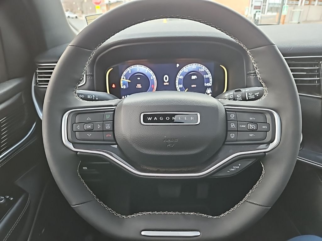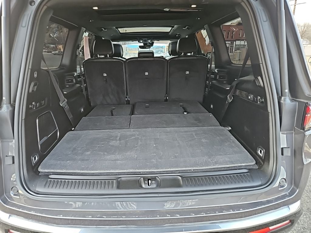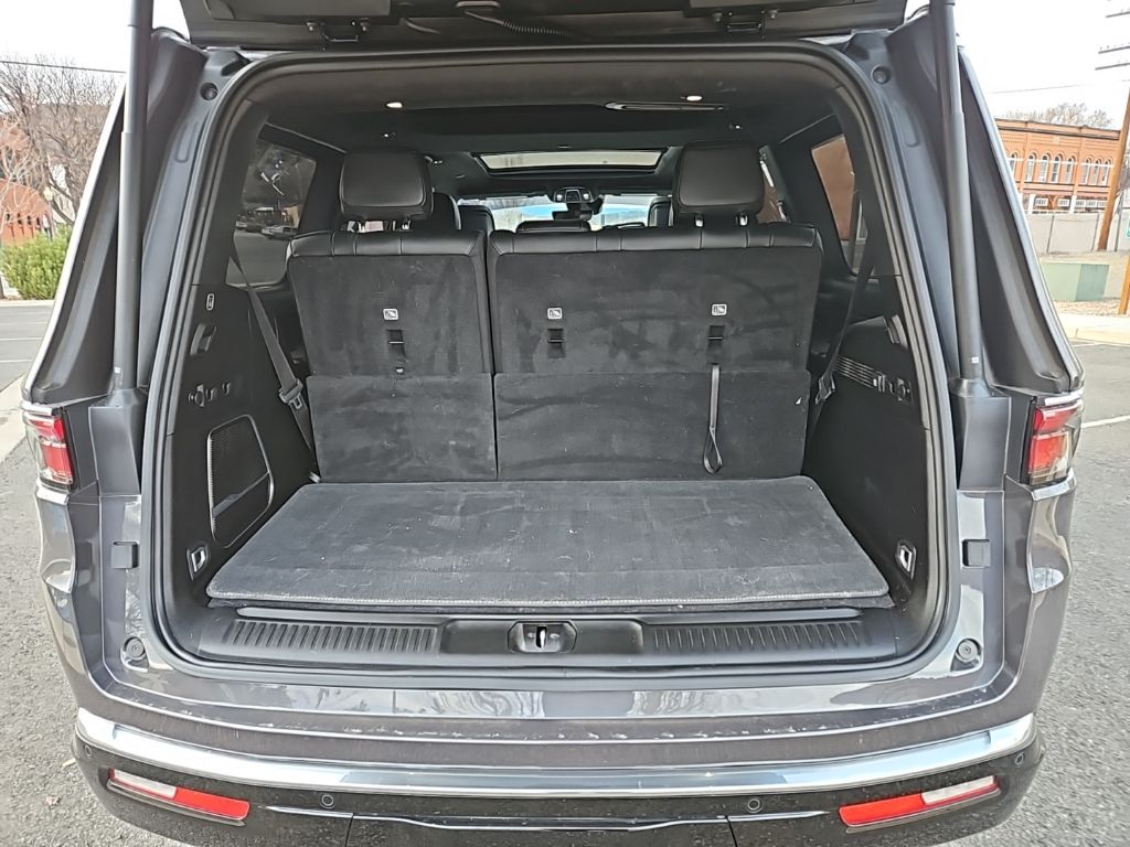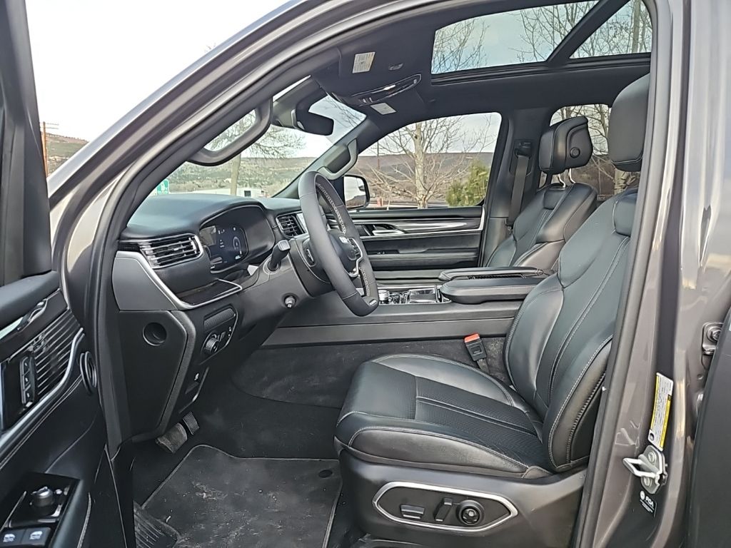 PREMIUM GROUP I Wheels: 20 x 9.0 Premium 2 Aluminum, Reversible Carpet/Vinyl Cargo Mat, Cargo Cover, Tires: 275/55R20 BSW All Season, 3 Panel Sunroof, Adjustable Roof Rail Crossbars, CONVENIENCE GROUP I Active Lane Management System, Side Distance Warning, Adaptive Cruise Control w/Stop & Go, Auto High Beam Headlamp Control, Surround View Camera System, 2nd Row Manual Window Shades, Rain Sensitive Windshield Wipers, Heated Second Row Seats, P&P Park & Unpark Assist w/Stop System, HD TRAILER TOW PACKAGE Trailer Brake Control, Heavy Duty Engine Cooling, Electronic Rear Limited Slip Differential, Black Tow Hooks, Removable Rear Tow Hook, Trailer Hitch Zoom, 2 Speed On Demand Transfer Case, 3.92 Rear Axle Ratio, Selec-Speed Control, TRANSMISSION: 8-SPEED AUTOMATIC (8HP75) (STD), ENGINE: 3.0L I6 HURRICANE SO TWIN TURBO ESS (STD). Jeep Wagoneer with Baltic Gray Metallic Clearcoat exterior and Global Black interior features a Straight 6 Cylinder Engine with 420 HP at 5200 RPM*.
