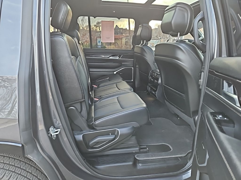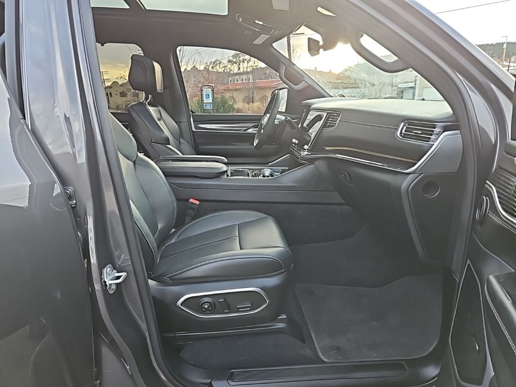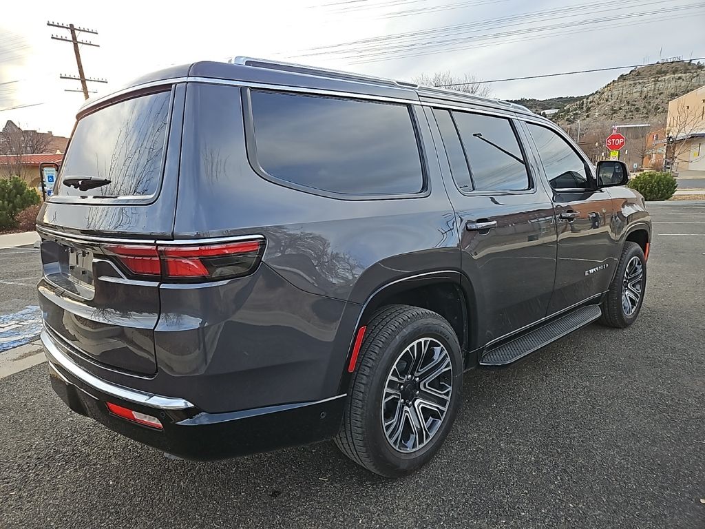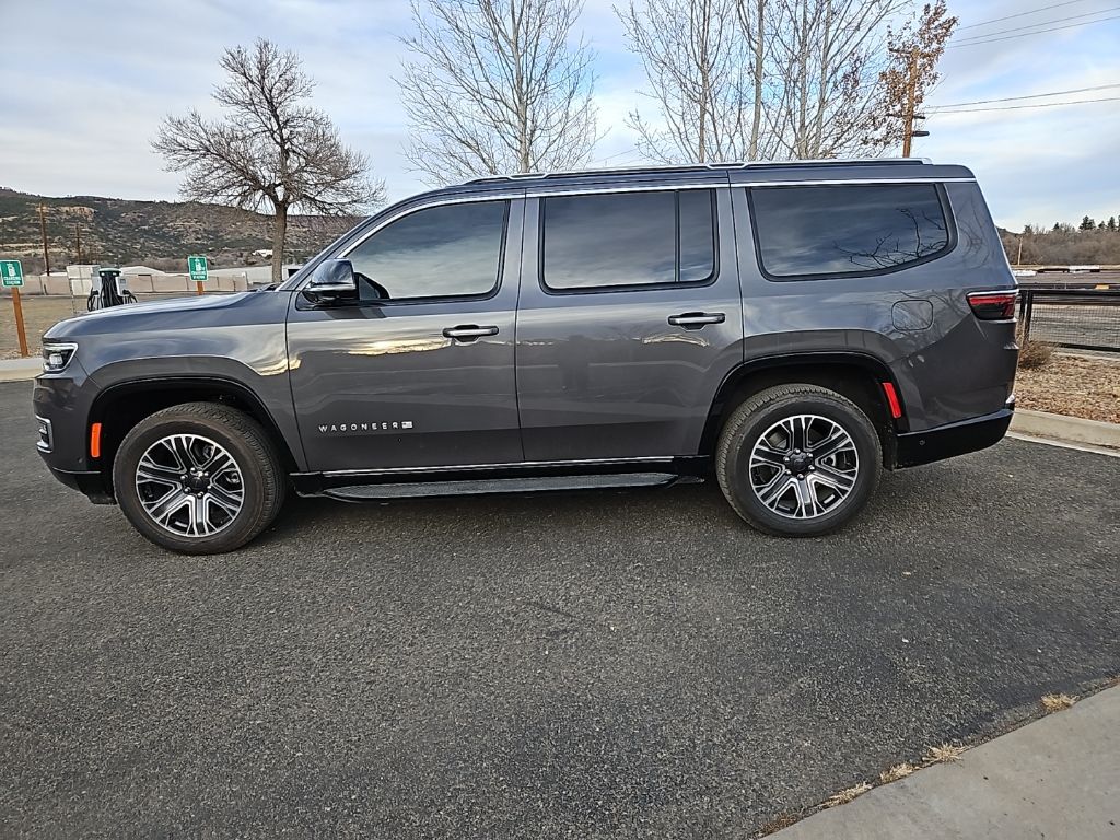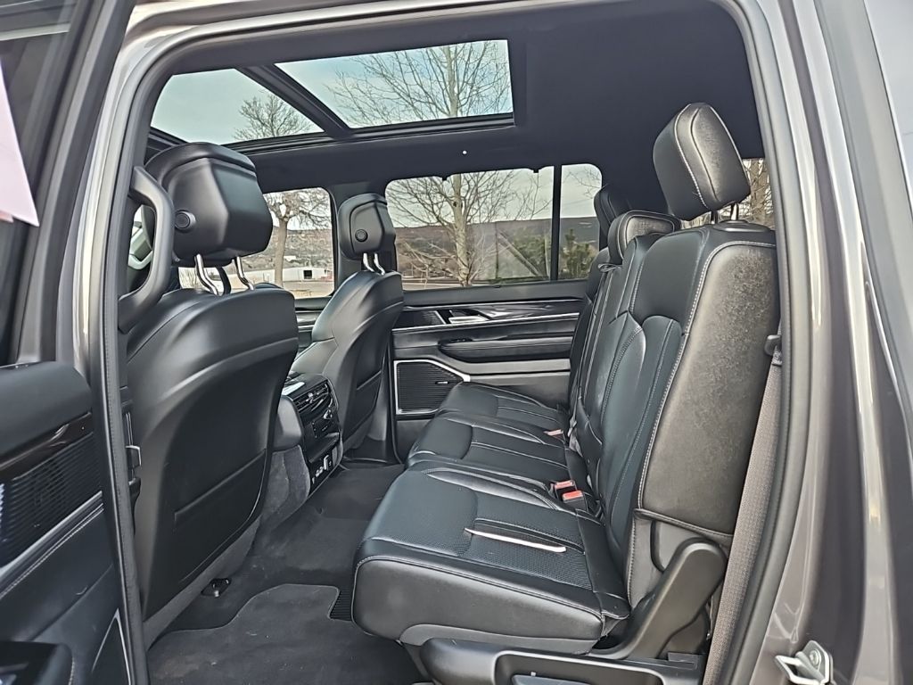 PREMIUM GROUP I Wheels: 20 x 9.0 Premium 2 Aluminum, Reversible Carpet/Vinyl Cargo Mat, Cargo Cover, Tires: 275/55R20 BSW All Season, 3 Panel Sunroof, Adjustable Roof Rail Crossbars, CONVENIENCE GROUP I Active Lane Management System, Side Distance Warning, Adaptive Cruise Control w/Stop & Go, Auto High Beam Headlamp Control, Surround View Camera System, 2nd Row Manual Window Shades, Rain Sensitive Windshield Wipers, Heated Second Row Seats, P&P Park & Unpark Assist w/Stop System, HD TRAILER TOW PACKAGE Trailer Brake Control, Heavy Duty Engine Cooling, Electronic Rear Limited Slip Differential, Black Tow Hooks, Removable Rear Tow Hook, Trailer Hitch Zoom, 2 Speed On Demand Transfer Case, 3.92 Rear Axle Ratio, Selec-Speed Control, TRANSMISSION: 8-SPEED AUTOMATIC (8HP75) (STD), ENGINE: 3.0L I6 HURRICANE SO TWIN TURBO ESS (STD). Jeep Wagoneer with Baltic Gray Metallic Clearcoat exterior and Global Black interior features a Straight 6 Cylinder Engine with 420 HP at 5200 RPM*.