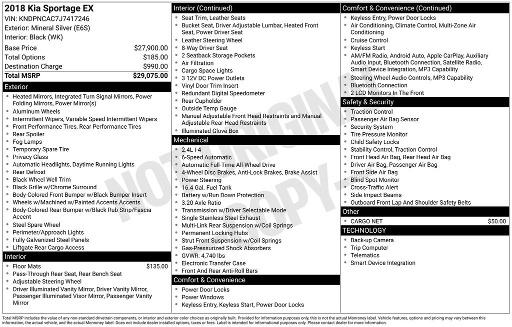 Mineral Silver 2018 Kia Sportage EX AWD 6-Speed Automatic Electronic with Overdrive 2.4L I4 DGI DOHC 16V AWD.