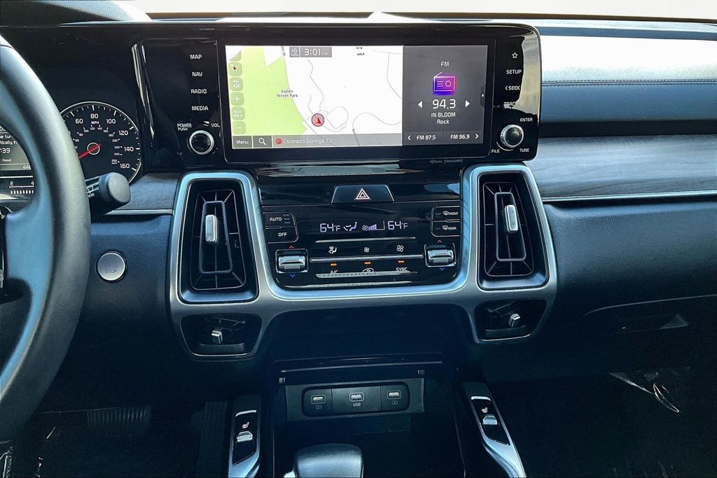 Panoramic Sunroof Package (LED Interior Lighting and Power Sunroof w/Power Sunshade), AWD, 3rd row seats: split-bench, 4-Wheel Disc Brakes, 4.081 Axle Ratio, 6 Speakers, ABS brakes, Air Conditioning, Alloy wheels, AM/FM radio: SiriusXM, Apple CarPlay & Android Auto, Auto High-beam Headlights, Automatic temperature control, Brake assist, Bumpers: body-color, Cargo Net, Carpeted Floor Mats, Delay-off headlights, Driver door bin, Driver vanity mirror, Dual front impact airbags, Dual front side impact airbags, Electronic Stability Control, Emergency communication system: UVO Link, Exterior Parking Camera Rear, Four wheel independent suspension, Front anti-roll bar, Front Bucket Seats, Front Center Armrest, Front dual zone A/C, Front reading lights, Fully automatic headlights, Heated door mirrors, Heated Front Bucket Seats, Heated front seats, Illuminated entry, Interior Lighting Kit, Knee airbag, Leather Shift Knob, Leather steering wheel, Low tire pressure warning, Navigation System, Occupant sensing airbag, Outside temperature display, Overhead airbag, Overhead console, Panic alarm, Passenger door bin, Passenger vanity mirror, Power door mirrors, Power driver seat, Power steering, Power windows, Radio data system, Radio: AM/FM Audio System, Rear air conditioning, Rear anti-roll bar, Rear reading lights, Rear seat center armrest, Rear window defroster, Rear window wiper, Remote keyless entry, Roof rack: rails only, Security system, Smart Key w/ Push Button and Remote Start, Speed control, Speed-sensing steering, Split folding rear seat, Spoiler, Steering wheel mounted audio controls, SynTex Artificial Leather Seat Trim, Tachometer, Telescoping steering wheel, Tilt steering wheel, Tow Hitch Wired (Non Turbo), Traction control, Trip computer, Turn signal indicator mirrors, Variably intermittent wipers, and Wheels: 7.5J x 18" Gloss Black Alloy.