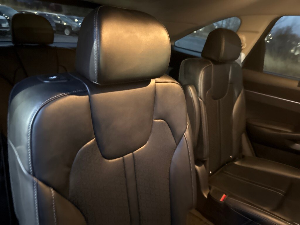1.6L I4 DGI Hybrid Turbocharged DOHC 16V LEV3-ULEV70, 3rd row seats: split-bench, 4-Wheel Disc Brakes, 6 Speakers, ABS brakes, Air Conditioning, Alloy wheels, AM/FM radio: SiriusXM, Apple CarPlay & Android Auto, Auto High-beam Headlights, Automatic temperature control, Axle Ratio: 3.510, Brake assist, Bumpers: body-color, Delay-off headlights, Driver door bin, Driver vanity mirror, Dual front impact airbags, Dual front side impact airbags, Electronic Stability Control, Emergency communication system, Exterior Parking Camera Rear, Four wheel independent suspension, Front anti-roll bar, Front Bucket Seats, Front Center Armrest, Front dual zone A/C, Front fog lights, Front reading lights, Fully automatic headlights, Heated door mirrors, Heated Front Bucket Seats, Heated front seats, Illuminated entry, Knee airbag, Leather steering wheel, Low tire pressure warning, Navigation System, Occupant sensing airbag, Outside temperature display, Overhead airbag, Overhead console, Panic alarm, Passenger door bin, Passenger vanity mirror, Power door mirrors, Power driver seat, Power Liftgate, Power passenger seat, Power steering, Power windows, Radio data system, Radio: AM/FM/HD Radio/SiriusXM Audio System, Rear air conditioning, Rear anti-roll bar, Rear reading lights, Rear window defroster, Rear window wiper, Remote keyless entry, Roof rack: rails only, Security system, Smart Key w/ Push Button and Remote Start, Speed control, Speed-sensing steering, Split folding rear seat, Spoiler, Steering wheel mounted audio controls, SynTex Artificial Leather Seat Trim, Tachometer, Telescoping steering wheel, Tilt steering wheel, Traction control, Trip computer, Turn signal indicator mirrors, Variably intermittent wipers, and Wheels: 19" Machine-Finished Alloy.