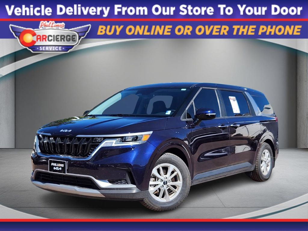 CARPETED FLOOR MATS (8-PASSENGER). Kia LX with Deep Chroma Blue exterior and Gray interior features a V6 Cylinder Engine with 290 HP at 6400 RPM*.