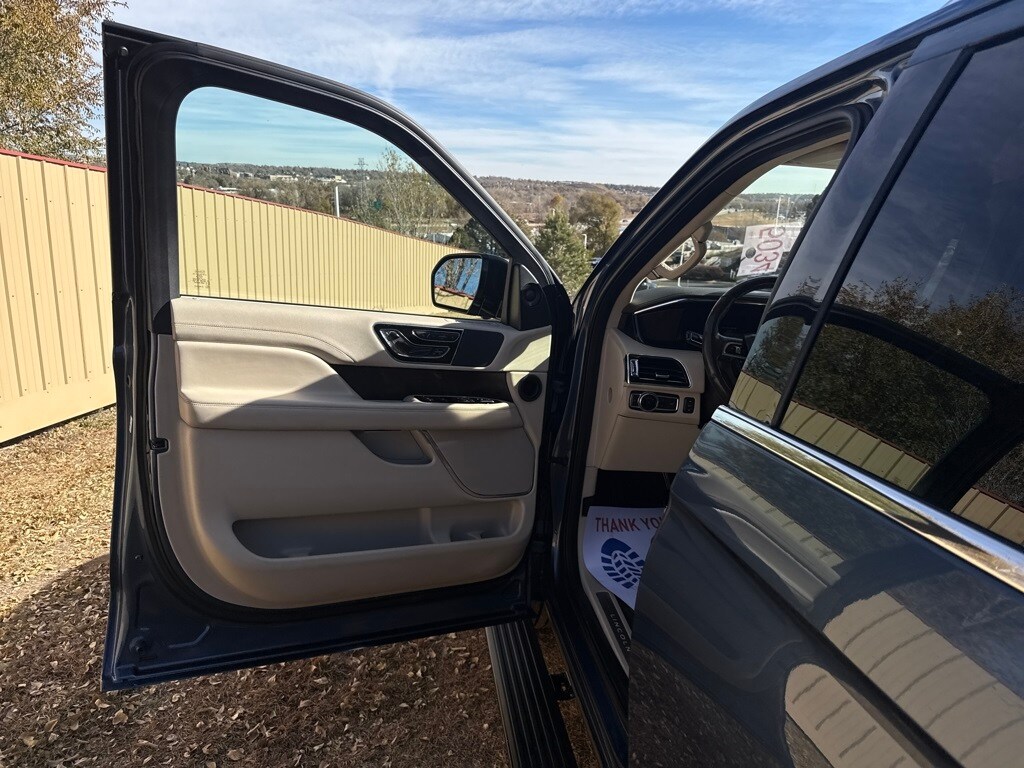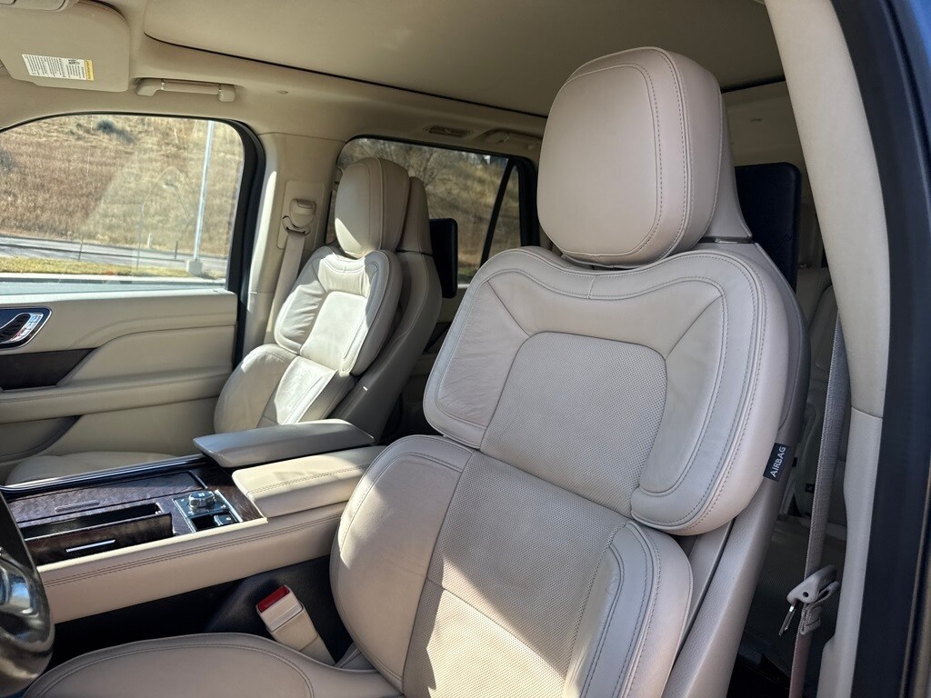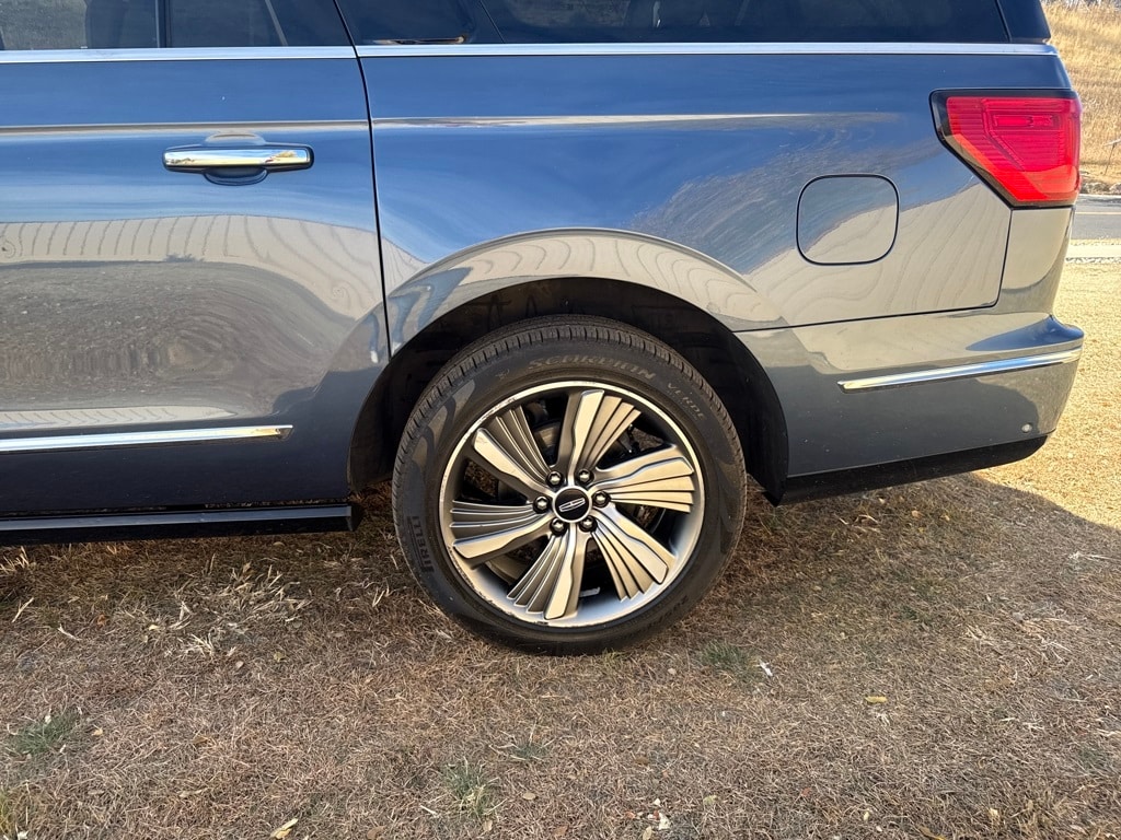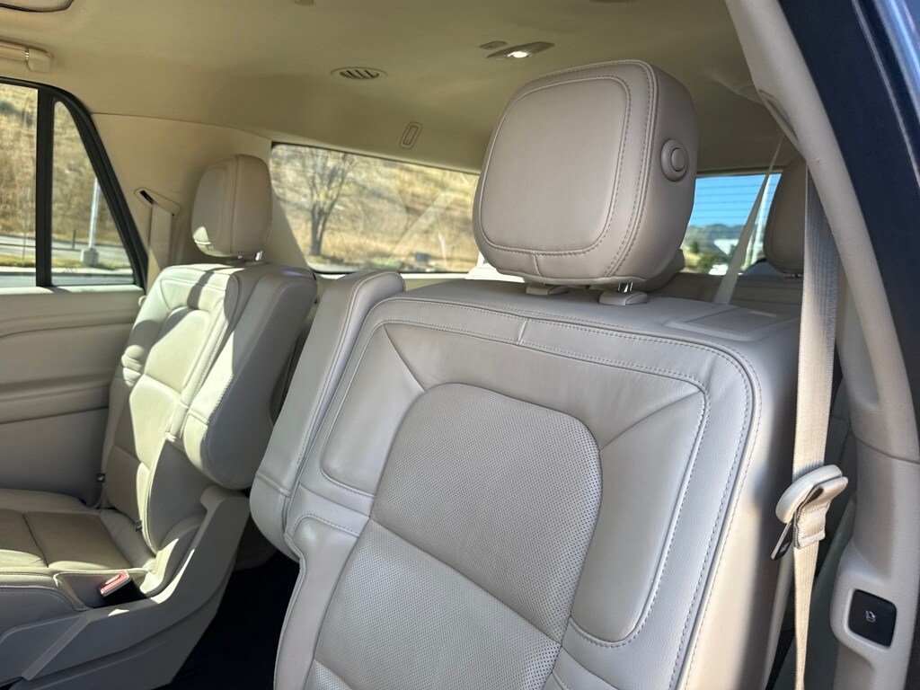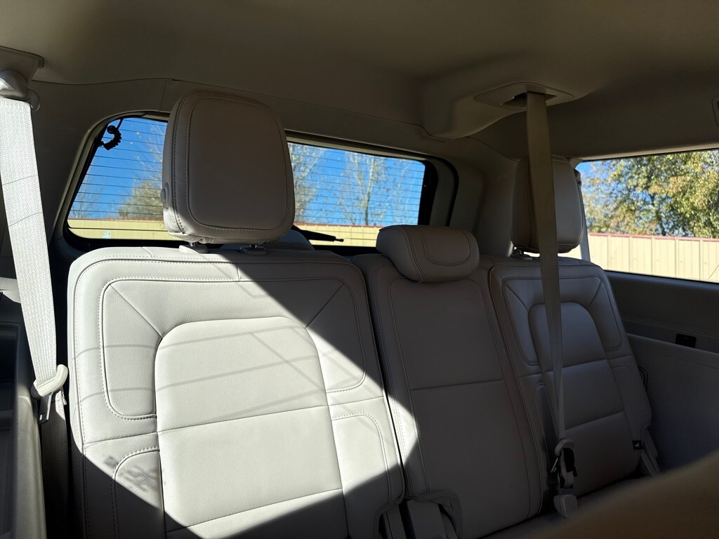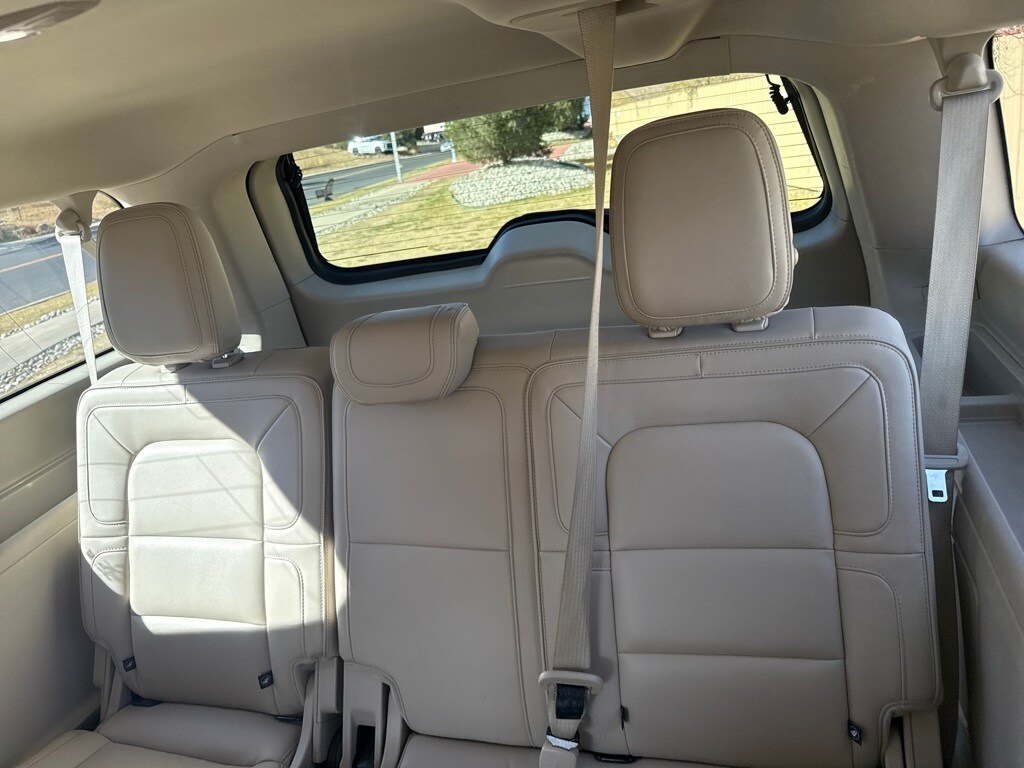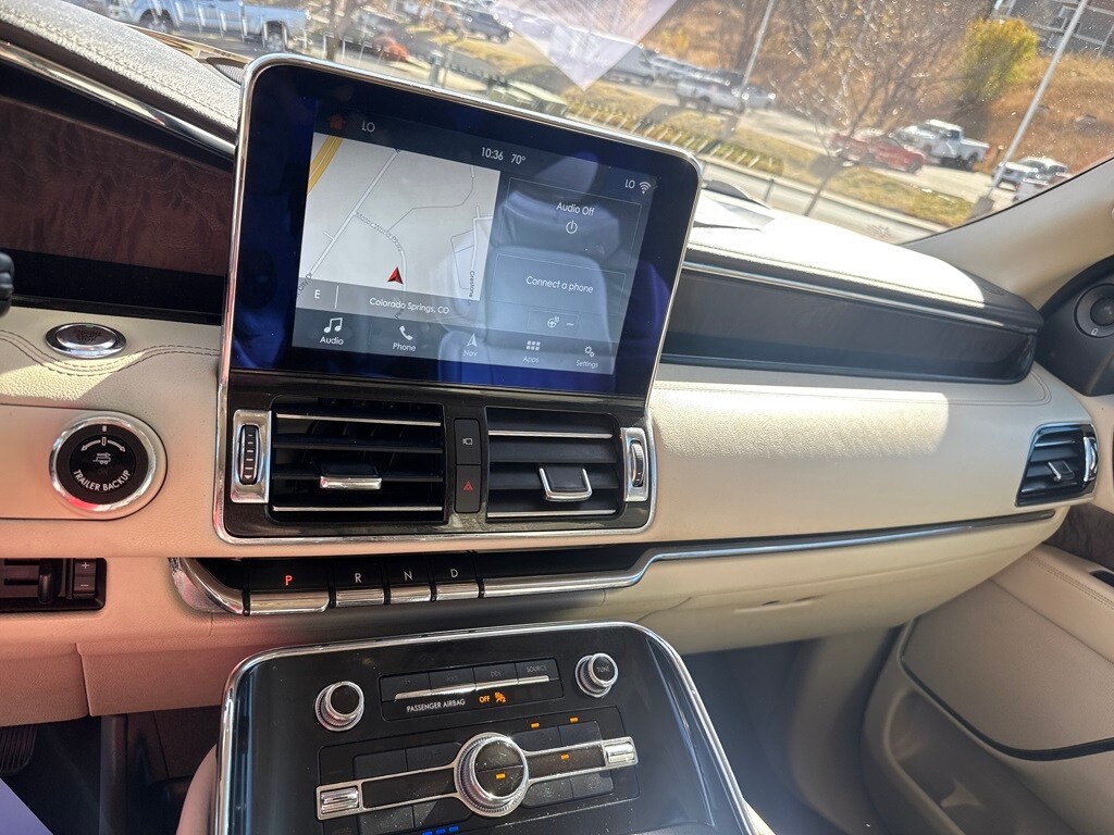 Cargo Package (Bright Roof Rack w/Crossbars), Equipment Group 300A Reserve, GVWR: 7,800 lbs Payload Package, Heavy-Duty Trailer Tow Package (Electronic Traction Assist (eLSD), Heavy-Duty Radiator, Pro Trailer Backup Assist, and Trailer Brake Controller (TBC)), Technology Package (Adaptive Cruise Control, Auto High Beam, Auto Park Active Park Assist, Head-Up Display, Lane Keeping System, and Pre-Collision Assist w/Pedestrian Detection), 14 Speakers, 1st & 2nd Row All-Weather Floor Liners, 2nd Row Heated Dual Captain Chair Seat, 3.73 Axle Ratio, 30-Way Perfect Position Seating w/Active Motion, 3rd row seats: split-bench, 4-Wheel Disc Brakes, ABS brakes, Adaptive suspension, Adjustable pedals, Air Conditioning, Alloy wheels, AM/FM radio: SiriusXM, AppLink/Apple CarPlay and Android Auto, Audio memory, Auto tilt-away steering wheel, Auto-dimming door mirrors, Auto-dimming Rear-View mirror, Auto-leveling suspension, Automatic temperature control, Bodyside moldings, Brake assist, Bumpers: body-color, Compass, Delay-off headlights, Driver door bin, Driver vanity mirror, Driver's Seat Mounted Armrest, Dual front impact airbags, Dual front side impact airbags, Electronic Stability Control, Emergency communication system: 911 Assist, Exterior Parking Camera Rear, Four wheel independent suspension, Front anti-roll bar, Front Bucket Seats, Front dual zone A/C, Front fog lights, Front reading lights, Fully automatic headlights, Garage door transmitter: HomeLink, Genuine wood dashboard insert, Genuine wood door panel insert, Heated door mirrors, Heated front seats, Heated rear seats, Heated steering wheel, HVAC memory, Illuminated entry, Leather steering wheel, Lincoln Play, Low tire pressure warning, Memory seat, Navigation System, Occupant sensing airbag, Outside temperature display, Overhead airbag, Overhead console, Panic alarm, Passenger door bin, Passenger seat mounted armrest, Passenger vanity mirror, Pedal memory, Power door mirrors, Power driver seat, Power Liftgate, Power moonroof: Panoramic Vista Roof, Power passenger seat, Power steering, Power windows, Premium Lthr Htd/Ventilated Low-Back Bucket Seats, Radio data system, Radio: Revel AM/FM/HD/MP3 Audio System, Rain sensing wipers, Rear air conditioning, Rear anti-roll bar, Rear audio controls, Rear reading lights, Rear window defroster, Rear window wiper, Reclining 3rd row seat, Remote keyless entry, Roof rack: rails only, Security system, SiriusXM Radio, Speed control, Speed-sensing steering, Speed-Sensitive Wipers, Split folding rear seat, Spoiler, Steering wheel memory, Steering wheel mounted audio controls, SYNC 3 Communications & Entertainment System, Tachometer, Telescoping steering wheel, Tilt steering wheel, Traction control, Trip computer, Turn signal indicator mirrors, Variably intermittent wipers, Ventilated front seats, Wheels: 22" 16-Spoke Ultra-Bright Machined Alum., And Wheels: 22" 6-Spoke Ultra-Bright Machined-Aluminum.