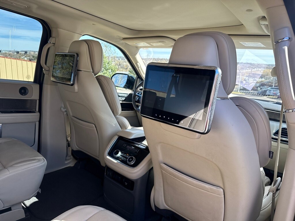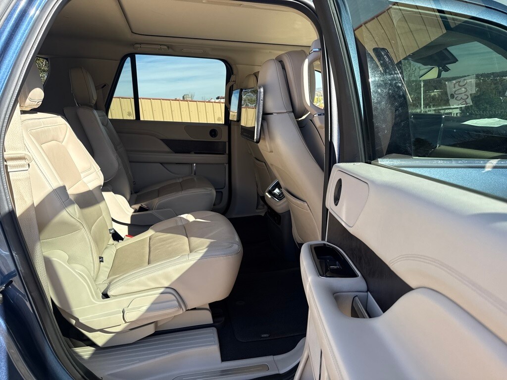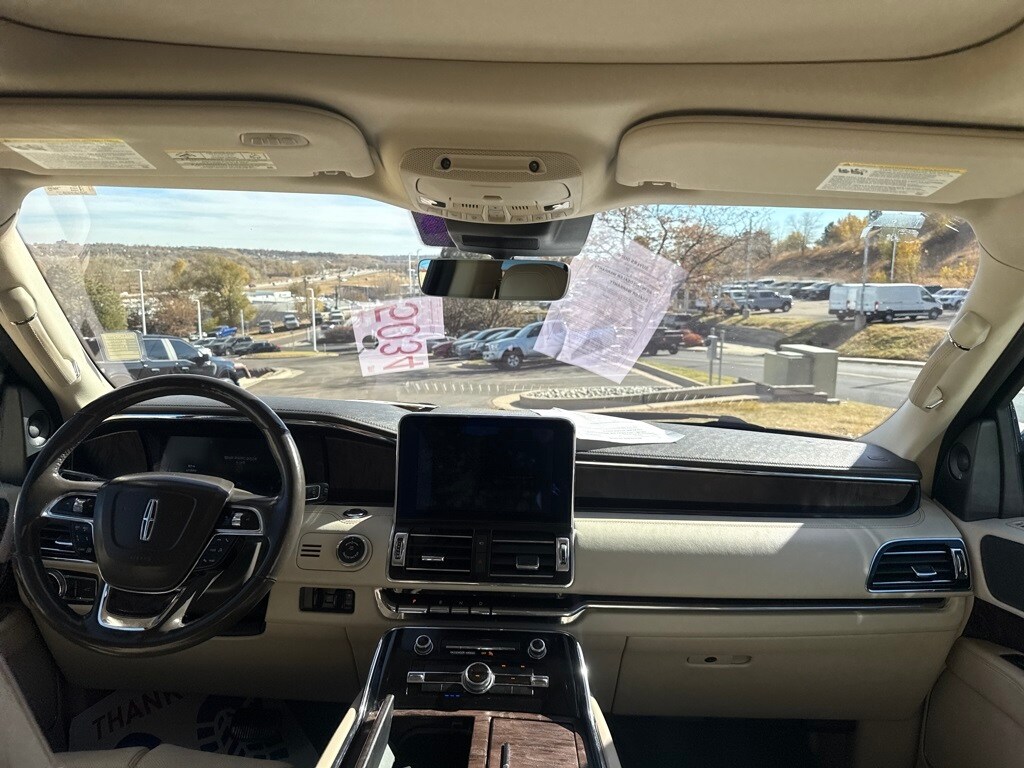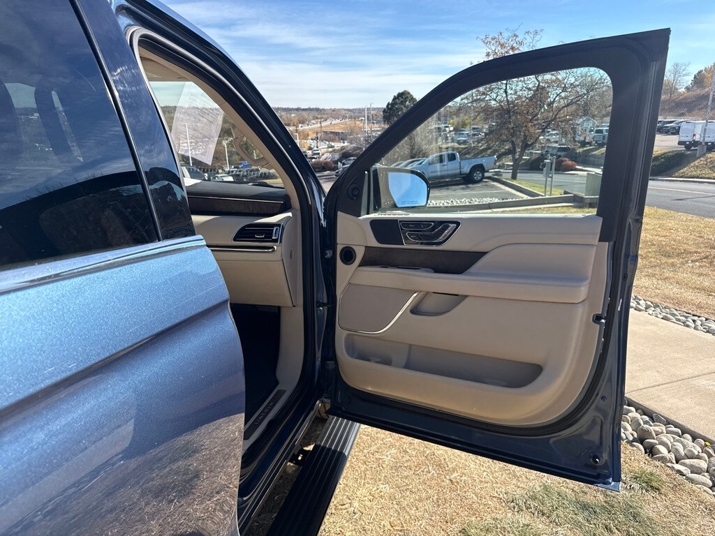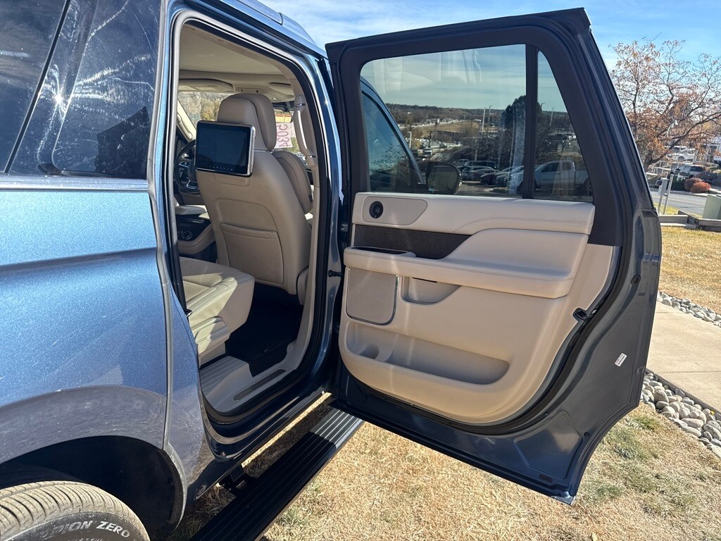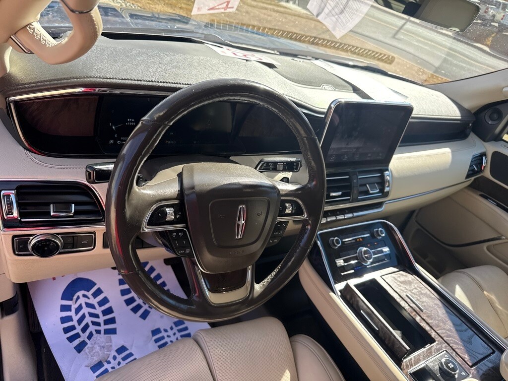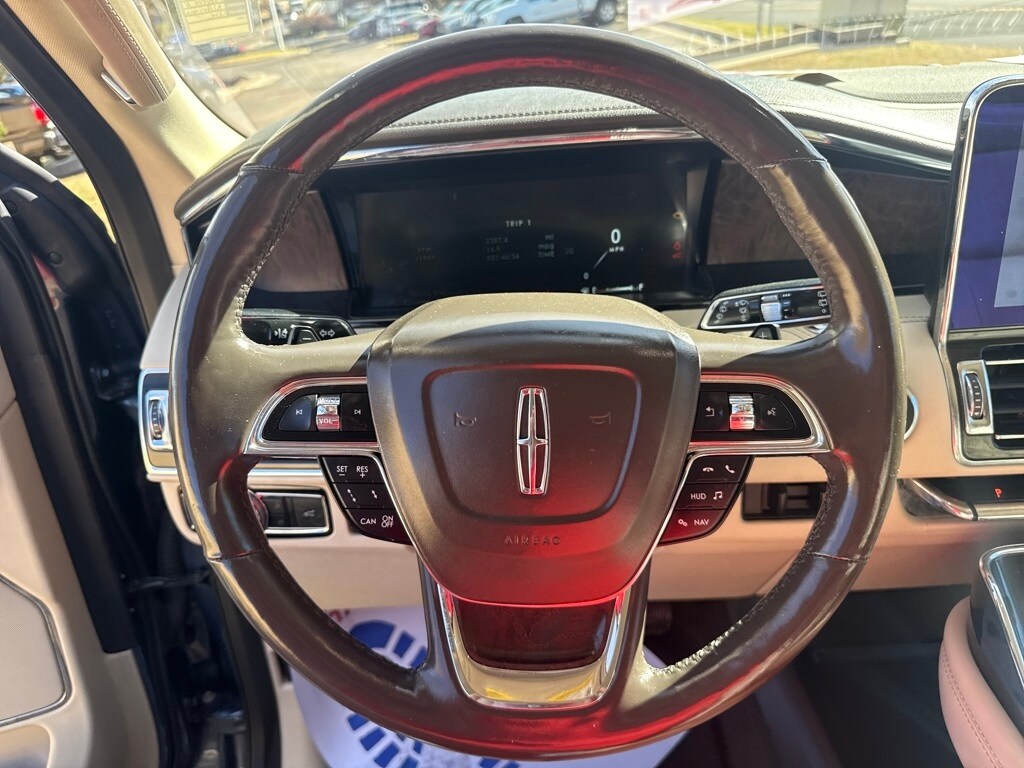 Cargo Package (Bright Roof Rack w/Crossbars), Equipment Group 300A Reserve, GVWR: 7,800 lbs Payload Package, Heavy-Duty Trailer Tow Package (Electronic Traction Assist (eLSD), Heavy-Duty Radiator, Pro Trailer Backup Assist, and Trailer Brake Controller (TBC)), Technology Package (Adaptive Cruise Control, Auto High Beam, Auto Park Active Park Assist, Head-Up Display, Lane Keeping System, and Pre-Collision Assist w/Pedestrian Detection), 14 Speakers, 1st & 2nd Row All-Weather Floor Liners, 2nd Row Heated Dual Captain Chair Seat, 3.73 Axle Ratio, 30-Way Perfect Position Seating w/Active Motion, 3rd row seats: split-bench, 4-Wheel Disc Brakes, ABS brakes, Adaptive suspension, Adjustable pedals, Air Conditioning, Alloy wheels, AM/FM radio: SiriusXM, AppLink/Apple CarPlay and Android Auto, Audio memory, Auto tilt-away steering wheel, Auto-dimming door mirrors, Auto-dimming Rear-View mirror, Auto-leveling suspension, Automatic temperature control, Bodyside moldings, Brake assist, Bumpers: body-color, Compass, Delay-off headlights, Driver door bin, Driver vanity mirror, Driver's Seat Mounted Armrest, Dual front impact airbags, Dual front side impact airbags, Electronic Stability Control, Emergency communication system: 911 Assist, Exterior Parking Camera Rear, Four wheel independent suspension, Front anti-roll bar, Front Bucket Seats, Front dual zone A/C, Front fog lights, Front reading lights, Fully automatic headlights, Garage door transmitter: HomeLink, Genuine wood dashboard insert, Genuine wood door panel insert, Heated door mirrors, Heated front seats, Heated rear seats, Heated steering wheel, HVAC memory, Illuminated entry, Leather steering wheel, Lincoln Play, Low tire pressure warning, Memory seat, Navigation System, Occupant sensing airbag, Outside temperature display, Overhead airbag, Overhead console, Panic alarm, Passenger door bin, Passenger seat mounted armrest, Passenger vanity mirror, Pedal memory, Power door mirrors, Power driver seat, Power Liftgate, Power moonroof: Panoramic Vista Roof, Power passenger seat, Power steering, Power windows, Premium Lthr Htd/Ventilated Low-Back Bucket Seats, Radio data system, Radio: Revel AM/FM/HD/MP3 Audio System, Rain sensing wipers, Rear air conditioning, Rear anti-roll bar, Rear audio controls, Rear reading lights, Rear window defroster, Rear window wiper, Reclining 3rd row seat, Remote keyless entry, Roof rack: rails only, Security system, SiriusXM Radio, Speed control, Speed-sensing steering, Speed-Sensitive Wipers, Split folding rear seat, Spoiler, Steering wheel memory, Steering wheel mounted audio controls, SYNC 3 Communications & Entertainment System, Tachometer, Telescoping steering wheel, Tilt steering wheel, Traction control, Trip computer, Turn signal indicator mirrors, Variably intermittent wipers, Ventilated front seats, Wheels: 22" 16-Spoke Ultra-Bright Machined Alum., And Wheels: 22" 6-Spoke Ultra-Bright Machined-Aluminum.