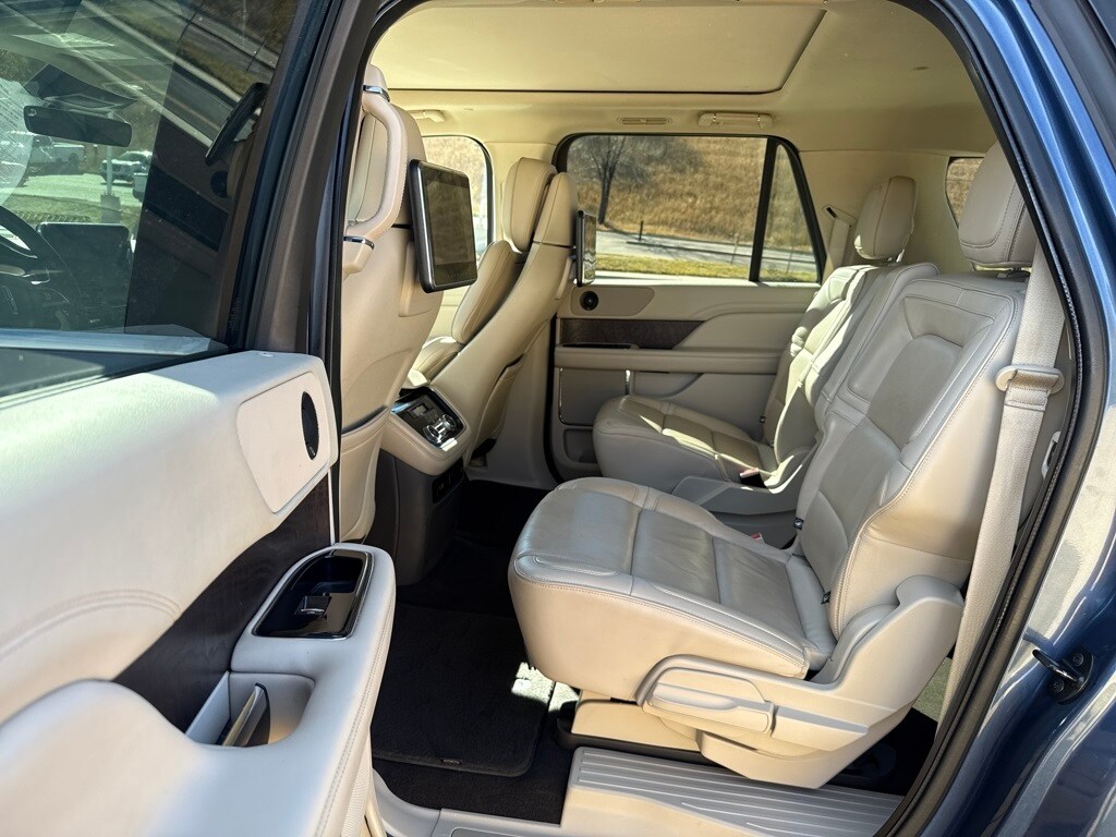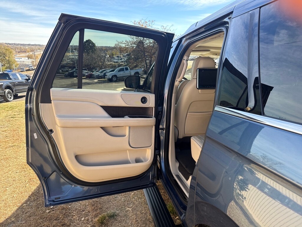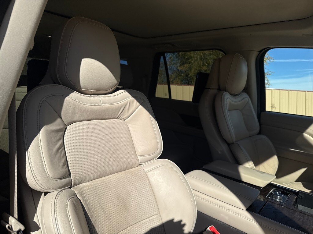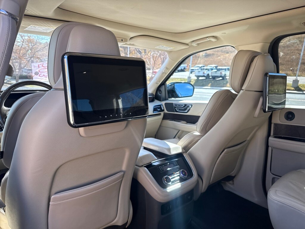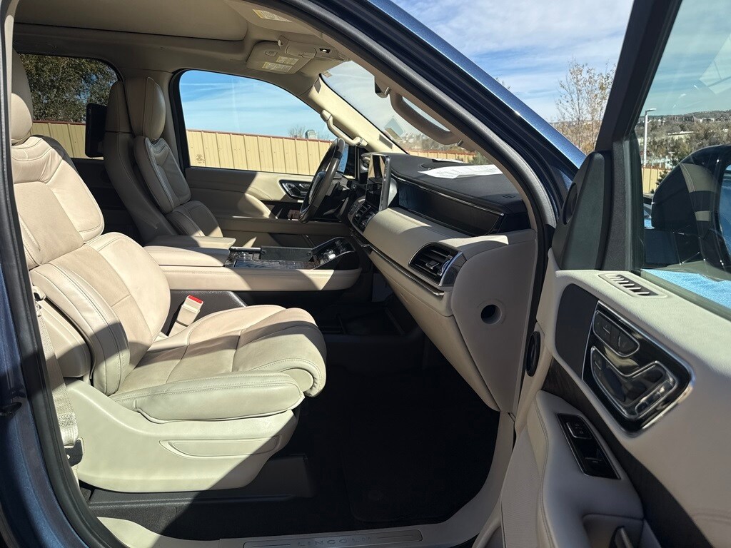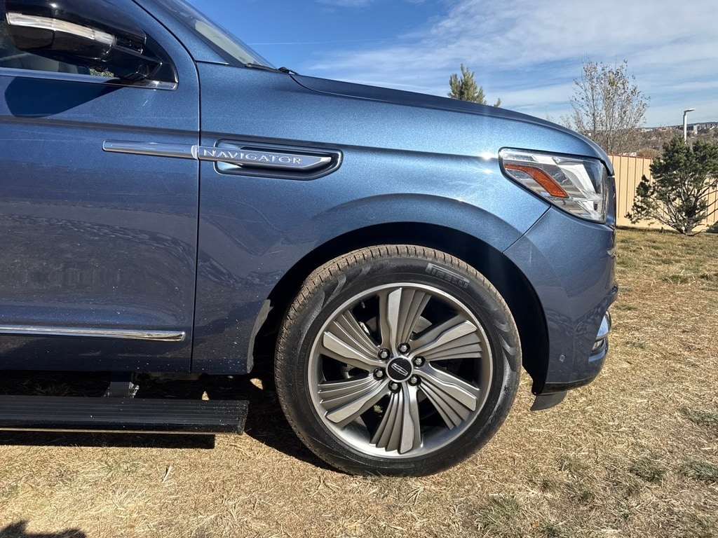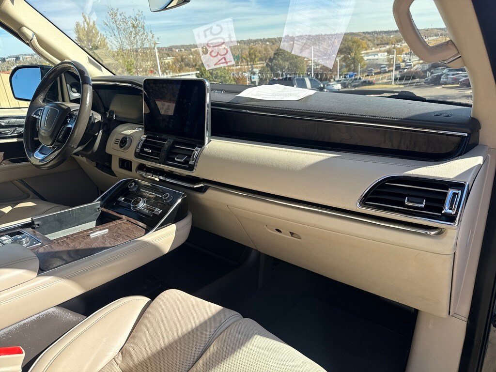 Cargo Package (Bright Roof Rack w/Crossbars), Equipment Group 300A Reserve, GVWR: 7,800 lbs Payload Package, Heavy-Duty Trailer Tow Package (Electronic Traction Assist (eLSD), Heavy-Duty Radiator, Pro Trailer Backup Assist, and Trailer Brake Controller (TBC)), Technology Package (Adaptive Cruise Control, Auto High Beam, Auto Park Active Park Assist, Head-Up Display, Lane Keeping System, and Pre-Collision Assist w/Pedestrian Detection), 14 Speakers, 1st & 2nd Row All-Weather Floor Liners, 2nd Row Heated Dual Captain Chair Seat, 3.73 Axle Ratio, 30-Way Perfect Position Seating w/Active Motion, 3rd row seats: split-bench, 4-Wheel Disc Brakes, ABS brakes, Adaptive suspension, Adjustable pedals, Air Conditioning, Alloy wheels, AM/FM radio: SiriusXM, AppLink/Apple CarPlay and Android Auto, Audio memory, Auto tilt-away steering wheel, Auto-dimming door mirrors, Auto-dimming Rear-View mirror, Auto-leveling suspension, Automatic temperature control, Bodyside moldings, Brake assist, Bumpers: body-color, Compass, Delay-off headlights, Driver door bin, Driver vanity mirror, Driver's Seat Mounted Armrest, Dual front impact airbags, Dual front side impact airbags, Electronic Stability Control, Emergency communication system: 911 Assist, Exterior Parking Camera Rear, Four wheel independent suspension, Front anti-roll bar, Front Bucket Seats, Front dual zone A/C, Front fog lights, Front reading lights, Fully automatic headlights, Garage door transmitter: HomeLink, Genuine wood dashboard insert, Genuine wood door panel insert, Heated door mirrors, Heated front seats, Heated rear seats, Heated steering wheel, HVAC memory, Illuminated entry, Leather steering wheel, Lincoln Play, Low tire pressure warning, Memory seat, Navigation System, Occupant sensing airbag, Outside temperature display, Overhead airbag, Overhead console, Panic alarm, Passenger door bin, Passenger seat mounted armrest, Passenger vanity mirror, Pedal memory, Power door mirrors, Power driver seat, Power Liftgate, Power moonroof: Panoramic Vista Roof, Power passenger seat, Power steering, Power windows, Premium Lthr Htd/Ventilated Low-Back Bucket Seats, Radio data system, Radio: Revel AM/FM/HD/MP3 Audio System, Rain sensing wipers, Rear air conditioning, Rear anti-roll bar, Rear audio controls, Rear reading lights, Rear window defroster, Rear window wiper, Reclining 3rd row seat, Remote keyless entry, Roof rack: rails only, Security system, SiriusXM Radio, Speed control, Speed-sensing steering, Speed-Sensitive Wipers, Split folding rear seat, Spoiler, Steering wheel memory, Steering wheel mounted audio controls, SYNC 3 Communications & Entertainment System, Tachometer, Telescoping steering wheel, Tilt steering wheel, Traction control, Trip computer, Turn signal indicator mirrors, Variably intermittent wipers, Ventilated front seats, Wheels: 22" 16-Spoke Ultra-Bright Machined Alum., And Wheels: 22" 6-Spoke Ultra-Bright Machined-Aluminum.