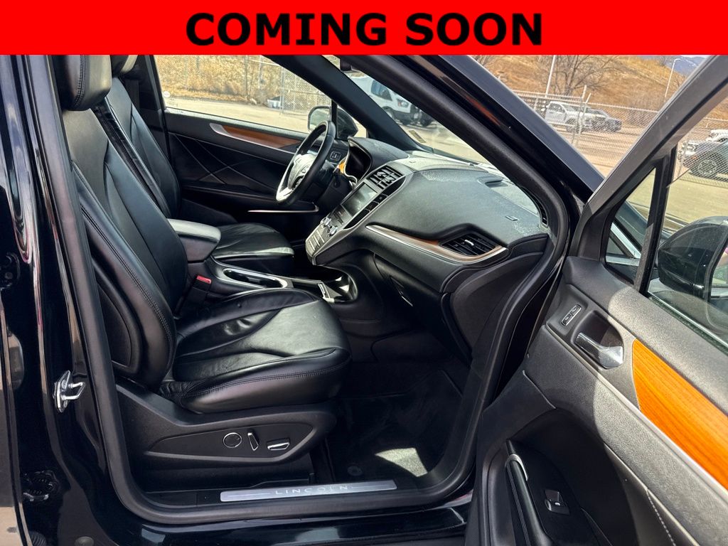 Equipment Group 300A, Lincoln MKC Climate Package (Auto High Beams, Heated Rear Seats, Heated Steering Wheel, Rain Sensing Wipers, and Windshield Wiper De-Icer), 10 Speakers, 3.51 Axle Ratio, 4-Wheel Disc Brakes, ABS brakes, Adaptive suspension, Air Conditioning, Alloy wheels, AM/FM radio: SiriusXM, AppLink/Apple CarPlay and Android Auto, Auto tilt-away steering wheel, Auto-dimming Rear-View mirror, Automatic temperature control, Brake assist, Bumpers: body-color, CD player, Compass, Delay-off headlights, Driver door bin, Driver vanity mirror, Dual front impact airbags, Dual front side impact airbags, Electronic Stability Control, Emergency communication system: SYNC 3 911 Assist, Enhanced THX II Certified Audio System, Exterior Parking Camera Rear, Four wheel independent suspension, Front anti-roll bar, Front Bucket Seats, Front Center Armrest, Front dual zone A/C, Front fog lights, Front reading lights, Fully automatic headlights, Garage door transmitter, Genuine wood dashboard insert, Genuine wood door panel insert, HD Radio, Heated door mirrors, Heated front seats, Illuminated entry, Knee airbag, Low tire pressure warning, Memory seat, Navigation System, Occupant sensing airbag, Outside temperature display, Overhead airbag, Overhead console, Panic alarm, Passenger door bin, Passenger vanity mirror, Power door mirrors, Power driver seat, Power Liftgate, Power moonroof: Vista Roof, Power passenger seat, Power steering, Power windows, Prem Heated & Cooled Leather-Trimmed Bucket Seats, Radio data system, Radio: Audio System w/Single CD/MP3/Navigation, Rear anti-roll bar, Rear reading lights, Rear seat center armrest, Rear window defroster, Rear window wiper, Remote keyless entry, Roof rack: rails only, Security system, SiriusXM Radio, Speed control, Speed-sensing steering, Speed-Sensitive Wipers, Split folding rear seat, Spoiler, Steering wheel memory, Steering wheel mounted audio controls, SYNC 3 Communications & Entertainment System, Tachometer, Telescoping steering wheel, Tilt steering wheel, Traction control, Trip computer, Turn signal indicator mirrors, Variably intermittent wipers, Ventilated front seats, Wheels: 18" Machined w/Dark Prem Painted Pockets, and Wheels: 19" Premium Painted 5-Spoke Aluminum.