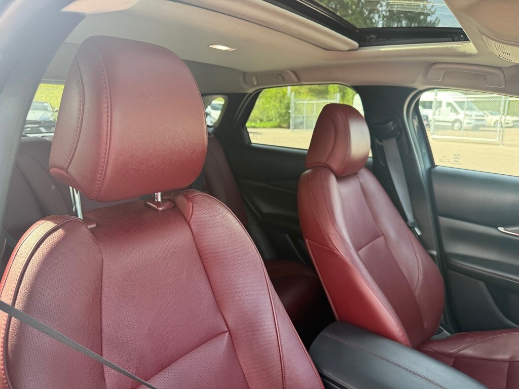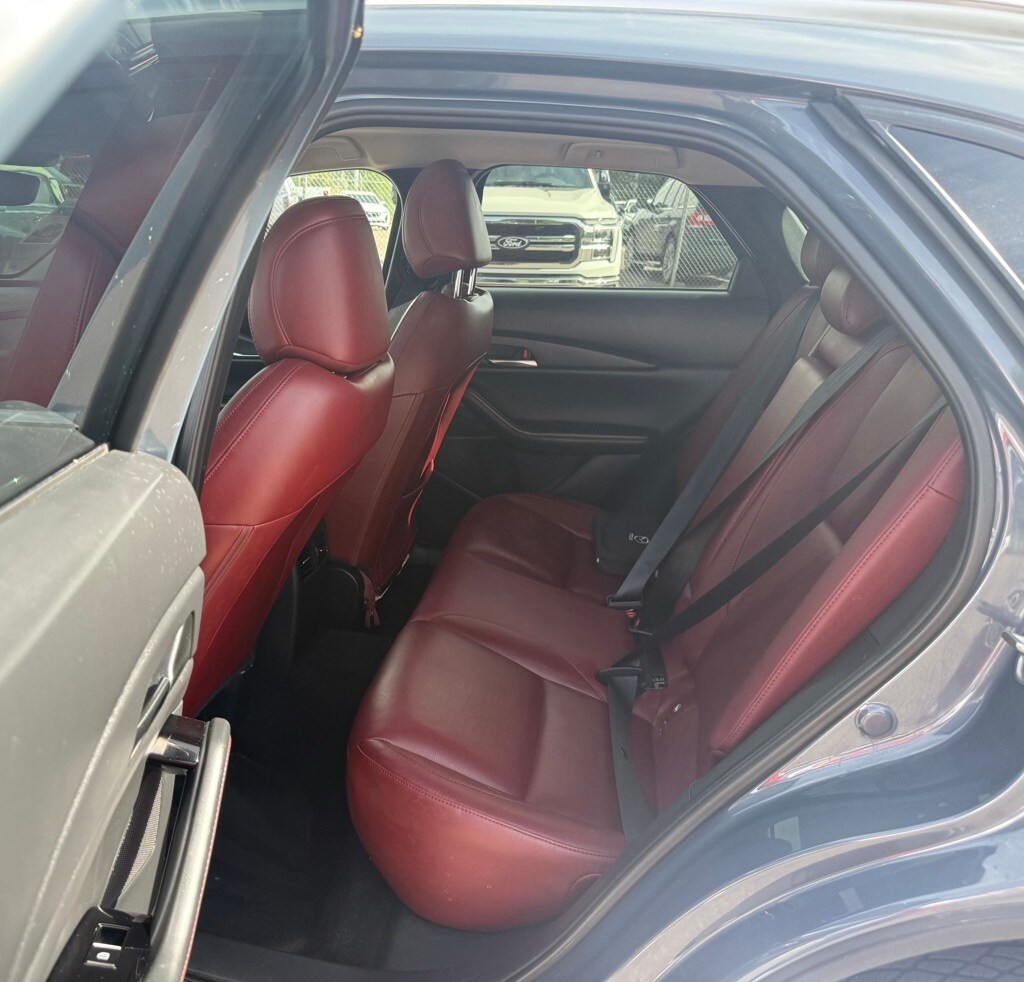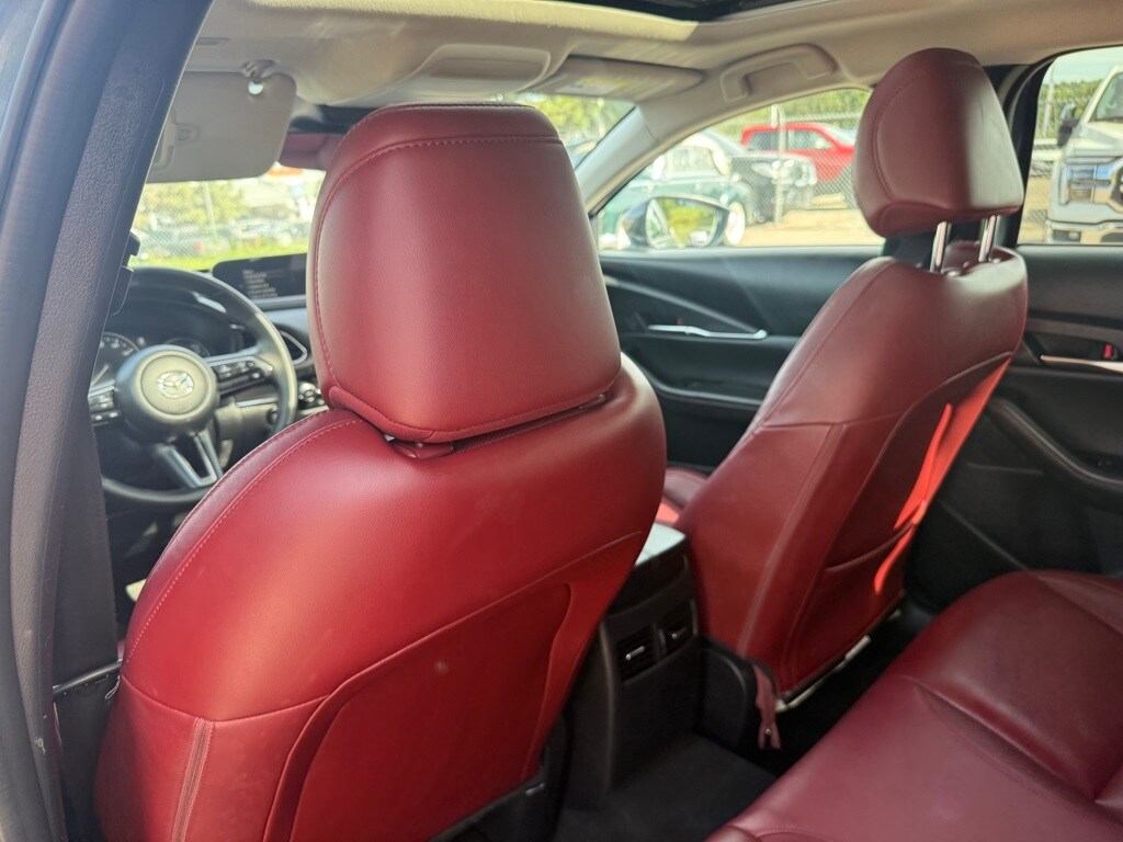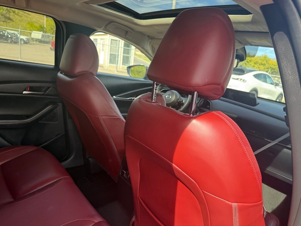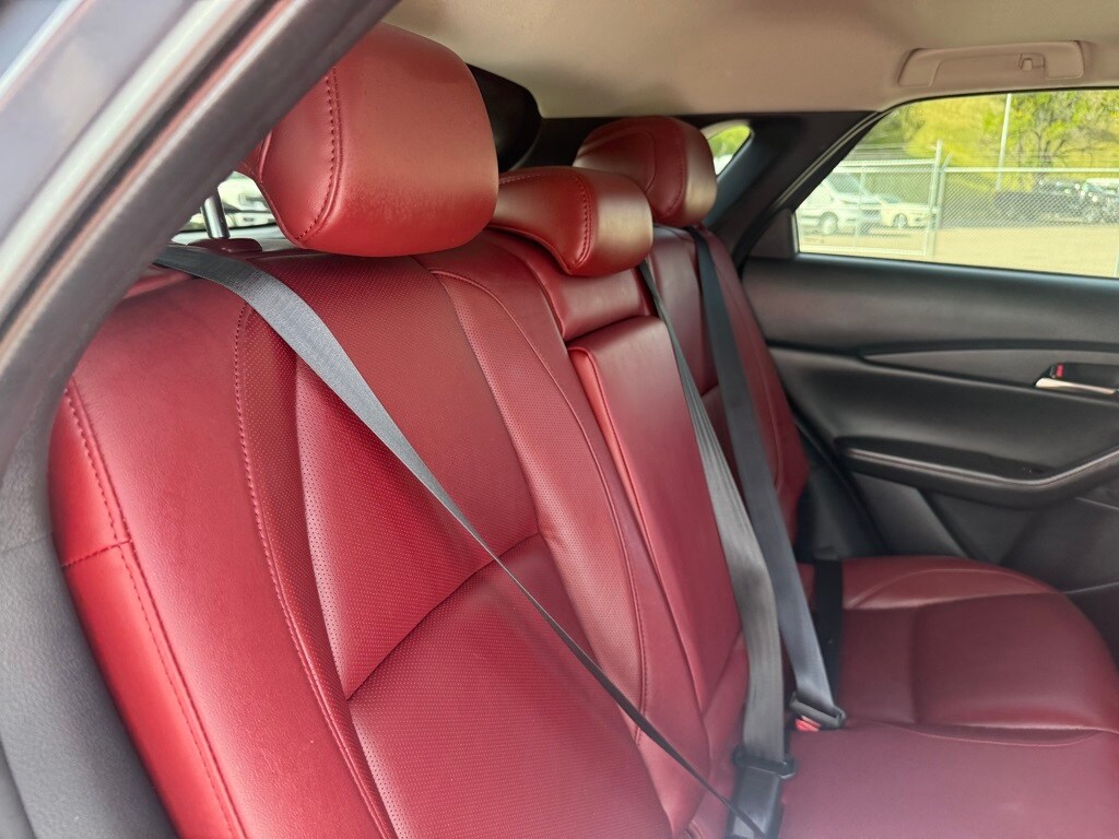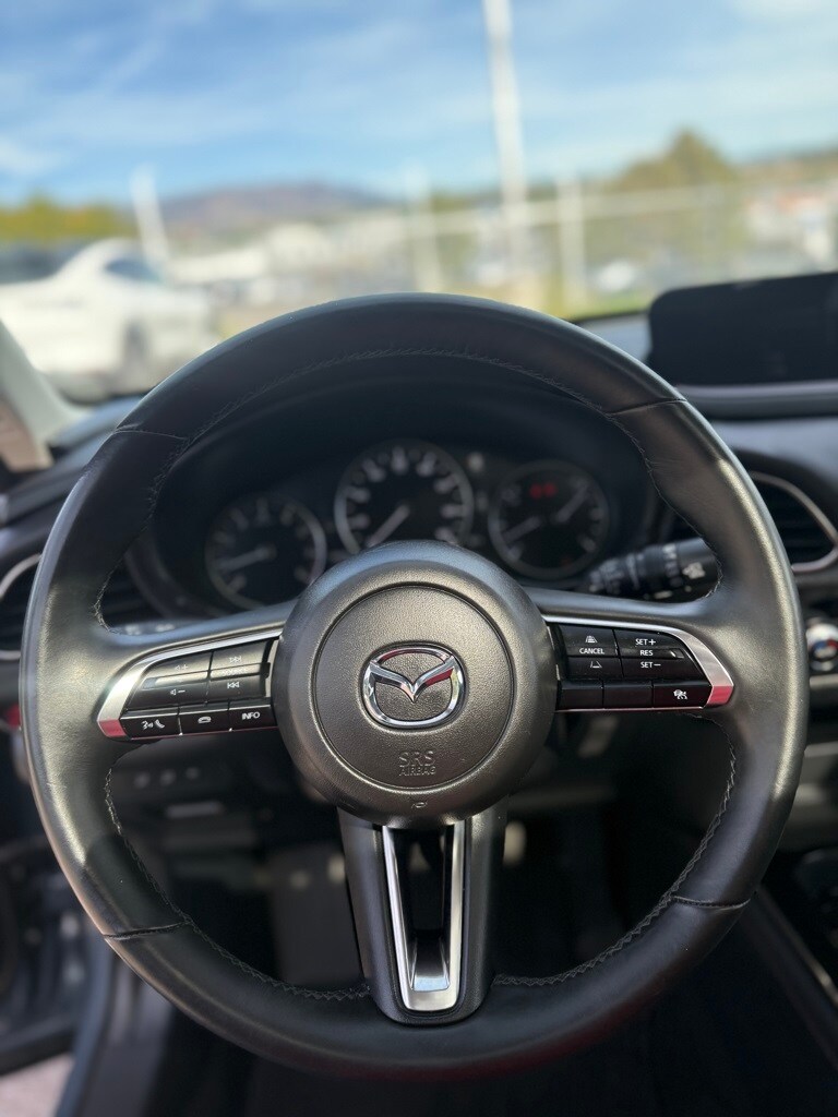4-Wheel Disc Brakes, 4.095 Axle Ratio, 8 Speakers, ABS brakes, Air Conditioning, Alloy wheels, AM/FM radio, AppLink/Apple CarPlay and Android Auto, Auto High-beam Headlights, Automatic temperature control, Brake assist, Bumpers: body-color, Compass, Delay-off headlights, Driver door bin, Driver vanity mirror, Dual front impact airbags, Dual front side impact airbags, Electronic Stability Control, Emergency communication system: Mazda Connected Services (3-year complimentary trial included), Exterior Parking Camera Rear, Front anti-roll bar, Front Bucket Seats, Front Center Armrest, Front dual zone A/C, Front reading lights, Front wheel independent suspension, Fully automatic headlights, Heated door mirrors, Heated Front Bucket Seats, Heated front seats, Illuminated entry, Knee airbag, Leather Seat Trim, Leather Shift Knob, Leather steering wheel, Low tire pressure warning, MAZDA CONNECT Infotainment System, Memory seat, Occupant sensing airbag, Outside temperature display, Overhead airbag, Overhead console, Panic alarm, Passenger door bin, Passenger vanity mirror, Power door mirrors, Power driver seat, Power moonroof, Power steering, Power windows, Radio data system, Radio: AM/FM/HD Audio System, Rain sensing wipers, Rear seat center armrest, Rear side impact airbag, Rear window defroster, Rear window wiper, Remote keyless entry, Speed control, Speed-sensing steering, Split folding rear seat, Spoiler, Steering wheel mounted audio controls, Tachometer, Telescoping steering wheel, Tilt steering wheel, Traction control, Trip computer, Turn signal indicator mirrors, Variably intermittent wipers, and Wheels: 18" x 7J Aluminum Alloy.