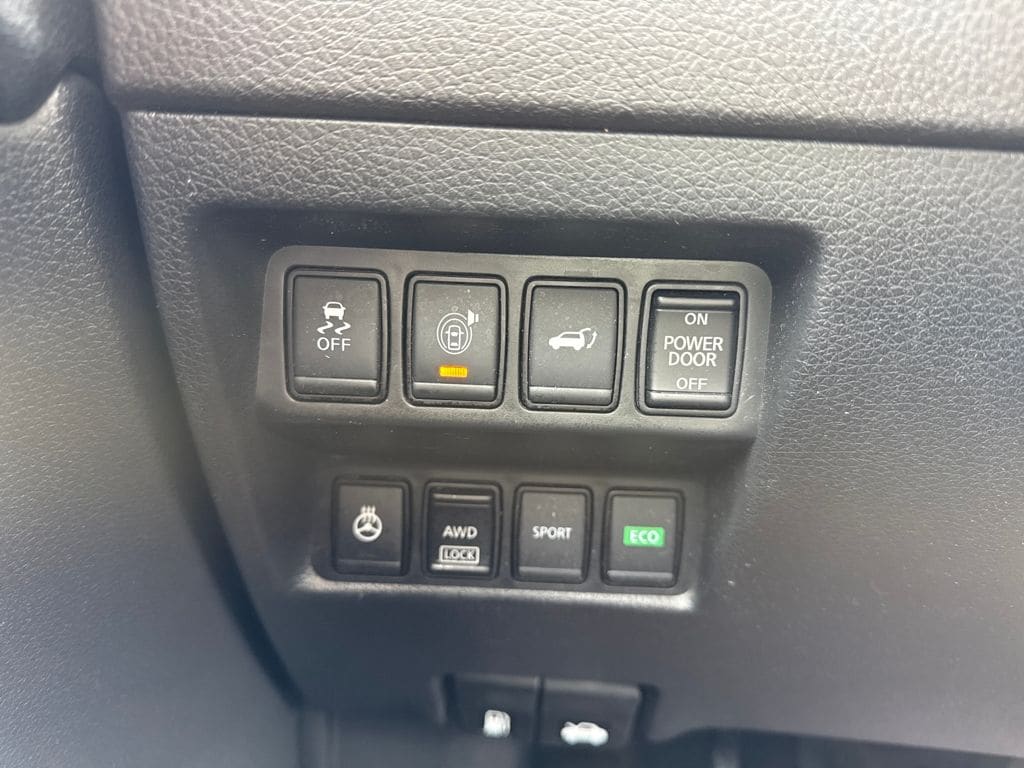 SV Premium Package (Around View Monitor, Motion Activated Liftgate, and Radio: AM/FM/CD/AUX NissanConnect w/Navigation), SV Sun & Sound Touring Package (Power Panoramic Moonroof), AWD, 17" Aluminum Alloy Wheels, 4-Wheel Disc Brakes, 5.694 Axle Ratio, 6 Speakers, ABS brakes, Activation Disclaimer, Air Conditioning, Alloy wheels, AM/FM radio: SiriusXM, Anti-whiplash front head restraints, Automatic temperature control, Black Splash Guards (Set of 4), Blind Spot Warning, Brake assist, Bumpers: body-color, CD player, Chrome Rear Bumper Protector, Cloth Seat Trim, Delay-off headlights, Driver door bin, Driver vanity mirror, Dual front impact airbags, Dual front side impact airbags, Electronic Stability Control, Floor Mats & 2-PC Cargo Area Protector, Four wheel independent suspension, Front anti-roll bar, Front Bucket Seats, Front Center Armrest w/Storage, Front dual zone A/C, Front reading lights, Fully automatic headlights, Heated door mirrors, Heated front seats, Illuminated entry, Leather Shift Knob, Low tire pressure warning, Occupant sensing airbag, Outside temperature display, Overhead airbag, Overhead console, Panic alarm, Passenger door bin, Passenger vanity mirror, Power door mirrors, Power driver seat, Power steering, Power windows, Quick Comfort Heated Front Bucket Seats, Radio data system, Radio: AM/FM/CD/AUX, Rear anti-roll bar, Rear seat center armrest, Rear window defroster, Rear window wiper, Remote keyless entry, Roof rack: rails only, Security system, Speed control, Speed-sensing steering, Split folding rear seat, Spoiler, Steering wheel mounted audio controls, Tachometer, Telescoping steering wheel, Tilt steering wheel, Traction control, Trip computer, Turn signal indicator mirrors, and Variably intermittent wipers.