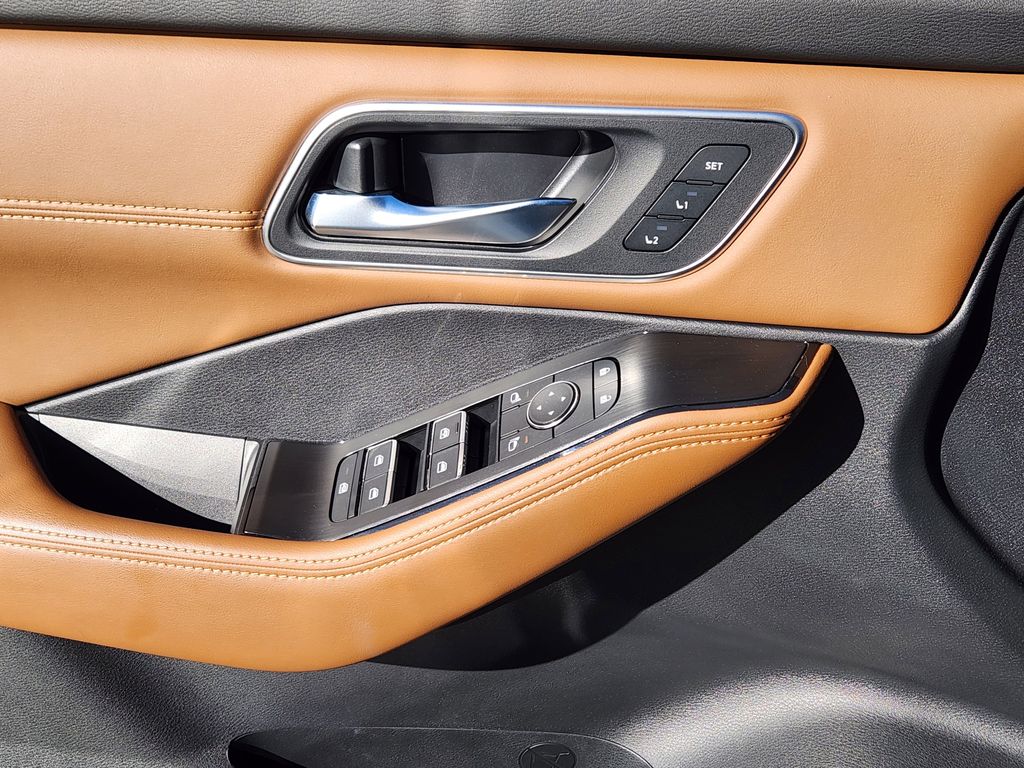 PLATINUM PREMIUM PACKAGE Rear Door Sunshades, Heated Rear Seats, Motion-Activated Power Liftgate, Tri-Zone Automatic Temperature Control, Head-Up Display, ROOF RAIL CROSS BARS. Nissan Platinum with Everest White Pearl exterior and Chestnut interior features a 3 Cylinder Engine with 201 HP at 5600 RPM*.