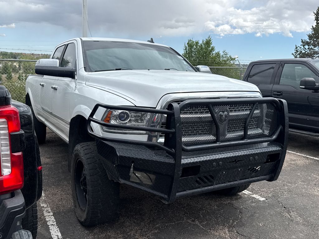 Cold Weather Group (Engine Block Heater and Winter Front Grille Cover), Convenience Group (Auto High Beam Headlamp Control and Rain Sensitive Windshield Wipers), Protection Group, Quick Order Package 2FH Laramie, 1 Year Trial (Registration Required), 1-Year SIRIUSXM Traffic Service, 1-Year SIRIUSXM Travel Link Service, 10 Speakers, 115V Auxiliary Power Outlet, 17" x 8" Aluminum Wheels, 220 Amp Alternator, 4-Wheel Disc Brakes, ABS brakes, Air Conditioning, Alloy wheels, AM/FM radio: SiriusXM, Audio memory, Auto-dimming door mirrors, Auto-dimming Rear-View mirror, Automatic temperature control, Brake assist, Bumpers: chrome, Chrome Bodyside Molding, Chrome Exterior Mirrors, Chrome Power Trailer Tow Mirrors, Compass, Delay-off headlights, Driver door bin, Driver vanity mirror, Dual front impact airbags, Dual front side impact airbags, Electronic Stability Control, Emergency communication system, Exterior Mirrors Courtesy Lamps, Exterior Mirrors w/Heating Element, Exterior Mirrors w/Memory, Exterior Mirrors w/Supplemental Signals, Exterior Parking Camera Rear, Folding Flat Load Floor Storage, Front anti-roll bar, Front Center Armrest w/Storage, Front dual zone A/C, Front fog lights, Front reading lights, Fully automatic headlights, Garage door transmitter, GPS Navigation, HD Radio, Heated door mirrors, Heated Front Seats, Heated front seats, Heated steering wheel, High Back Seats, Illuminated entry, Keyless Enter-N-Go, Leather steering wheel, Leather Trim 40/20/40 Bench Seat, Low tire pressure warning, Memory seat, Occupant sensing airbag, Outside temperature display, Overhead airbag, Overhead console, Panic alarm, ParkSense Rear Park Assist System, Passenger door bin, Passenger vanity mirror, Power 10-Way Memory Driver & 6-Way Passenger Seats, Power door mirrors, Power driver seat, Power Lumbar Adjust, Power passenger seat, Power steering, Power windows, Radio data system, Radio: Uconnect 8.4A AM/FM/BT/Access, Radio: Uconnect 8.4AN AM/FM/BT/Access/NAV, Rear 60/40 Split Folding Seat, Rear seat center armrest, Rear step bumper, Rear Window Defroster, Remote keyless entry, Remote Proximity Keyless Entry, Remote Start System, Security system, Single Disc Remote CD Player, SIRIUSXM Traffic, SiriusXM Travel Link, Speed control, Split folding rear seat, Spray In Bedliner, Steering wheel mounted audio controls, Tachometer, Tilt steering wheel, Traction control, Trip computer, Turn signal indicator mirrors, Variably intermittent wipers, Ventilated Front Seats, Ventilated front seats, and Voltmeter.