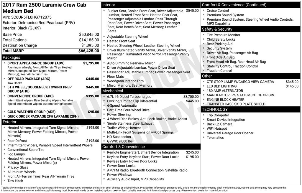 In summary, the 2017 Ram 2500 Laramie Crew Cab 4x4 64 Box is a versatile truck that excels in power, comfort, and safety. With its array of packages and features, it caters to a wide range of preferences, making it a top choice for those seeking a reliable and luxurious driving experience.