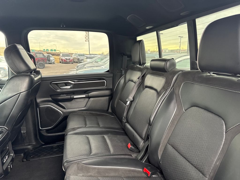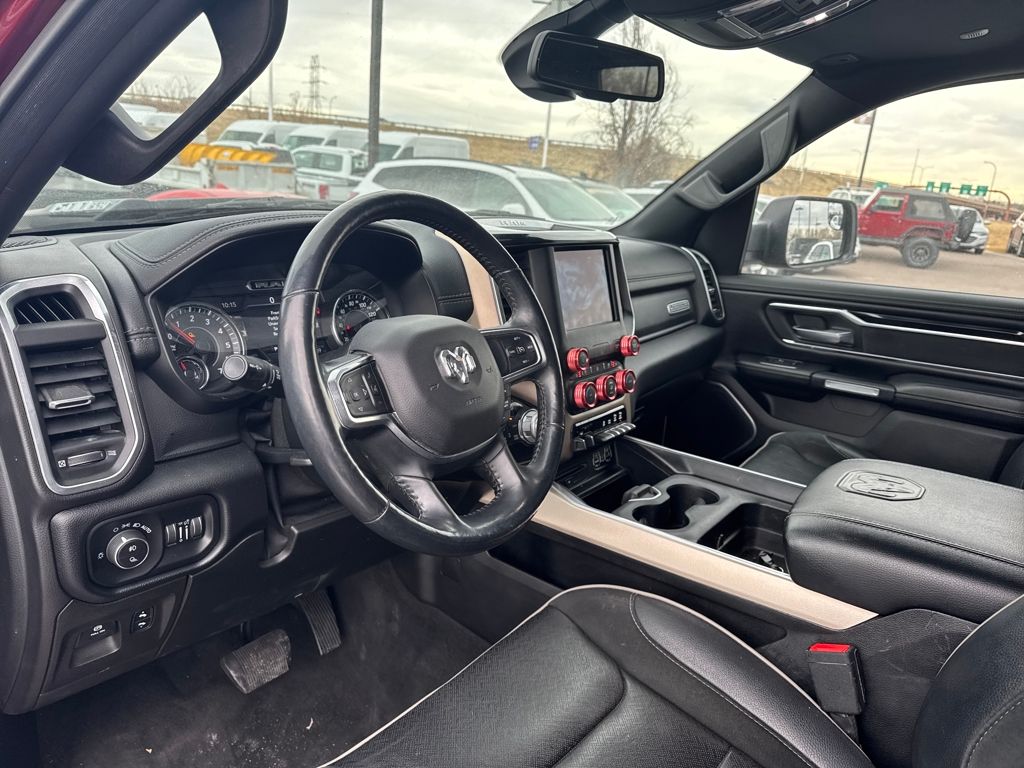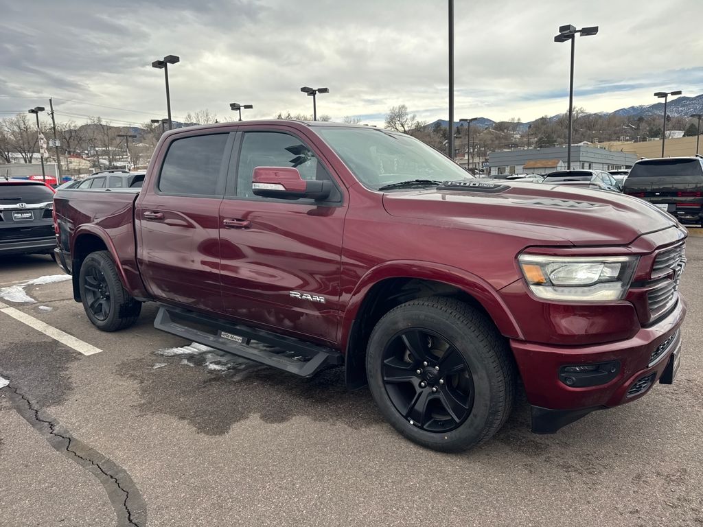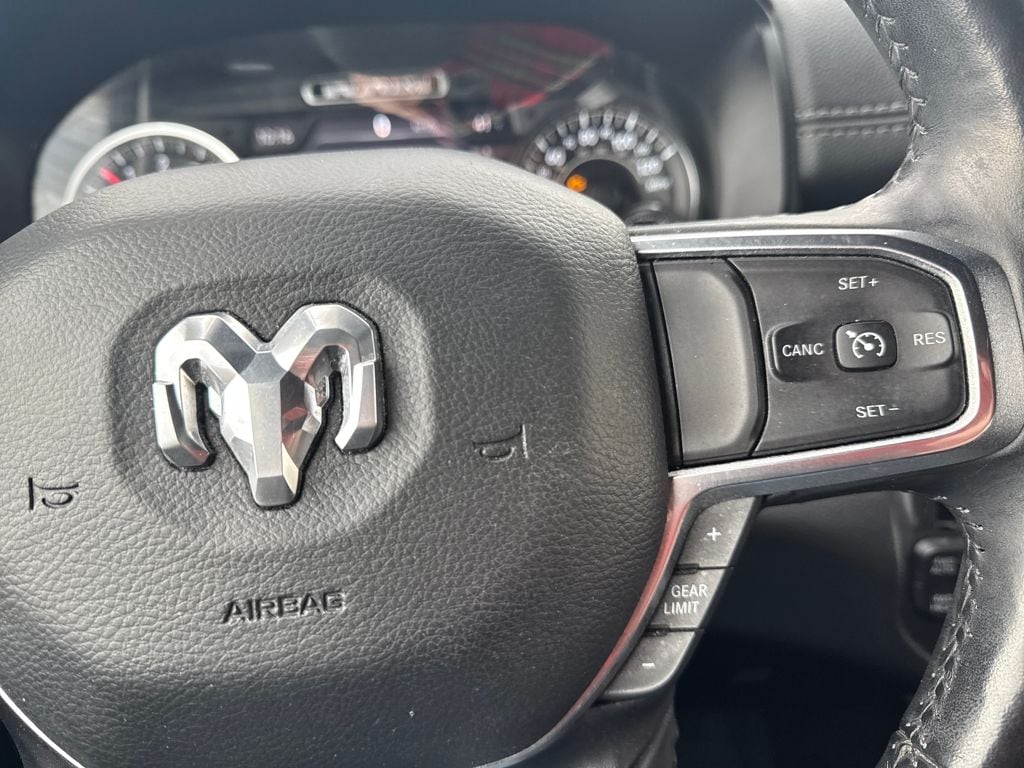 Laramie Level 1 Equipment Group (Single Disc Remote CD Player), Quick Order Package 25H Laramie, Sport Appearance Package (#1 Seat Foam Cushion, 3 Rear Seat Head Restraints, 4 Way Front Headrests, Driver Seat Memory, Front Seat Back Map Pockets, Heated Front Seats, Heated Steering Wheel, Leather Trimmed Bucket Seats, Power 4-Way Driver Lumbar Adjust, Power 4-Way Passenger Lumbar Adjust, Power 8-Way Driver & Passenger Seats, Ventilated Front Seats, and Wheels: 20" x 9" Premium Painted w/Inserts), 10 Speakers, 3.21 Rear Axle Ratio, 4-Wheel Disc Brakes, 48V Belt Starter Generator, 8.4" Touchscreen Display, ABS brakes, Adjustable pedals, Air Conditioning, Alloy wheels, AM/FM radio: SiriusXM, Anti-Spin Differential Rear Axle, Apple CarPlay, Apple CarPlay/Android Auto, Audio memory, Auto-dimming door mirrors, Auto-dimming Rear-View mirror, Automatic temperature control, Brake assist, Bumpers: chrome, Compass, Delay-off headlights, Driver door bin, Driver vanity mirror, Dual front impact airbags, Dual front side impact airbags, Electronic Stability Control, Front anti-roll bar, Front Center Armrest w/Storage, Front dual zone A/C, Front fog lights, Front reading lights, Front wheel independent suspension, Fully automatic headlights, Garage door transmitter, Google Android Auto, GPS Antenna Input, Heated door mirrors, Heated front seats, Heated steering wheel, Illuminated entry, Integrated Center Stack Radio, Leather steering wheel, Leather Trim 40/20/40 Bench Seat, Low tire pressure warning, Memory seat, Occupant sensing airbag, Outside temperature display, Overhead airbag, Overhead console, Panic alarm, ParkView Rear Back-Up Camera, Passenger door bin, Passenger vanity mirror, Pedal memory, Power door mirrors, Power driver seat, Power passenger seat, Power steering, Power windows, Radio data system, Radio: Uconnect 4 w/8.4" Display, Rear anti-roll bar, Rear seat center armrest, Rear step bumper, Rear Underseat Compartment Storage, Rear window defroster, Remote keyless entry, Security system, SiriusXM Satellite Radio, Speed control, Split folding rear seat, Steering wheel mounted audio controls, Tachometer, Telescoping steering wheel, Tilt steering wheel, Traction control, Trailer Brake Control, Trip computer, Turn signal indicator mirrors, Variably intermittent wipers, Ventilated front seats, Voltmeter, and Wheels: 18" x 8" Aluminum Base Painted.