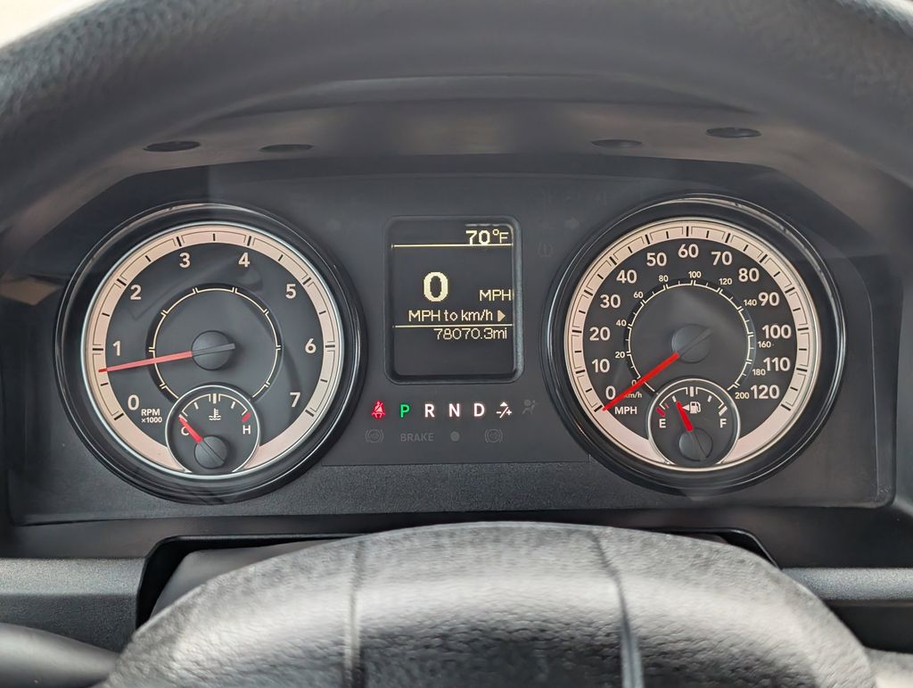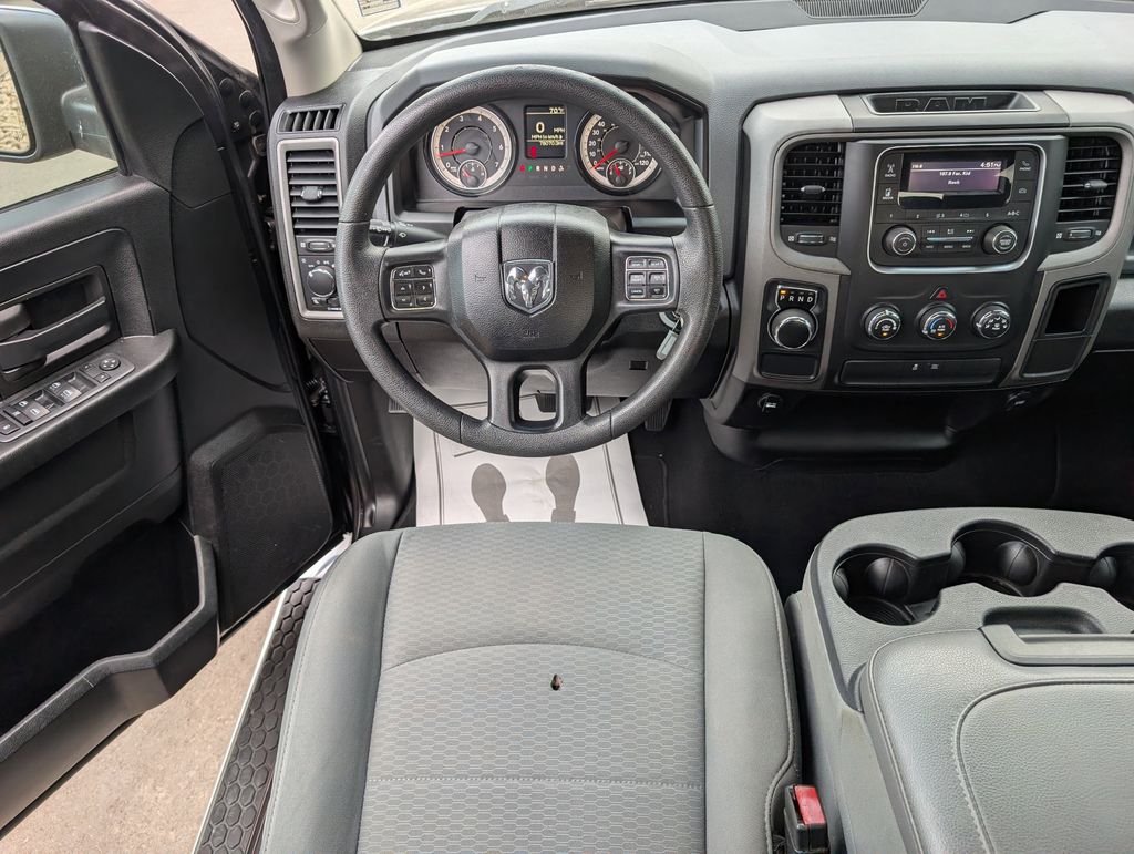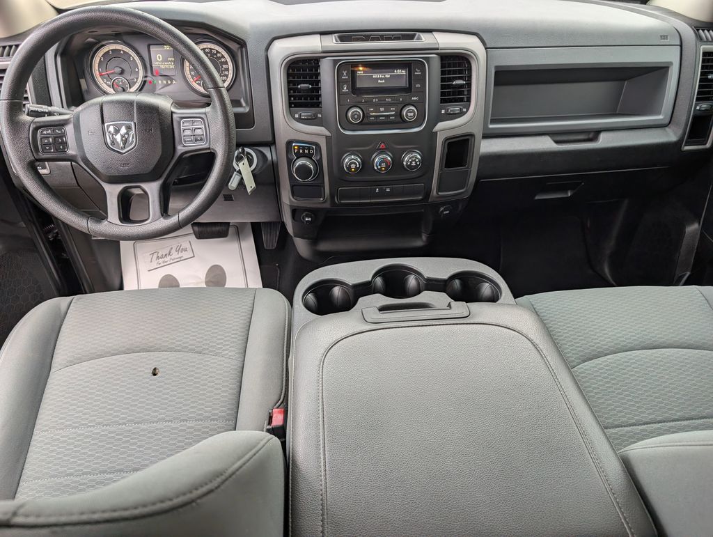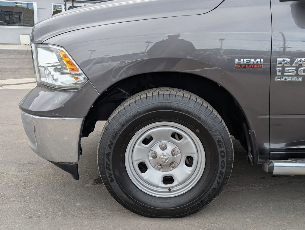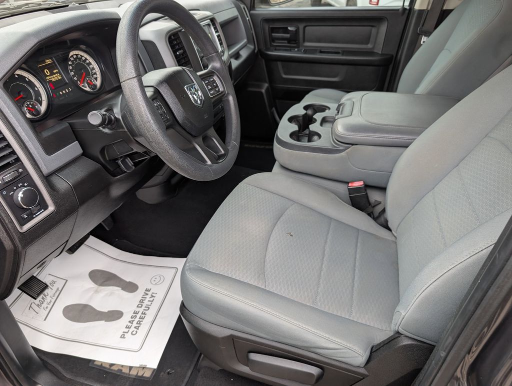 ENGINE: 5.7L V8 HEMI MDS VVT Electronically Controlled Throttle, Heavy Duty Engine Cooling, Next Generation Engine Controller, Engine Oil Heat Exchanger, Hemi Badge, Heavy Duty Transmission Oil Cooler, CHROME PLUS PACKAGE Bright Rear Bumper, Delete Under Rail Box Bedliner, Radio: Uconnect 3.0, Integrated Voice Command w/Bluetooth®, Wheels: 17 x 7 Aluminum, Rear Floor Mats, Front Floor Mats, Bright Grille, Carpet Floor Covering, Remote Keyless Entry w/All-Secure, Bright Front Bumper, TRANSMISSION: 8-SPEED AUTOMATIC (8HP70), DIESEL GRAY/BLACK, CLOTH 40/20/40 BENCH SEAT. Ram Tradesman with Granite Crystal Metallic Clearcoat exterior and Diesel Gray/Black interior features a 8 Cylinder Engine with 305 HP at 6400 RPM*.