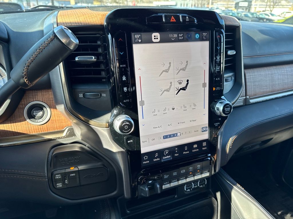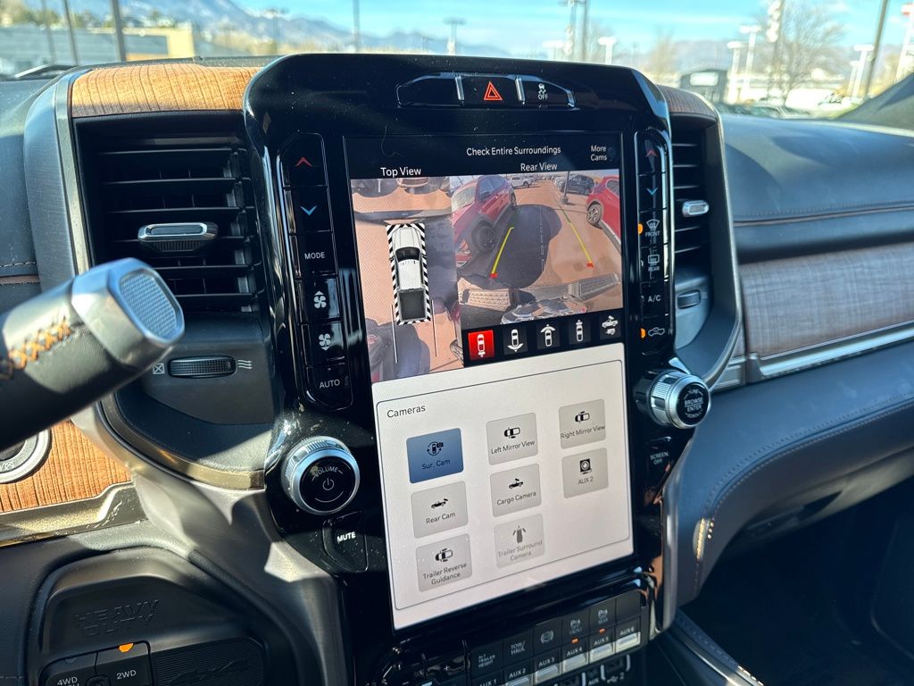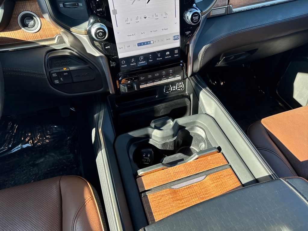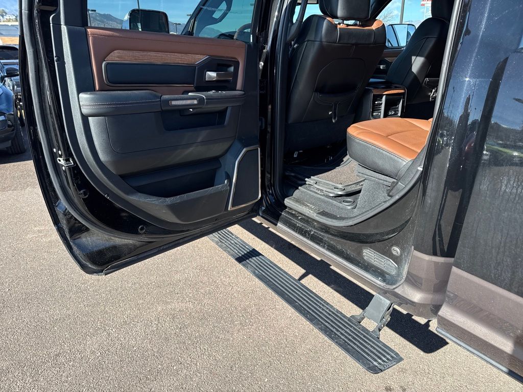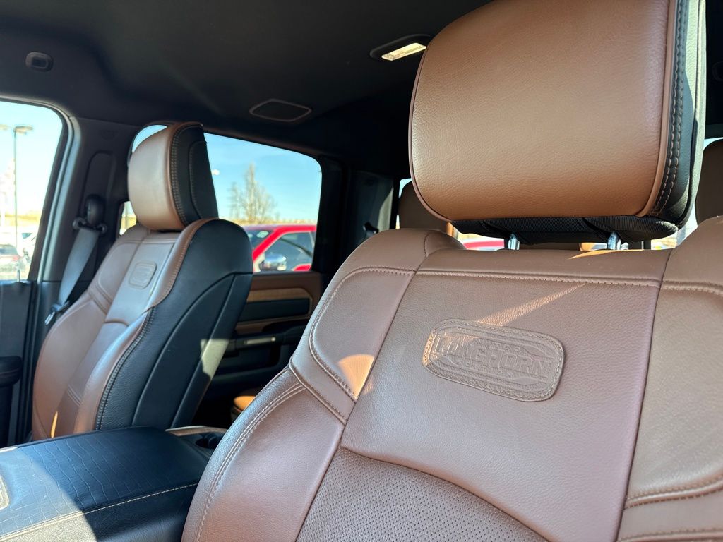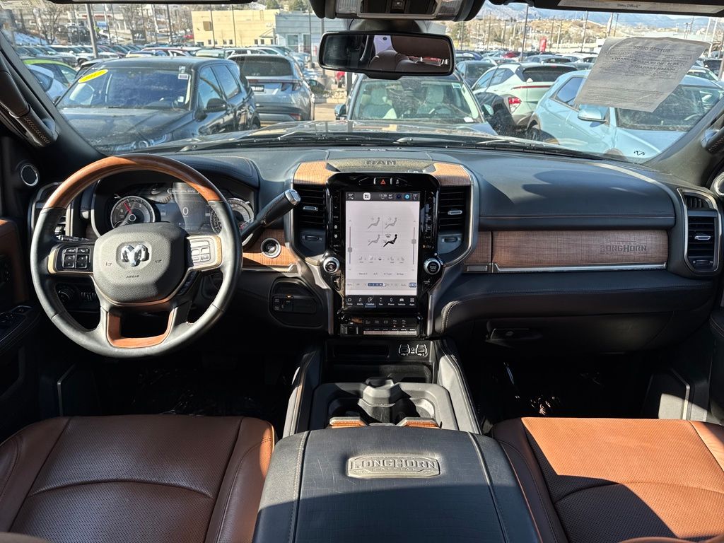 Longhorn Level 1 Equipment Group (12" Touchscreen Display, 17 Speaker harman kardon Premium Sound, 4G LTE Wi-Fi Hot Spot, Alexa Built-In, All R1 High Radios, All Radio Equipped Vehicles, Apple CarPlay, Connected Travel & Traffic Services, Connectivity - US/Canada, Disassociated Touchscreen Display, For Details, Visit DriveUconnect.com, For More Info, Call 800-643-2112, Global Telematics Box Module (TBM), Google Android Auto, GPS Antenna Input, GPS Navigation, HD Radio, Integrated Voice Command w/Bluetooth, Off-Road Information Pages, Power Deployable Running Boards, Radio: Uconnect 5 Nav w/12.0" Display, Ramcharger Wireless Charging Pad, Selectable Tire Fill Alert, SiriusXM Radio Service, and SiriusXM w/360L), Protection Group, Quick Order Package 2HK Longhorn, Towing Technology Group (CTR Stop Lamp w/Cargo View Camera, Surround View Camera System, and Trailer Reverse Guidance), 10 Speakers, 115V Auxiliary Rear Power Outlet, 2 Way Rear Headrest Seat, 220 Amp Alternator, 3.73 Axle Ratio, 4 Way Front Headrests, 4-Wheel Disc Brakes, 5th Wheel/Gooseneck Towing Prep Group, 8.4" Touchscreen Display, ABS brakes, Active Noise Control System, Adaptive Steering System, Adjustable pedals, Air Conditioning, Air Suspension Decal, Alloy wheels, AM/FM radio: SiriusXM with 360L, Apple CarPlay/Android Auto, Audio memory, Auto High-beam Headlights, Auto Level Rear Air Suspension, Auto-dimming Rear-View mirror, Automatic temperature control, Blind Spot & Cross Path Detection (DISC), Brake assist, Bucket Seats, Bumpers: chrome, Center Hub, Chrome Tow Hooks, Clearance Lamps, Compass, Dash Pass Thru Wire Circuits, Delay-off headlights, Driver door bin, Driver vanity mirror, Dual front impact airbags, Dual front side impact airbags, Electronic Stability Control, Electronically Controlled Throttle, Folding Flat Load Floor Storage, Front anti-roll bar, Front Bucket Seats, Front Center Armrest w/Storage, Front dual zone A/C, Front fog lights, Front License Plate Bracket, Front reading lights, Front Seat Back Map Pockets, Full Length Premium Upgraded Floor Console, Fully automatic headlights, Garage door transmitter, Genuine wood console insert, Genuine wood dashboard insert, Genuine wood door panel insert, Heated door mirrors, Heated Front Seats, Heated front seats, Heated rear seats, Heated Second Row Seats, Heated Steering Wheel, Heated steering wheel, High Back Seats, I/P Mounted Auxiliary Switches, Illuminated entry, Integrated Center Stack Radio, Leather steering wheel, Low tire pressure warning, Manufacturer's Statement of Origin, Memory seat, MOPAR Deployable Bed Step, Navigation System, Occupant sensing airbag, Outside temperature display, Overhead airbag, Overhead console, Panic alarm, ParkView Rear Back-Up Camera, Passenger door bin, Passenger vanity mirror, Pedal memory, Power 2-Way Driver Lumbar Adjust, Power 2-Way Passenger Lumbar Adjust, Power Adjust 8-Way Driver Seat, Power Adjust 8-Way Front Passenger Seat, Power door mirrors, Power driver seat, Power passenger seat, Power steering, Power windows, Premium Filigree Leather Seats, Radio data system, Radio: Uconnect 5 Nav w/8.4" Display, Radio/Driver Seat/Mirrors/Pedals Memory, Rain sensing wipers, Rear 60/40 Folding Seat, Rear anti-roll bar, Rear reading lights, Rear seat center armrest, Rear step bumper, Rear window defroster, Remote keyless entry, Security system, Speed control, Split folding rear seat, Steering wheel mounted audio controls, Tachometer, Tilt steering wheel, Tip Start, Traction control, Trailer Tire Pressure Monitoring System, Trip computer, Turn signal indicator mirrors, Variably intermittent wipers, Vendor Painted Cargo Box, Vendor Painted Cargo Box Tracking, Ventilated Front Seats, Ventilated front seats,