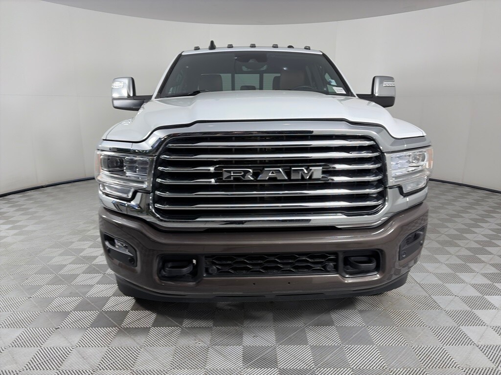 ENGINE: 6.7L I6 CUMMINS TURBO DIESEL Selective Catalytic Reduction (Urea), Dual 730 Amp Maintenance Free Batteries, Cummins Turbo Diesel Badge, Heavy Duty Engine Cooling, Diesel Exhaust Brake, Supplemental Heater, Front Bumper Sight Shields, Capless Fuel Fill w/o Discriminator, 220 Amp Alternator (STD), SAFETY GROUP Adaptive Cruise Control w/Stop, Blind Spot & Cross Path Detection, Adaptive Steering System, Full Speed Forward Collision Warning Plus, Lane Keep Assist, WHEELS: 20 X 8.0 DIAMOND CUT FACE ALUMINUM Tires: LT285/60R20E OWL On/Off Road, LONGHORN LEVEL 1 EQUIPMENT GROUP Blind Spot & Cross Path Detection, For Details, Visit DriveUconnect.com, For More Info, Call 800-643-2112, LED Bed Lighting, Power Deployable Running Boards, 12 Touchscreen Display, Selectable Tire Fill Alert, Trailer Tow Pages, Ramcharger Wireless Charging Pad, Radio: Uconnect 5 Nav w/12.0 Display, MOPAR Spray In Bedliner, 17 Speaker harman/kardon® Premium Sound, ANTI-SPIN DIFFERENTIAL REAR AXLE, TRANSMISSION: 6-SPEED AUTOMATIC (68RFE) Leather Wrapped Shift Control (STD). Ram Longhorn with Bright White Clearcoat exterior and Cattle Tan/Black interior features a Straight 6 Cylinder Engine with 370 HP at 2800 RPM*.