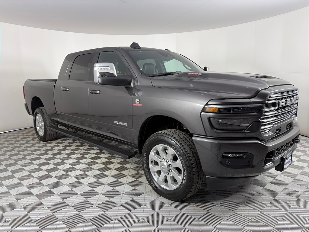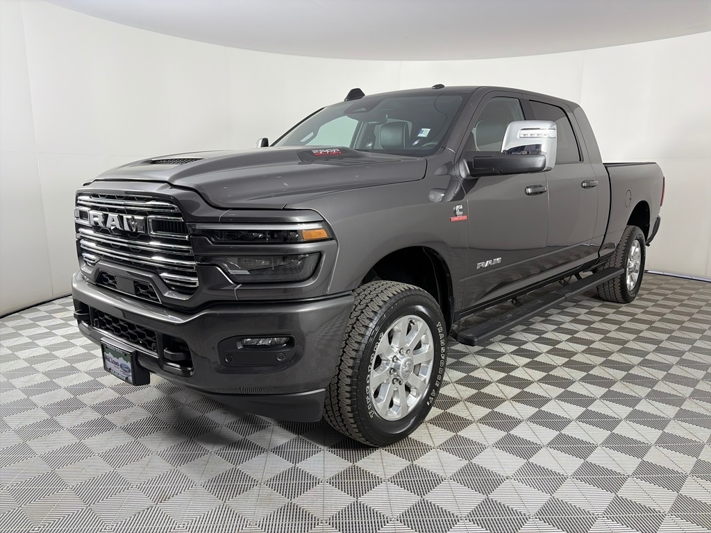SPORT APPEARANCE PACKAGE Tires: LT285/60R20E OWL On/Off Road, Body Color Grille Surround, Sport Performance Hood, Sport Decal, Wheels: 20 x 8 Polished Aluminum, LARAMIE LEVEL 1 PLUS EQUIPMENT GROUP Center Stop Lamp w/Cargo View Camera, Rain Sensitive Windshield Wipers, Power Adjustable Pedals w/Memory, LED Bed Lighting, Traffic Sign Recognition, Adaptive Steering System, Auto Dim Exterior Mirror, Anti-Spin Differential Rear Axle, Drowsy Driver Detection, MOPAR Deployable Bed Step, Foam Bottle Insert (Door Trim Panel), Active Lane Management System, Power Heated Fold Telescope Mirrors w/Memory, Remote Tailgate Release, MOPAR Spray In Bedliner, Auto High Beam Headlamp Control, Exterior Mirrors w/Memory, Auto Dim Exterior Passenger Mirror, Auto Adjust In Reverse Exterior Mirrors, MOPAR FRONT & REAR RUBBER FLOOR MATS, TRANSMISSION: 8-SPEED TORQUEFLITE HD AUTOMATIC (STD), ENGINE: 6.7L I6 CUMMINS HO TURBO DIESEL (STD), BLACK, LEATHER TRIMMED BUCKET SEATS Bucket Seats, Dual Wireless Charging Pad, Ventilated Front Seats, #1 Seat Foam Cushion, Radio/Driver Seat/Mirrors/Pedals Memory, Full Length Upgraded Floor Console. Ram Laramie with Granite Crystal Metallic Clearcoat exterior and Black interior features a Straight 6 Cylinder Engine with 430 HP at 2800 RPM*.