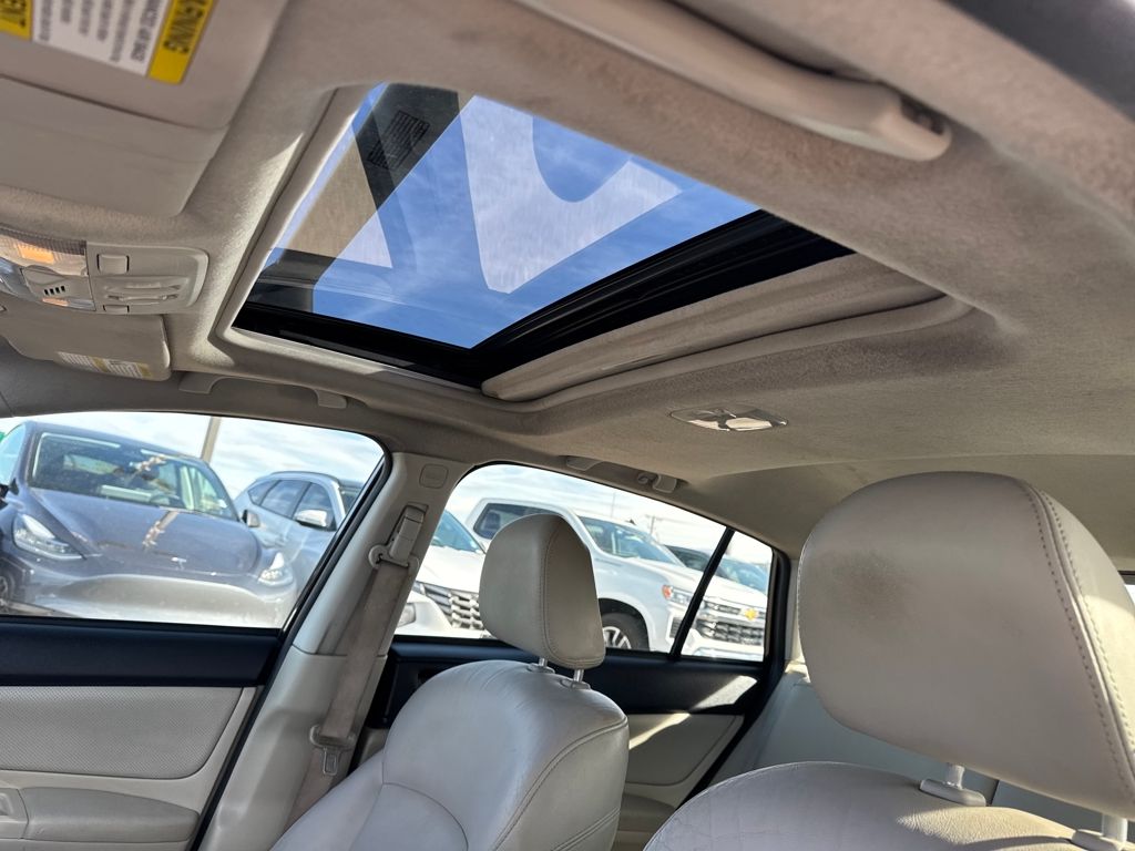 17" x 7.0JJ Silver Finish Aluminum Alloy Wheels, 4-Wheel Disc Brakes, 6 Speakers, ABS brakes, Air Conditioning, Alloy wheels, AM/FM radio, Automatic temperature control, Brake assist, Bumpers: body-color, CD player, Driver door bin, Driver vanity mirror, Dual front impact airbags, Dual front side impact airbags, Electronic Stability Control, Four wheel independent suspension, Front anti-roll bar, Front Bucket Seats, Front Center Armrest, Front fog lights, Front reading lights, Fully automatic headlights, Heated door mirrors, Heated front seats, Heated Reclining Front Bucket Seats, Illuminated entry, Knee airbag, Leather Shift Knob, Leather steering wheel, Leather-Trimmed Upholstery, Low tire pressure warning, Occupant sensing airbag, Outside temperature display, Overhead airbag, Panic alarm, Passenger door bin, Passenger vanity mirror, Power door mirrors, Power Moonroof w/Auto-Open/Close, Power steering, Power windows, Radio data system, Radio: AM/FM w/HD/Single Disc CD Player, Rear anti-roll bar, Rear seat center armrest, Rear window defroster, Rear window wiper, Remote keyless entry, Security system, Speed control, Speed-sensing steering, Split folding rear seat, Spoiler, Steering wheel mounted audio controls, Tachometer, Telescoping steering wheel, Tilt steering wheel, Traction control, Trip computer, and Variably intermittent wipers.