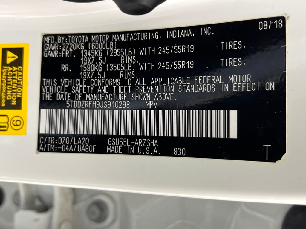 ROOF RACK CROSS BARS, ALL-WEATHER FLOOR LINER PACKAGE All Weather Floor Liners, Cargo Tray, SEATING FOR 7: HEATED 2ND ROW CAPTAIN SEATS folding side table w/two cupholders. Toyota Limited Platinum with Blizzard Pearl exterior and BLACK interior features a V6 Cylinder Engine with 295 HP at 6600 RPM*.